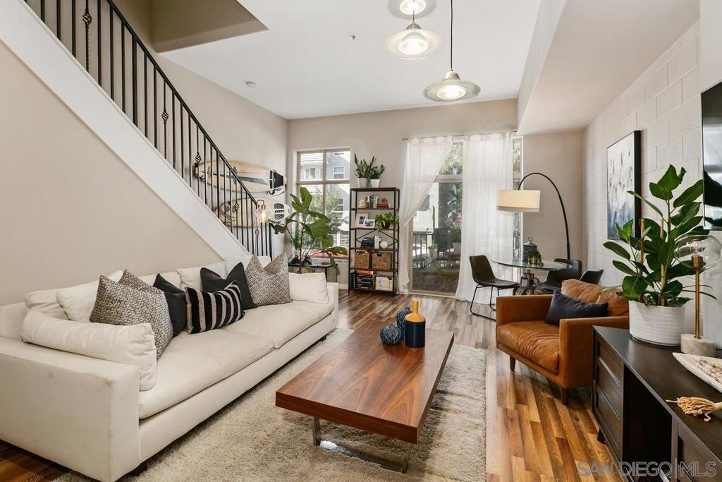 Delight in all this Little Italy TOWNHOME has to offer! 2bdrm/2.5 bath features ensuite washer/dryer, designated parking in gated garage, gated community, first floor entry;no need for elevators or stairs, 14' ceilings, open floor plan with formal entry, 1/2 bath, open kitchen, dining room, living room and front balcony on first floor with peek-a-boo water views, upstairs features two bedrooms with two bathrooms. The location of this home is right in the heart of all Little Italy has to offer, surrounded by convenience, newer construction projects, the waterfront, it's priceless to live here. The property has been exquisitely maintained and updated over the years. Laminate wood flooring throughout, ample natural light, a flawless open floorplan, updated kitchen, pantry for storage, formal entry area, dual suites upstairs, window coverings convey, just endless reasons to make this your next home or property.