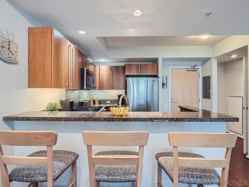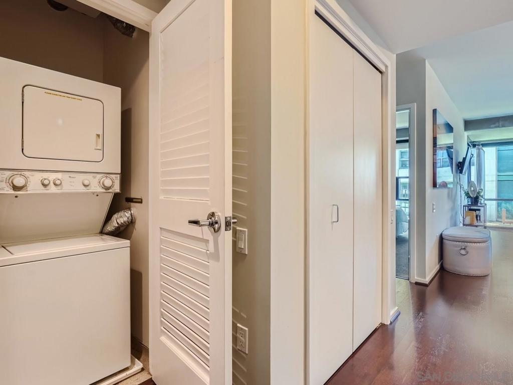 This beautiful 1-bedroom, 1-bath condominium is located in the highly sought-after Icon high-rise building in downtown San Diego. In addition to a spacious, open-concept floor plan, the unit has been highly upgraded with plank wood flooring, new high end modern Berber carpeting, a large kitchen with granite slab counters, stainless-steel appliances, and a stacked washer and dryer. The unit also has a fantastic exterior patio with gorgeous views and one assigned parking space in the underground garage. This is a chance to live in a true resort-style community that offers a full gym, theater room, conference room, the Icon sky box (with views of the ballpark and BBQ area) and on-site HOA management. Close to wonderful restaurants, entertainment and all that San Diego has to offer. This is an opportunity not to be missed!