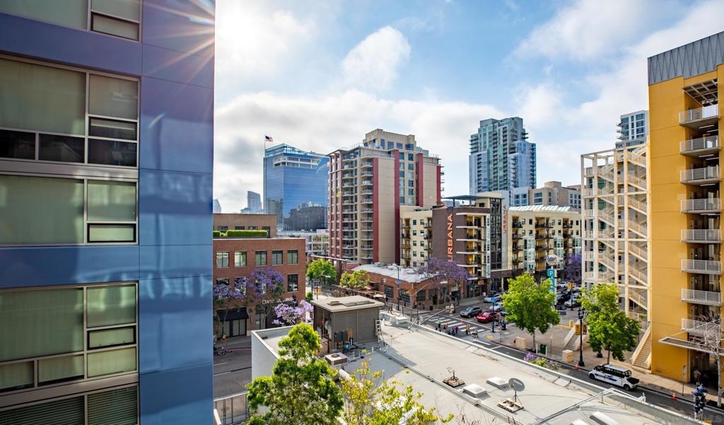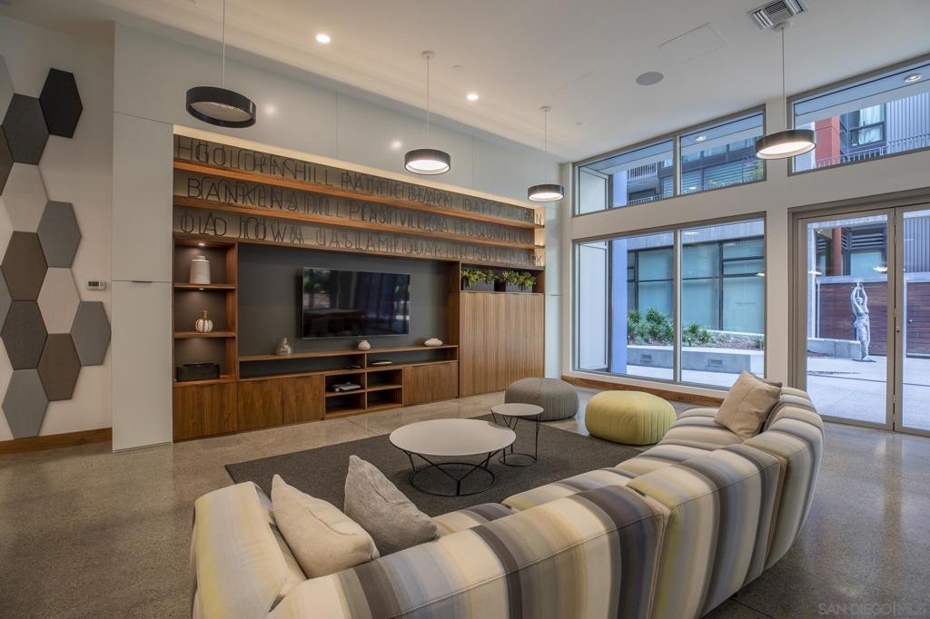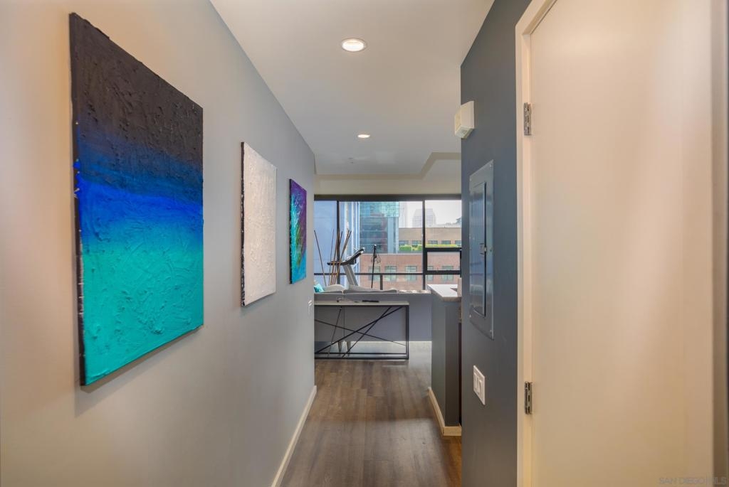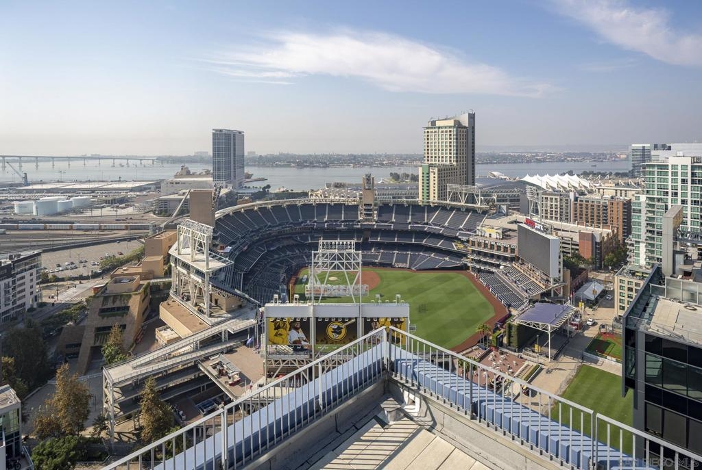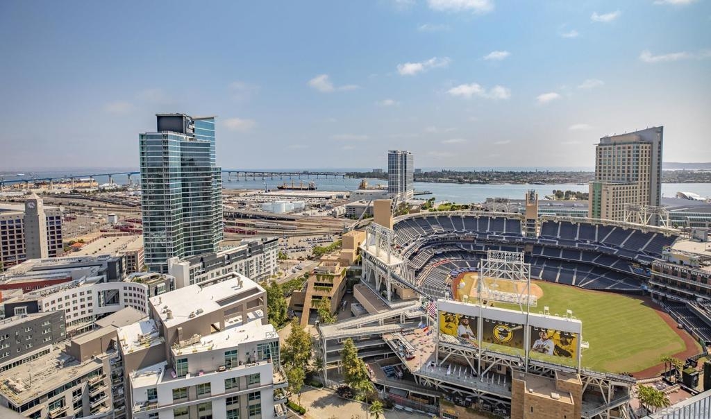 Experience luxury urban living in this supersized corner unit flooded with natural light from North and West-facing windows. Located in the heart of the ballpark area, opposite Petco Park, this residence is tailor-made for urban enthusiasts. Enjoy upgraded wood flooring, electronic shades, stainless steel appliances, and the convenience of an in-unit washer/dryer. Elevate your lifestyle with amenities including an ultimate 26th-floor skybox lounge boasting panoramic ocean views, a spacious well equipped gym, and a community room with a full caterers kitchen, 24/7 front desk security. Your urban oasis awaits. HOA dues include Google GB speed Internet.