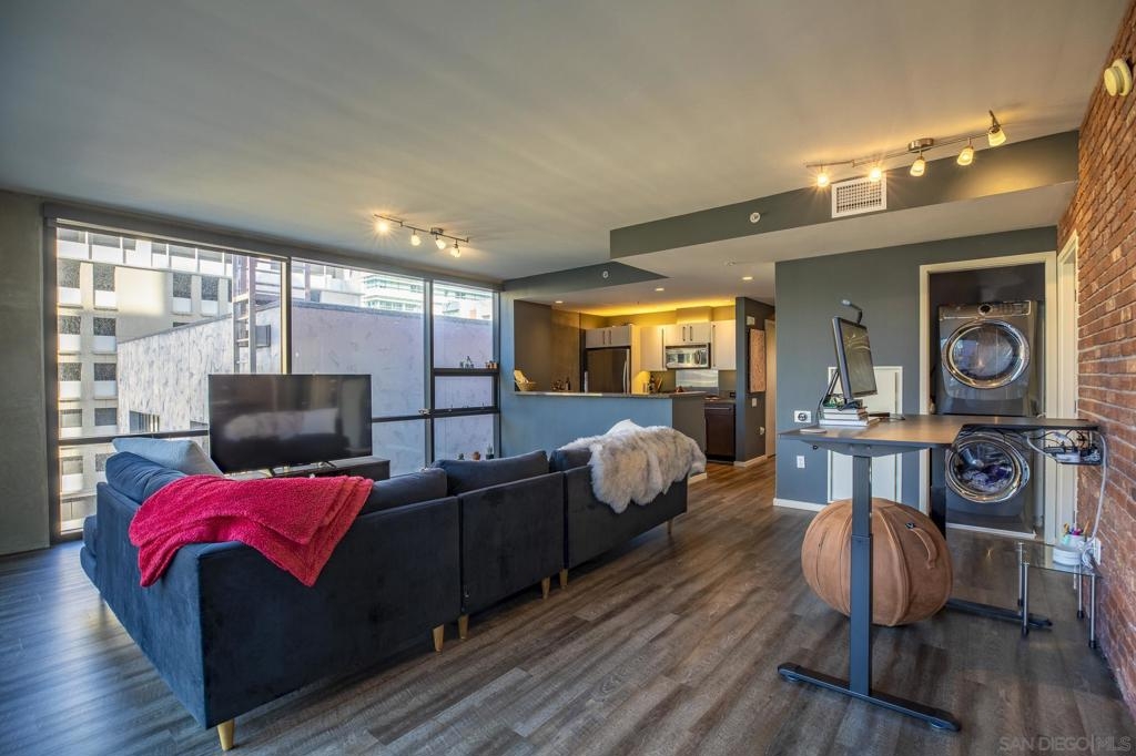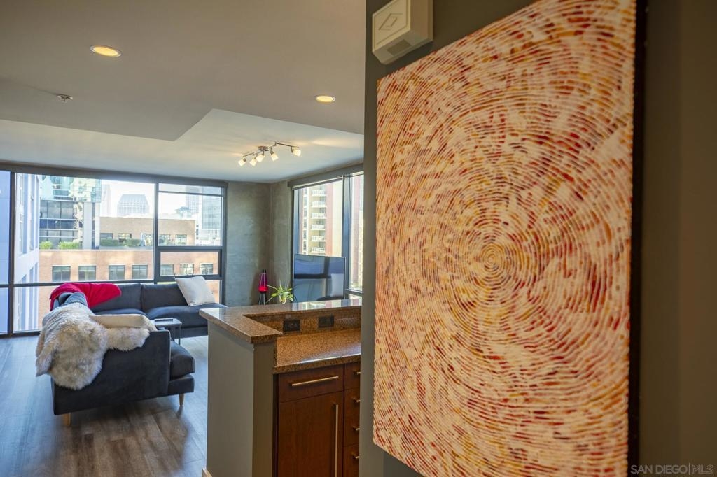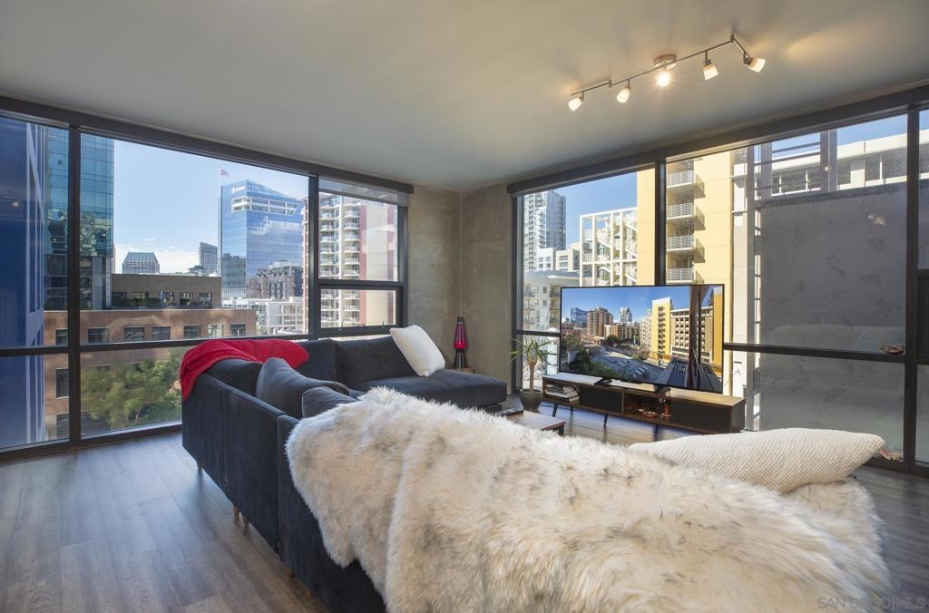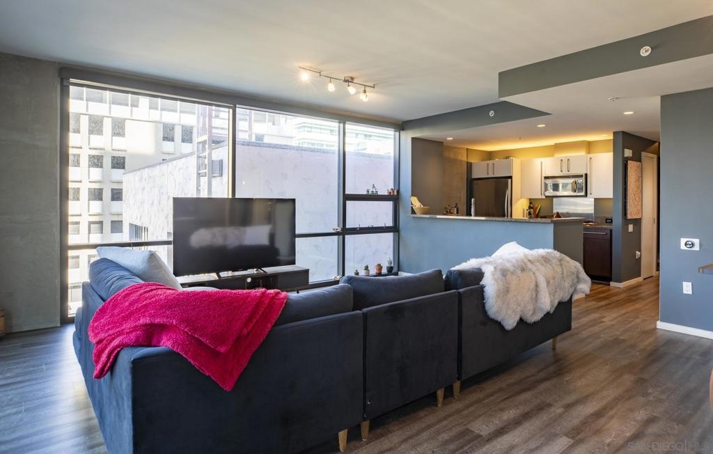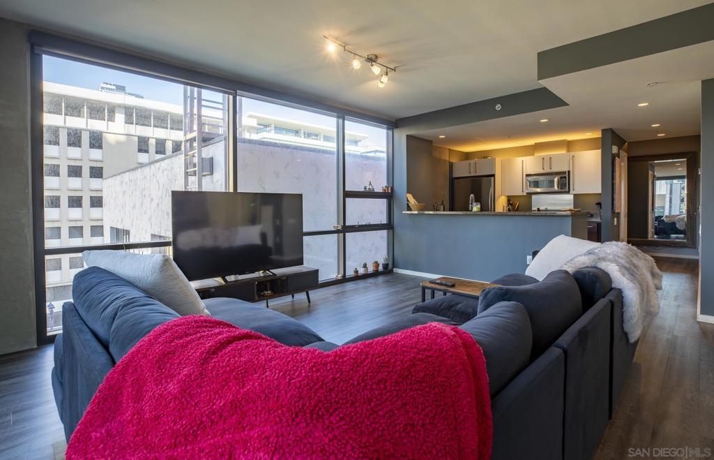 Experience luxury urban living in this supersized corner unit flooded with natural light from North and West-facing windows. Located in the heart of the ballpark area, opposite Petco Park, this residence is tailor-made for urban enthusiasts. Enjoy upgraded wood flooring, electronic shades, stainless steel appliances, and the convenience of an in-unit washer/dryer. Elevate your lifestyle with amenities including an ultimate 26th-floor skybox lounge boasting panoramic ocean views, a spacious well equipped gym, and a community room with a full caterers kitchen, 24/7 front desk security. Your urban oasis awaits. HOA dues include Google GB speed Internet.