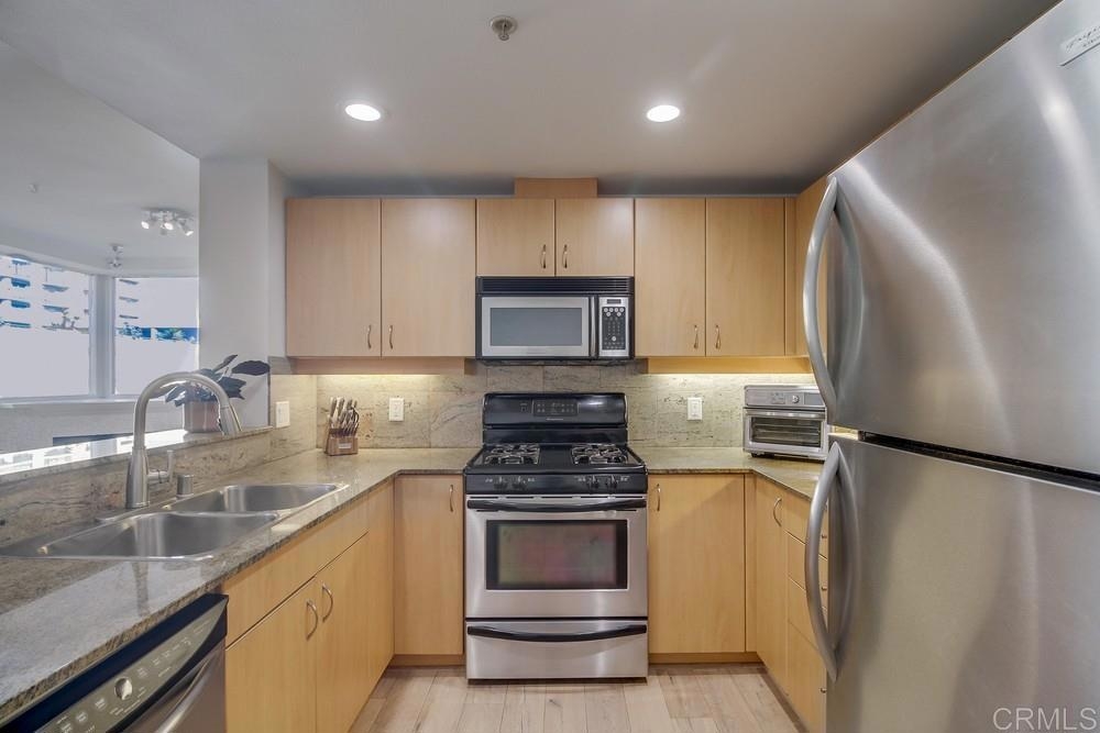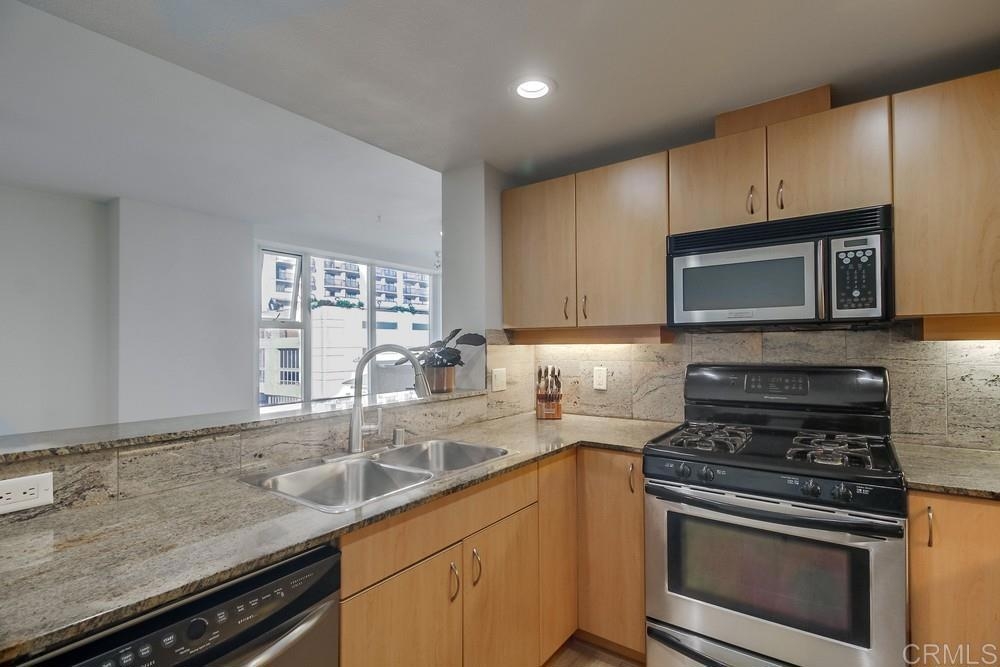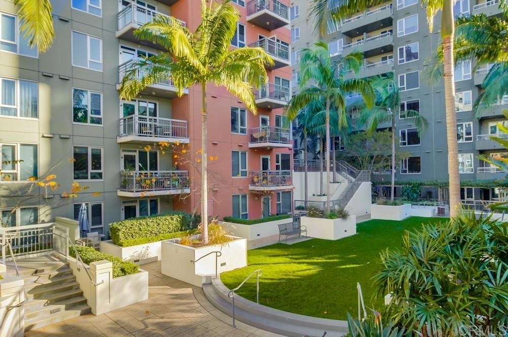 **Assumable Loan @ 2.25%** - Welcome to La Vita, a premier condominium community in the heart of San Diego's vibrant Little Italy neighborhood. This stunning 2-bedroom, 2-bathroom condo offers a perfect blend of modern design and urban convenience. The open-concept living space seamlessly connects the living, dining, and kitchen areas, creating an inviting atmosphere ideal for entertaining or daily life. The gourmet kitchen is equipped with stainless steel appliances, granite countertops, and ample cabinetry, catering to both casual cooks and culinary enthusiasts. The primary suite provides a peaceful retreat with an en-suite bathroom. A well-appointed second bedroom and adjacent full bathroom add versatility, perfect for guests, a home office, or a personal gym. Residents of La Vita enjoy access to a host of upscale amenities, including a lush courtyard with a serene waterfall, outdoor barbecues, a sparkling swimming pool and spa, a fully equipped fitness center, an amenity room for gatherings, and secure underground parking. Beyond the building, La Vita’s prime location offers unparalleled walkability, with a Walk Score of 99%. Step outside to explore Little Italy’s renowned restaurants, cafés, boutique shops, and art galleries, or visit the Little Italy Mercato Farmers' Market for fresh produce and artisanal goods. The nearby Waterfront Park and Embarcadero provide scenic outdoor spaces, while convenient access to the MTS Green Line Trolley ensures effortless commuting. Additional highlights of this exceptional property include breathtaking city and harbor views from the private balcony, pet-friendly accommodations, and a secure building with controlled access and on-site management. Experience upscale urban living in one of San Diego’s most sought-after neighborhoods. Schedule your private viewing today and make this remarkable condo your new home!