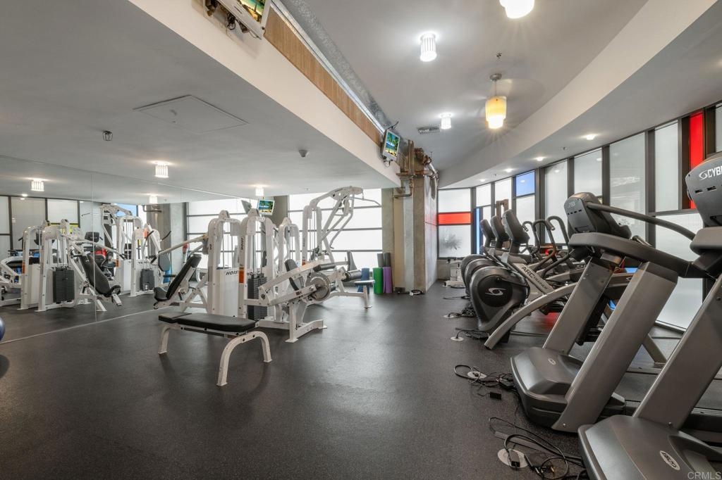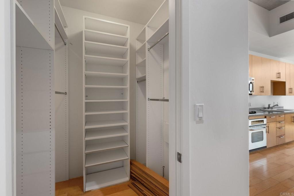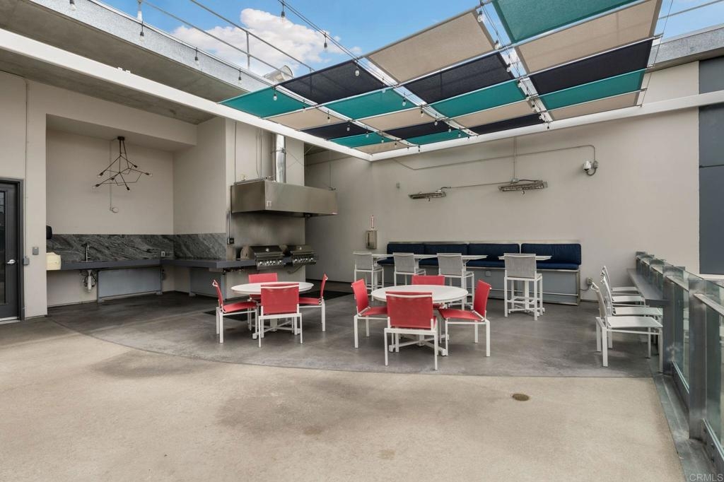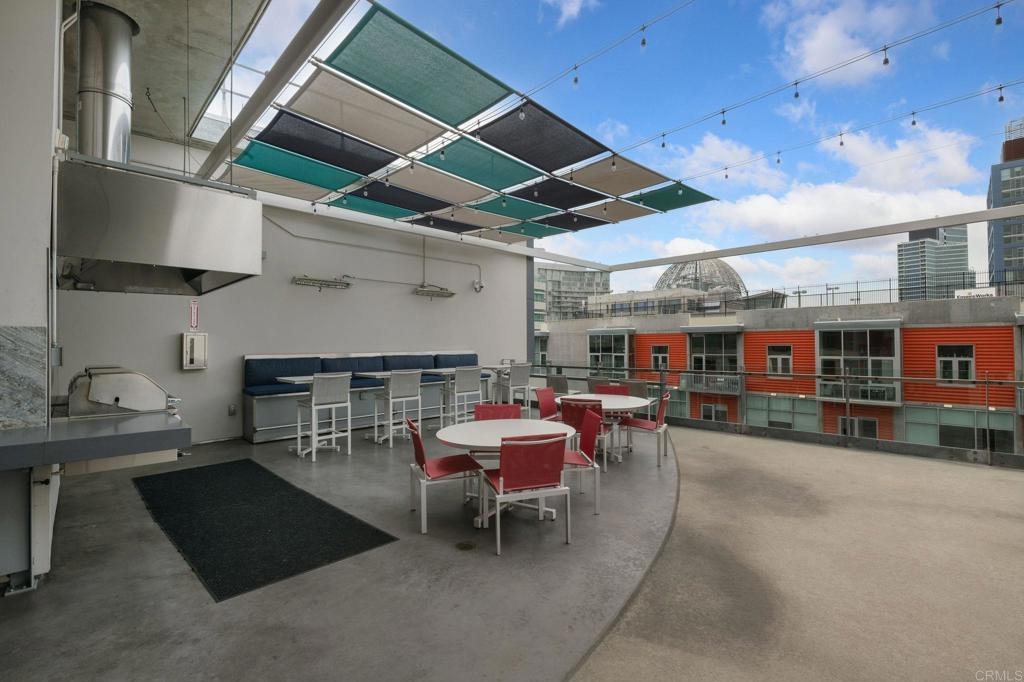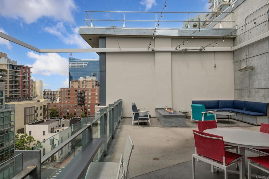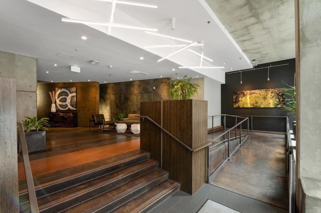 Exceptional Studio Living in East Village - This gem offers a wonderful floor plan with hardwood floors and raised 11-foot ceilings, creating a spacious and inviting atmosphere. The functional layout sets the bedroom area off to the side of the kitchen/living area, providing both privacy and convenience. Located just one block from Petco Park and the 'Park at the Park', this prime location offers easy walking access to the vibrant Gaslamp District, fine dining, and entertainment. The unit features central air-conditioning, a spacious walk-in closet, laundry facilities, and tall windows facing south for abundant natural light. The building amenities include a rooftop deck, fitness center, secure parking, and convenient trolley access just blocks away. With reduced pricing, this is a great value for a desirable section of downtown living. Don't miss out on this opportunity to own a piece of the dynamic East Village lifestyle!
