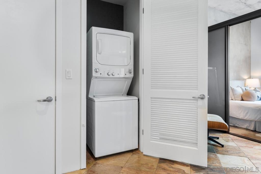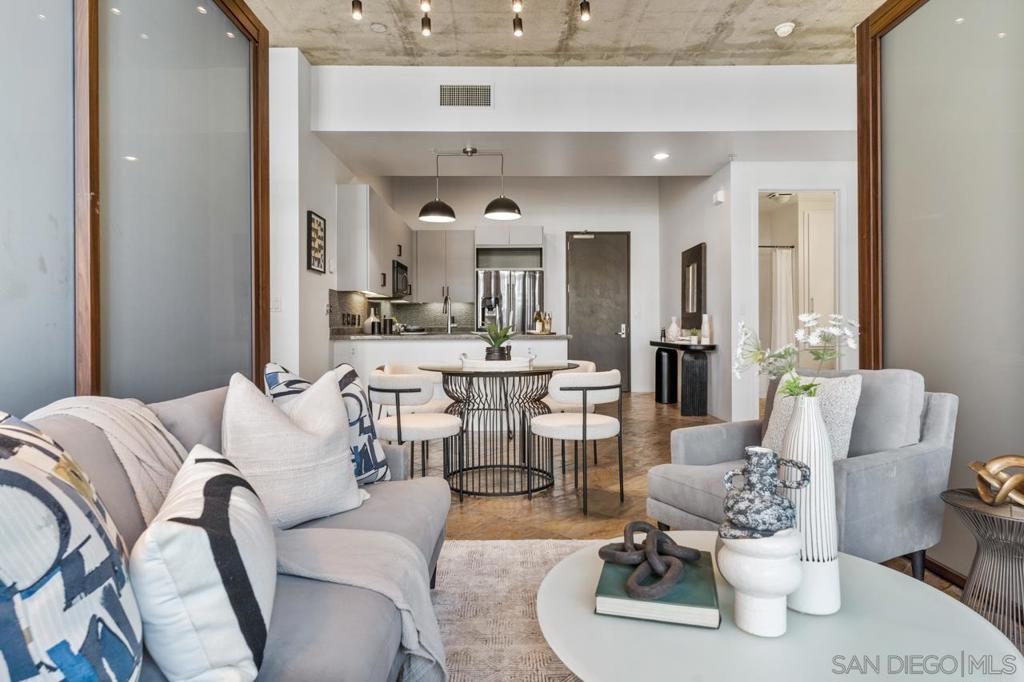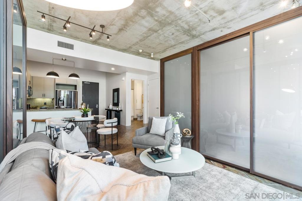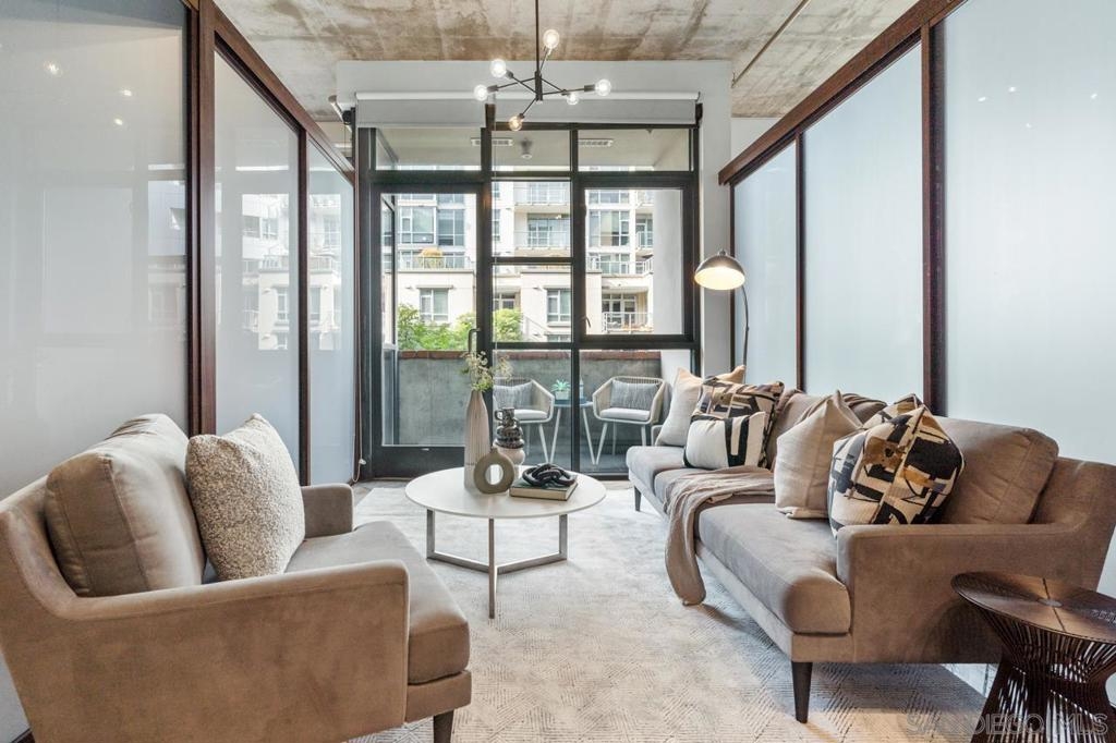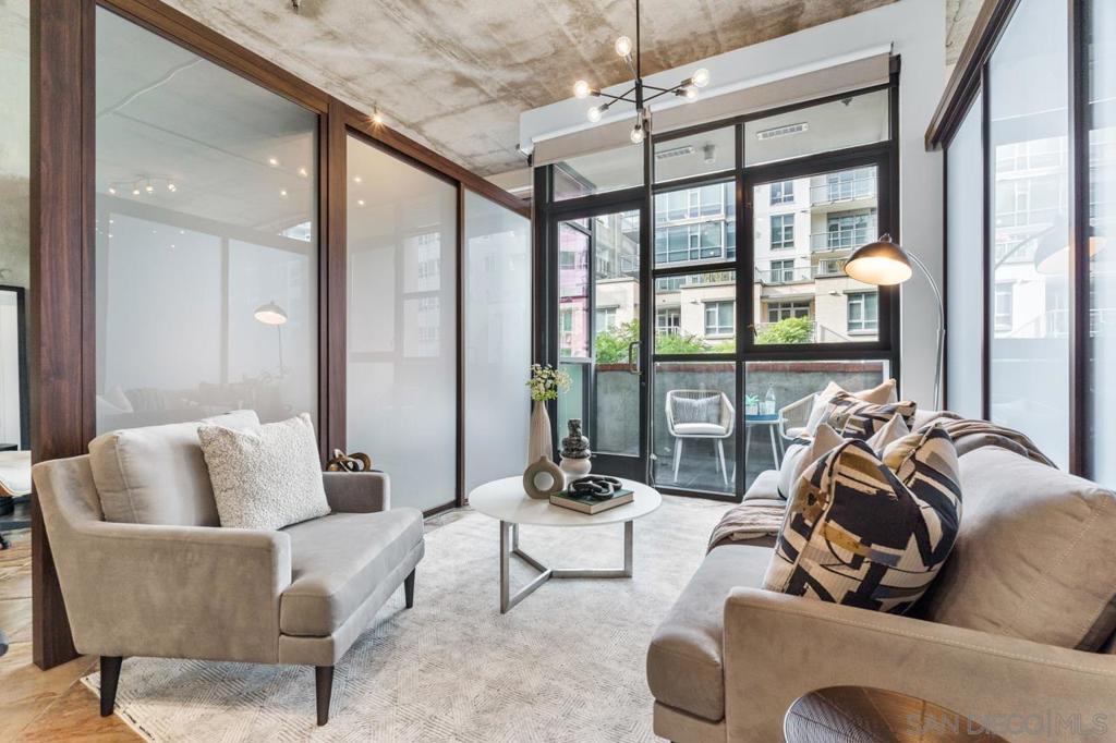 Welcome to Unit 317 in the iconic M2i building, where contemporary design and vibrant downtown living converge. This expansive loft-style condo features 2 bedrooms with partition-style walls and sliding doors, offering both privacy and flexibility. With fresh paint throughout and updates to the kitchen and bathrooms, this home is truly move-in ready. High ceilings and floor-to-ceiling windows flood the space with natural light, highlighting the industrial-chic aesthetic and open layout. Perfect for entertaining or everyday living, this unit combines modern elegance with functional design. Additional amenities include tandem parking on the first level and access to M2i’s exceptional features, such as a fully equipped gym, two stylish lobbies, a lush courtyard, and a rooftop patio with west-facing views, a firepit, and BBQs—perfect for enjoying San Diego’s year-round sunshine. Don’t miss this incredible opportunity to own a stylish home in one of Downtown San Diego’s most desirable communities!
