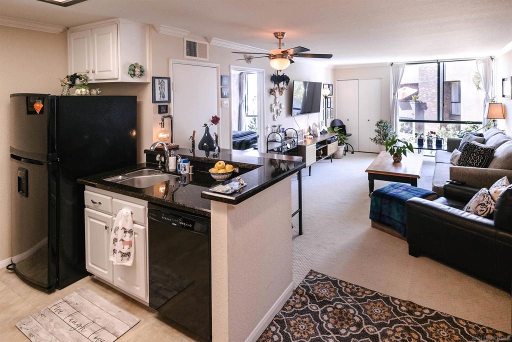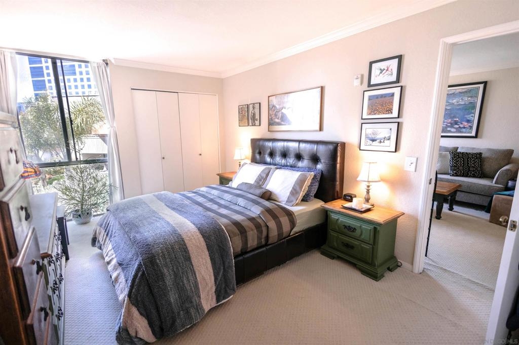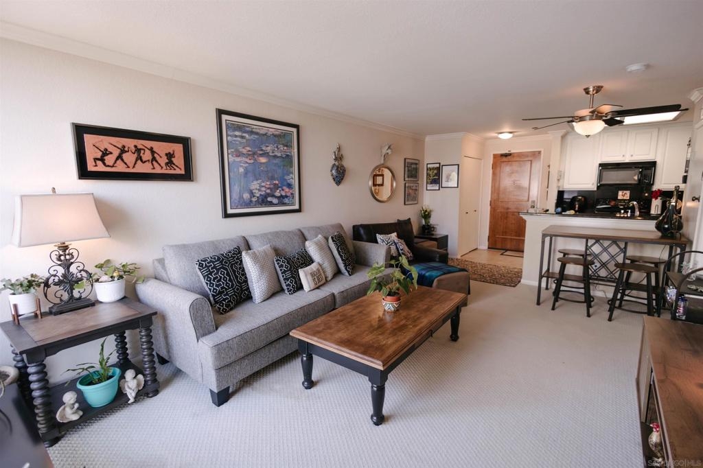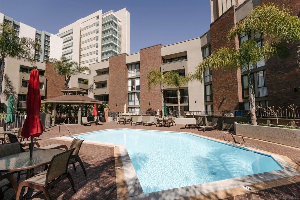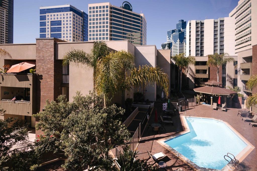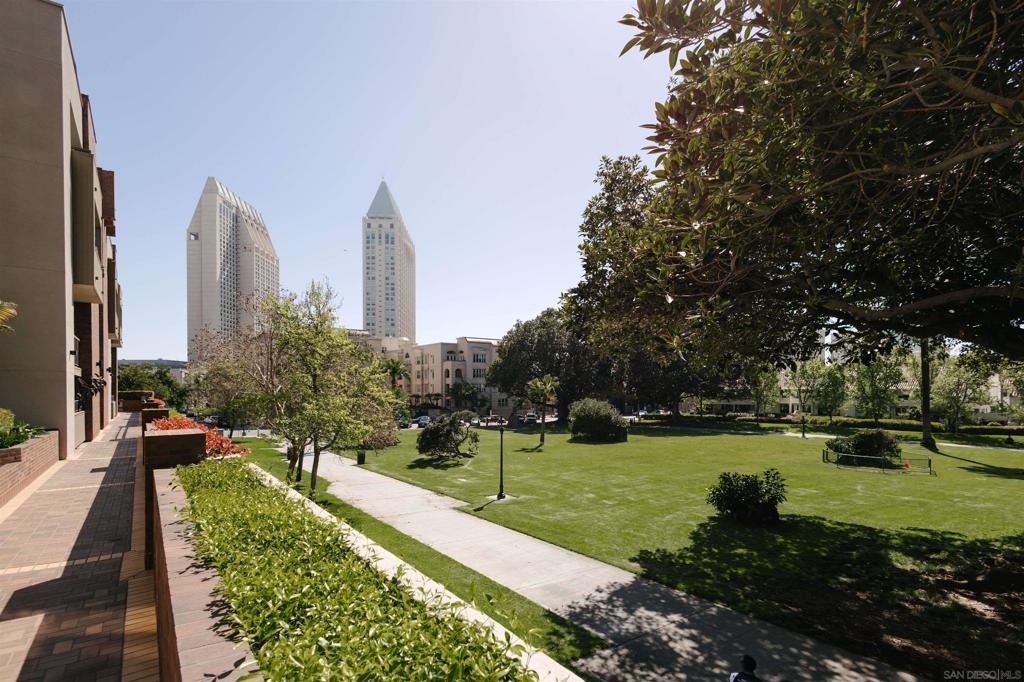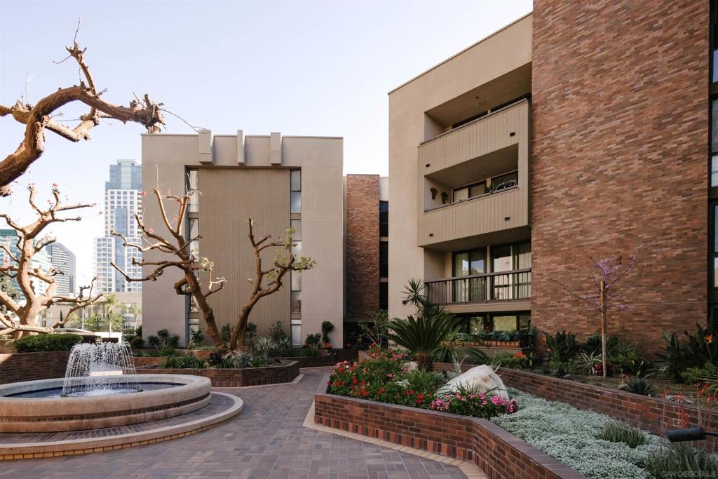Marina Park is the hidden gem of Downtown. The complex features large open spaces with mature landscaping, adjacent to Pantoja Park. You will never see anything Downtown with such sprawling grounds. This delightful 3rd floor unit offers all the amenities you expect from Downtown living. Secure, gated complex, gorgeous pool and spa, beautiful gardens, gym, 24hr security, and recreation room. Located in the upscale Marina District, this bright and private condo features an open floor plan and has been meticulously maintained. Updated kitchen and bathroom and in unit washer dryer complete the package. Walk to Gas Lamp district, Seaport Village, and San Diego Bay. West facing view makes for beautiful sunset and fireworks views from bedroom window. Move in condition and offered furnished (or unfurnished), this would be a perfect rental property, vacation getaway, or a lucky persons first home.