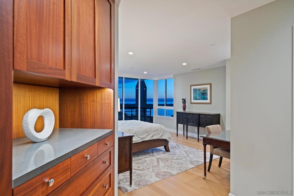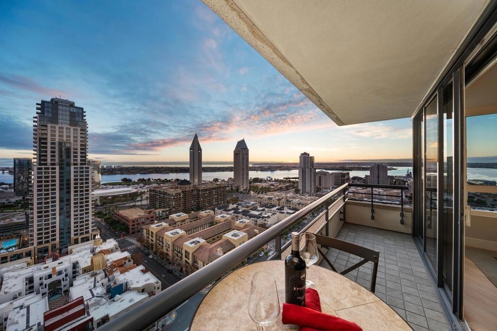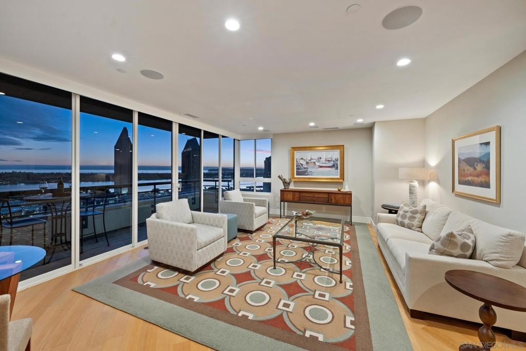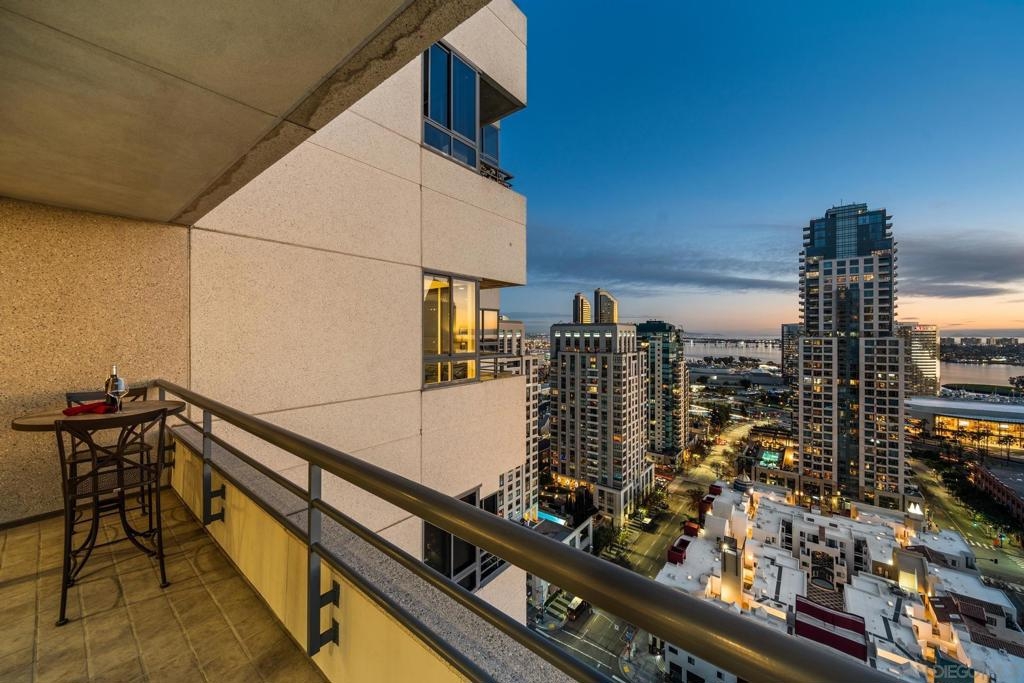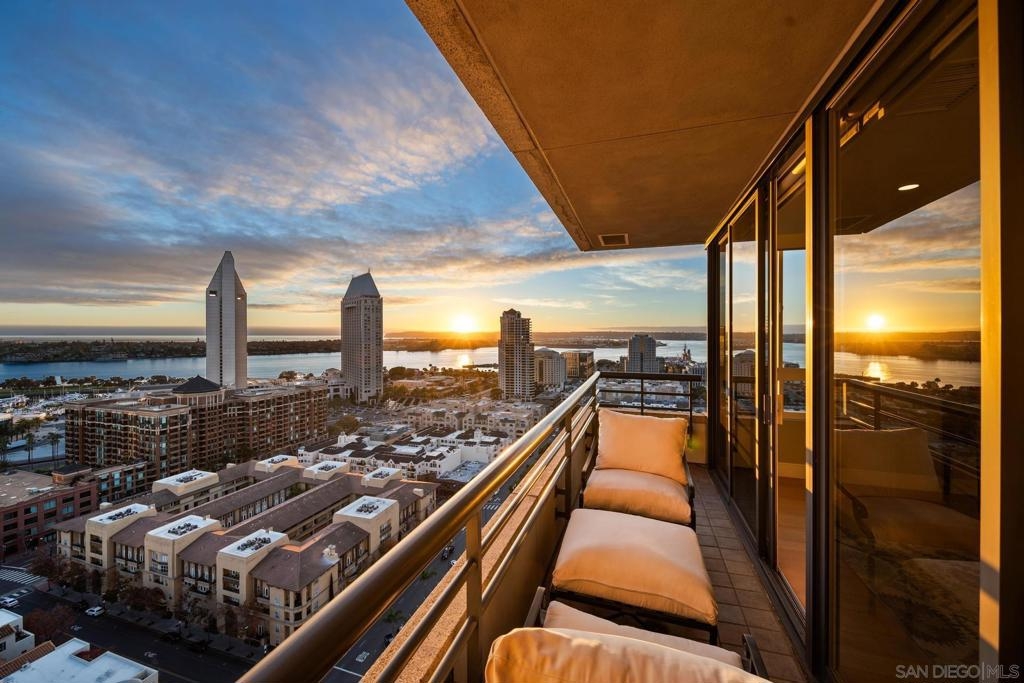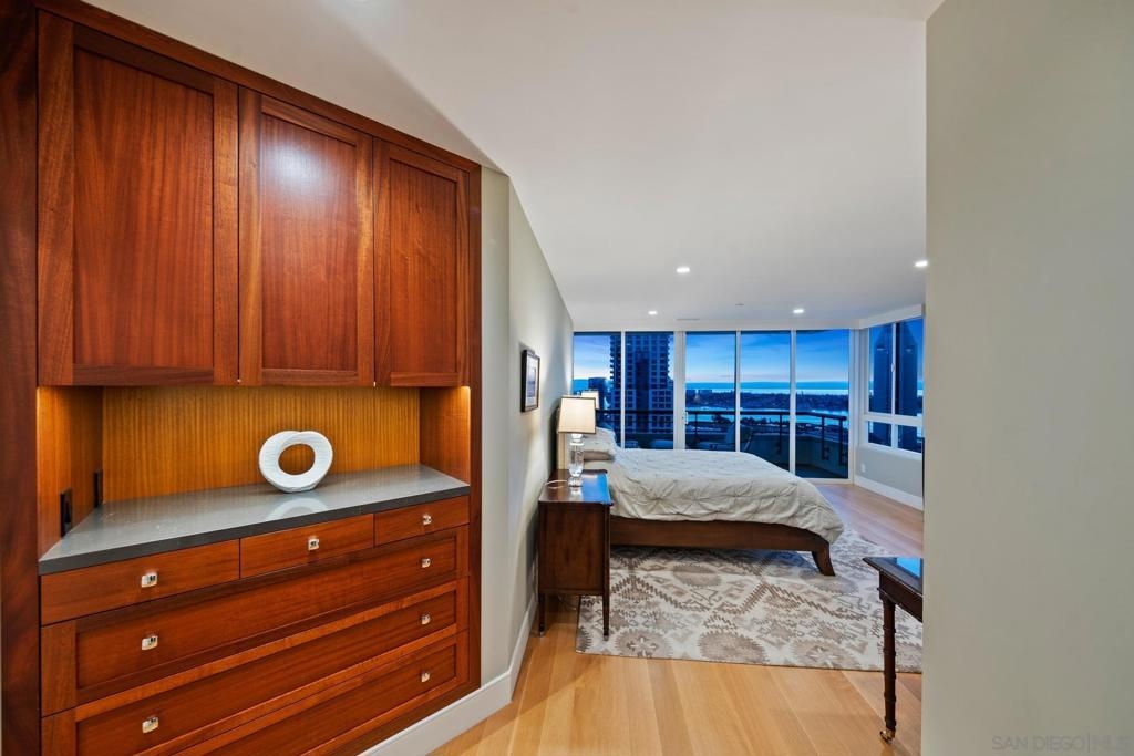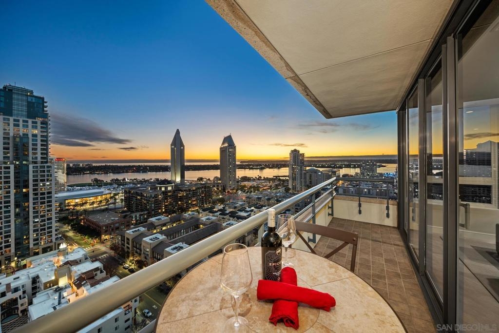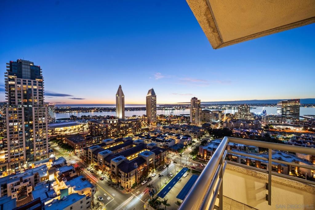 Dramatic Pacific Ocean and San Diego Bay views immediately catch your eyes as you enter this luxury home on the 18th floor of the Meridian Residential building in the Marina District of downtown. The captivating 180 degree view extends from the coast of Mexico to beyond Point Loma.This spacious two-bedroom home has been completely remodeled and professionally designed and features premium finishes, fixtures and custom cabinetry.Wake up to a view of the"blue" from every room and take your first sip of coffee as the day breaks on your two balconies. Enjoy luxurious living with 24 hour concierge service, numerous amenities, valet and guest parking. See attached documents.