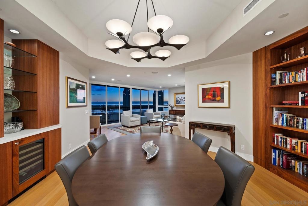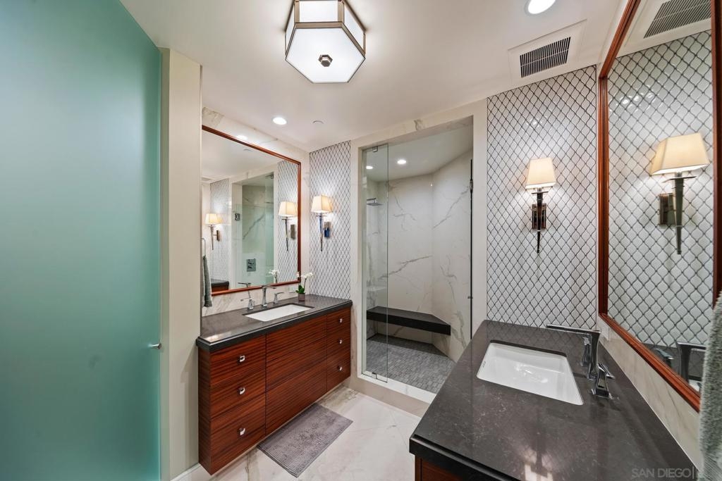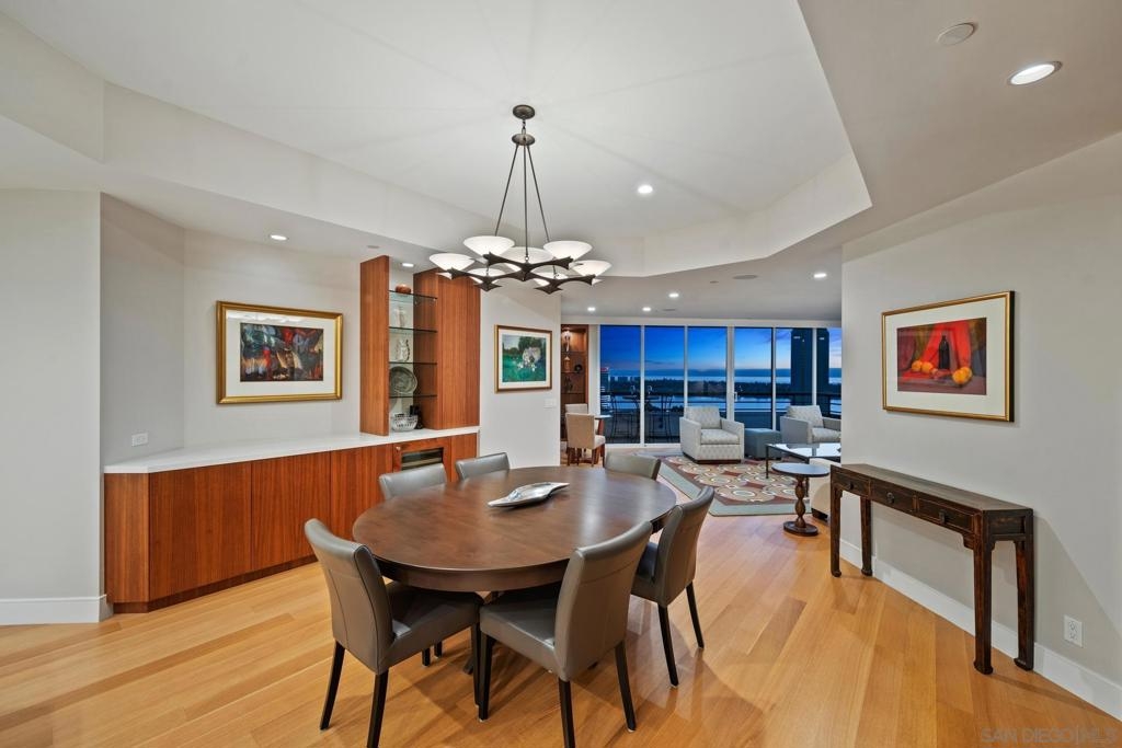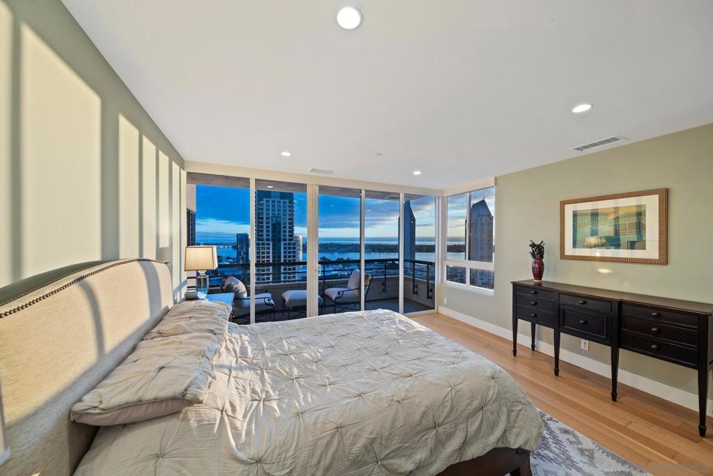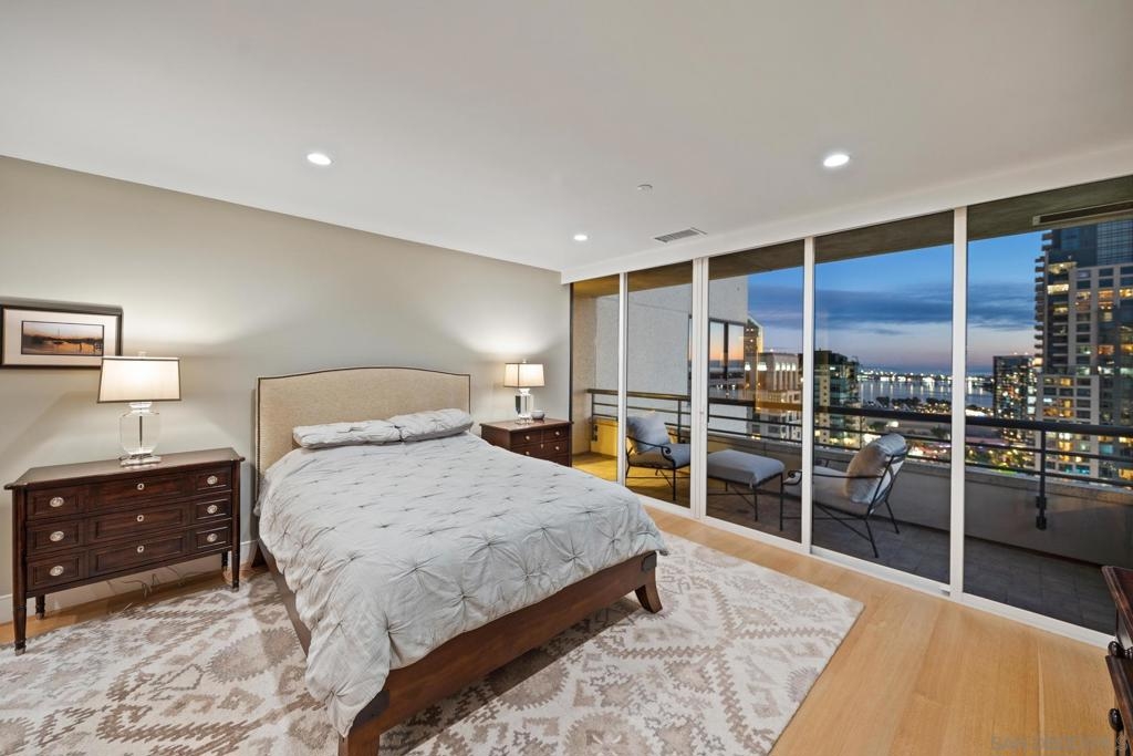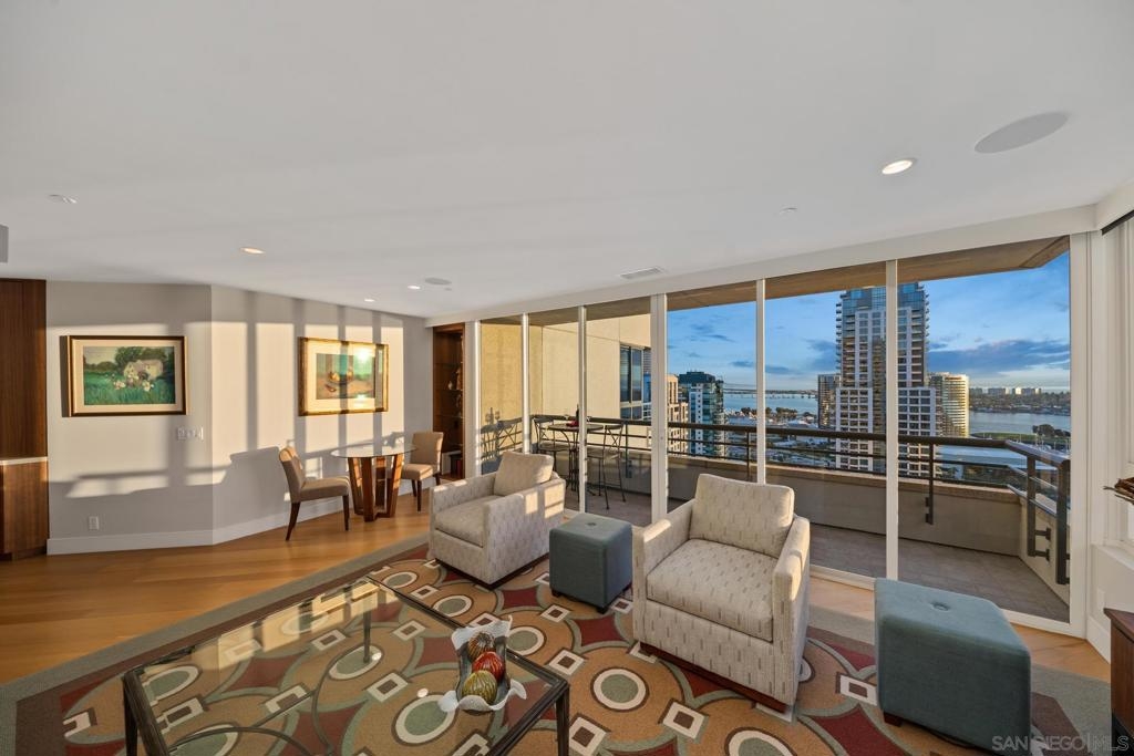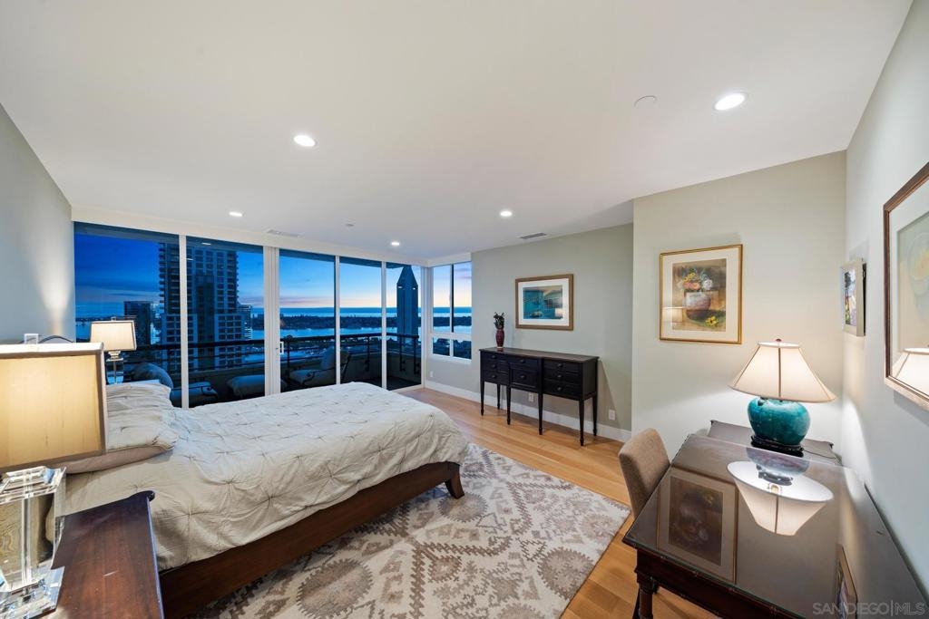Dramatic Pacific Ocean and San Diego Bay views immediately catch your eyes as you enter this luxury home on the 18th floor of the Meridian Residential building in the Marina District of downtown. The captivating 180 degree view extends from the coast of Mexico to beyond Point Loma.This spacious two-bedroom home has been completely remodeled and professionally designed and features premium finishes, fixtures and custom cabinetry.Wake up to a view of the"blue" from every room and take your first sip of coffee as the day breaks on your two balconies. Enjoy luxurious living with 24 hour concierge service, numerous amenities, valet and guest parking. See attached documents.