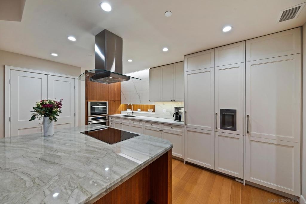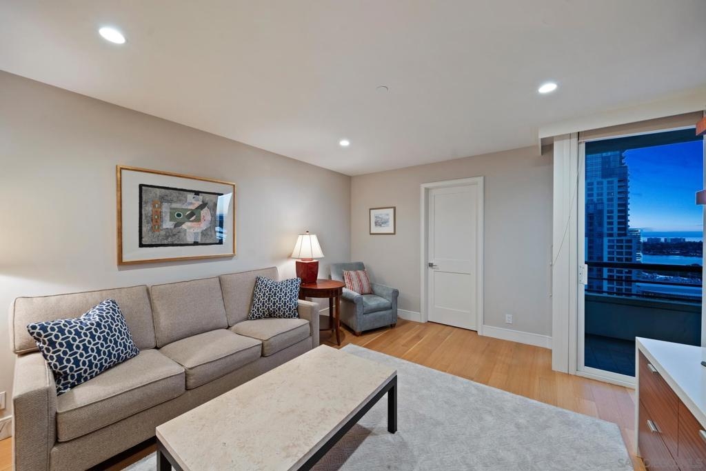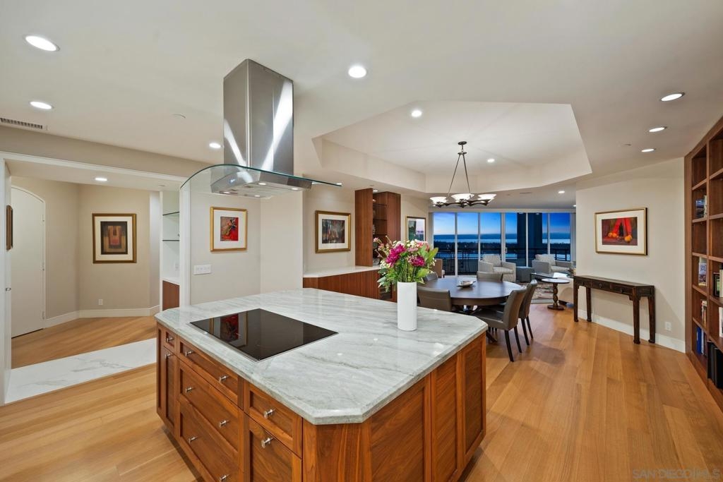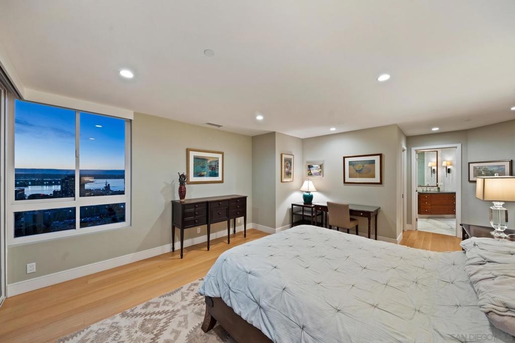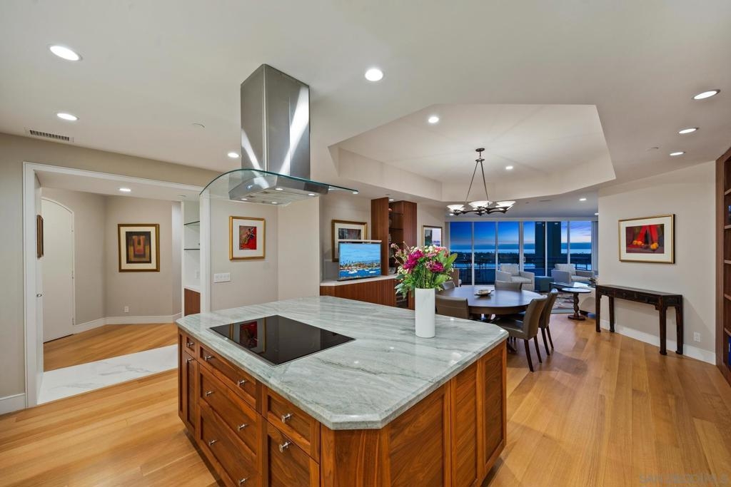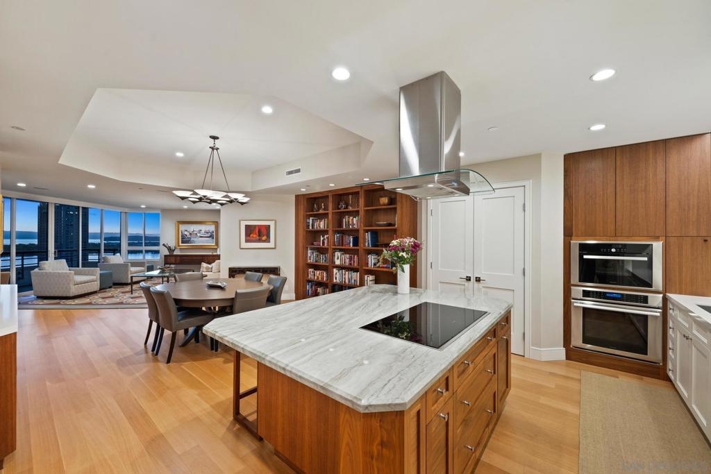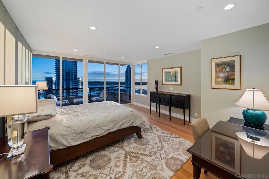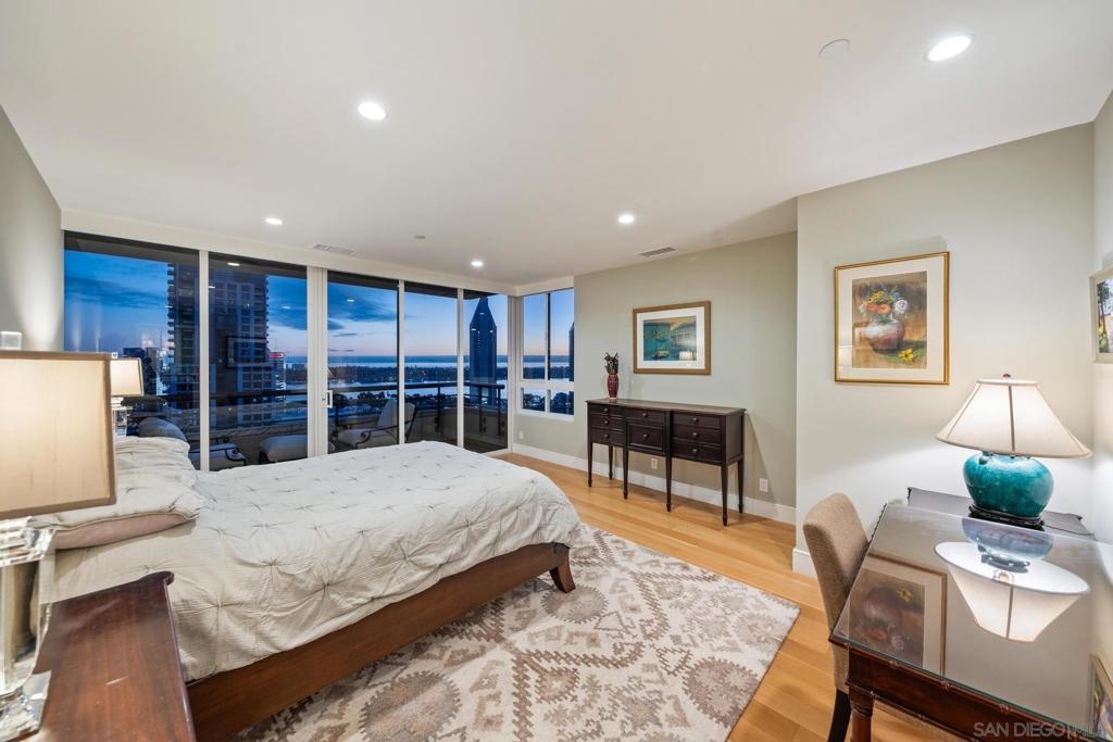 Dramatic Pacific Ocean and San Diego Bay views immediately catch your eyes as you enter this luxury home on the 18th floor of the Meridian Residential building in the Marina District of downtown. The captivating 180 degree view extends from the coast of Mexico to beyond Point Loma.This spacious two-bedroom home has been completely remodeled and professionally designed and features premium finishes, fixtures and custom cabinetry.Wake up to a view of the"blue" from every room and take your first sip of coffee as the day breaks on your two balconies. Enjoy luxurious living with 24 hour concierge service, numerous amenities, valet and guest parking. See attached documents.