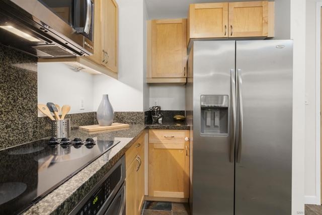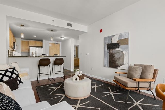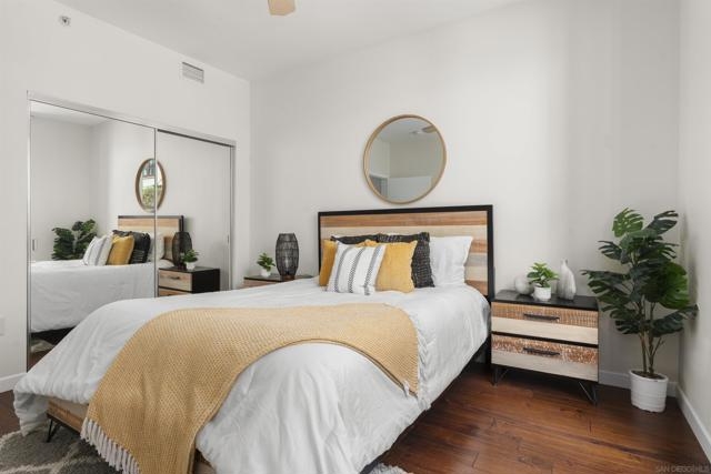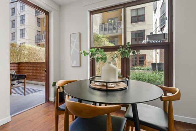 Charming Metrome Residence with Zen Courtyard Views! This beautifully maintained one-bedroom home features engineered hardwood floors, fresh paint, and ceiling fans in both the living area and bedroom. The kitchen offers granite countertops, stainless steel appliances, and easy-care stone flooring. Enjoy a spacious private patio overlooking the tranquil courtyard. Ideally located in the Ballpark District—just steps from Petco Park, the Central Library, San Diego Bay, and the Gaslamp Quarter. Metrome amenities include a fitness center, resident lounge, onsite security, and a peaceful courtyard with seating. Metrome in Ballpark District offers a prime Downtown San Diego location—steps from Petco Park, San Diego Bay, Gaslamp District, the Central Library, shops, and restaurants. Residents enjoy a Zen courtyard, fitness center, landscaped outdoor area with water feature, bike storage, secure entry, and a common lounge with kitchen. Experience the perfect blend of style, convenience, and community at Metrome!