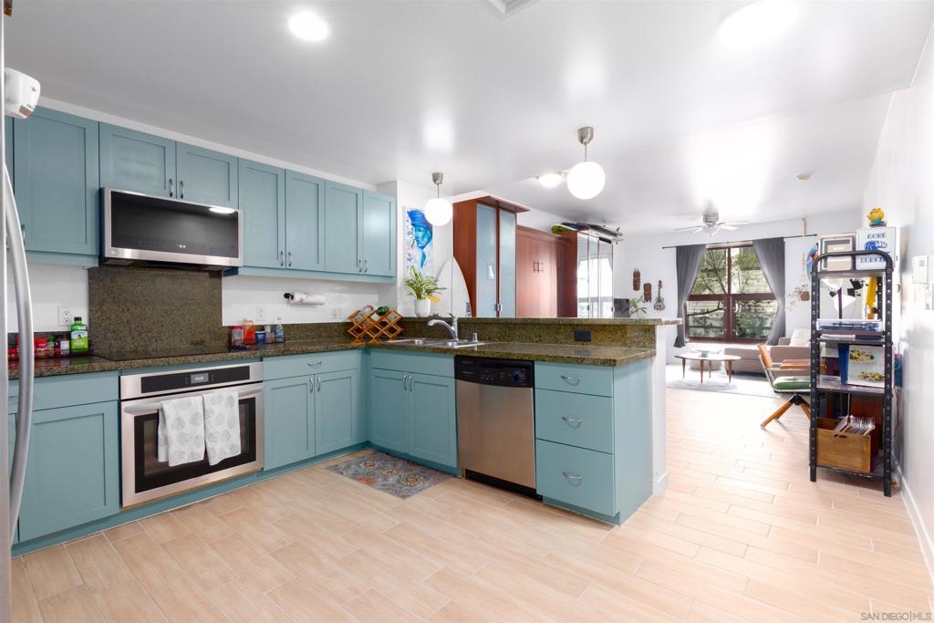 CONTINGENT BUT AVAILABLE TO SHOW! Check out this spacious studio in the heart of East Village, only 2 blocks to Petco Park! This is one of the largest studios in the complex and includes in-unit laundry, 1 dedicated parking space, a/c, second floor location, queen Murphy bed and a generous sized/ well appointed kitchen. Priced to sell and potential of VA loan assumption(2.25%) this won't last!