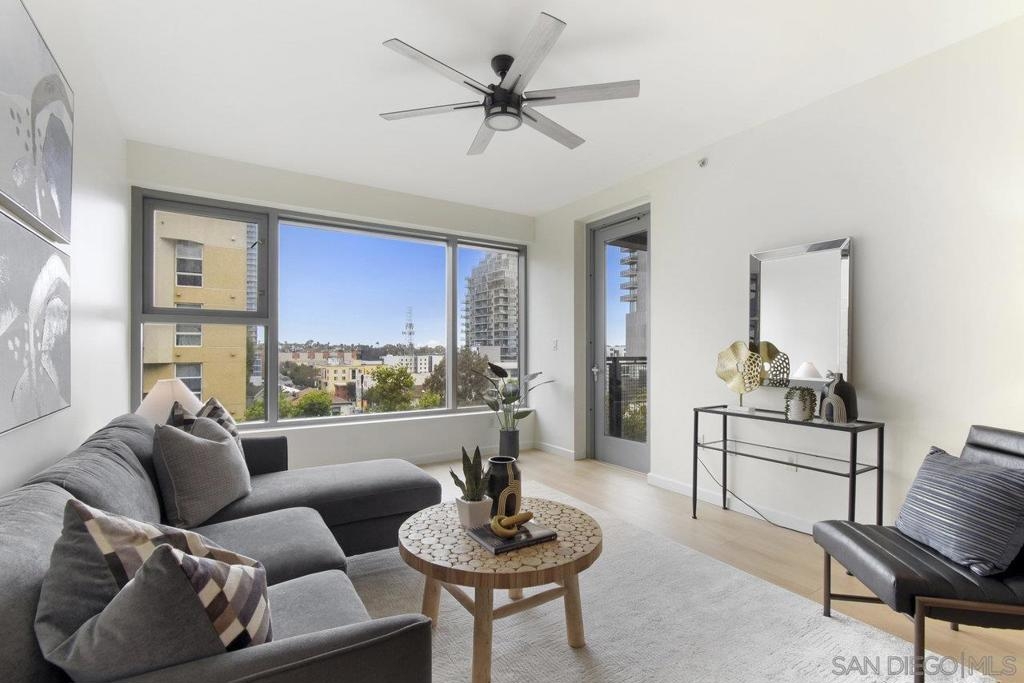 Located in a prime East Village spot, this chic home is moments away from all of downtown's fine dining and entertainment. With 994sf of living space and a bonus den/office/studio, this east-facing unit provides abundant natural light and a delightful view. The open layout is perfect for entertaining, and you'll love your coffee with a view on the balcony. Fresh paint and new flooring make this home ideal for someone looking for a true turn-key residence. Metrome offers a bike room, a well equipped gym, 1 secured parking spot, clubhouse, and the zen garden, a welcome oasis within the bustling city.