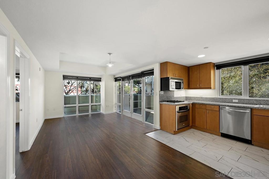 Downtown East Village spacious condo just blocks away from Petco Park, Gaslamp, Seaport Village and Little Italy. This 1 bedroom corner unit offers a large wrap-around balcony, floor to ceiling windows in living room, laminate and tile floors, granite counters in kitchen, maple cabinetry, recessed lighting & stainless steel appliances. Complex amenities include rooftop patio on the 7th floor and fitness center. 1 parking space, 1 storage unit, pet friendly! VA approved and Low HOA! Nexus is centrally located in the heart of East Village downtown San Diego. East Village has easy access to all of the best downtown has to offer such as Petco Park, Gaslamp Quarter, San Diego Bay, Marina, shopping, entertainment and dining. Nexus offers its residents more than 20 unique floor plans, Clubhouse, 7th floor common terrace, Fitness center, Underground parking, and lower HOA's. Complex Features: ,,, Equipment: Dryer,Fire Sprinklers,Garage Door Opener, Washer Sewer: Sewer Available Topography: LL