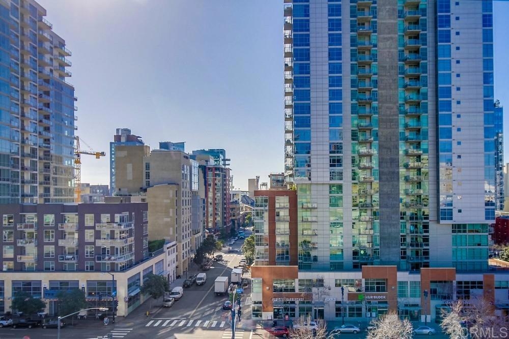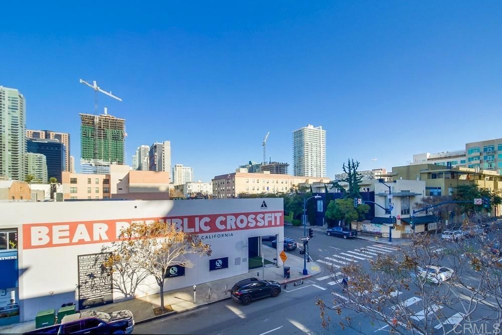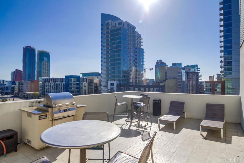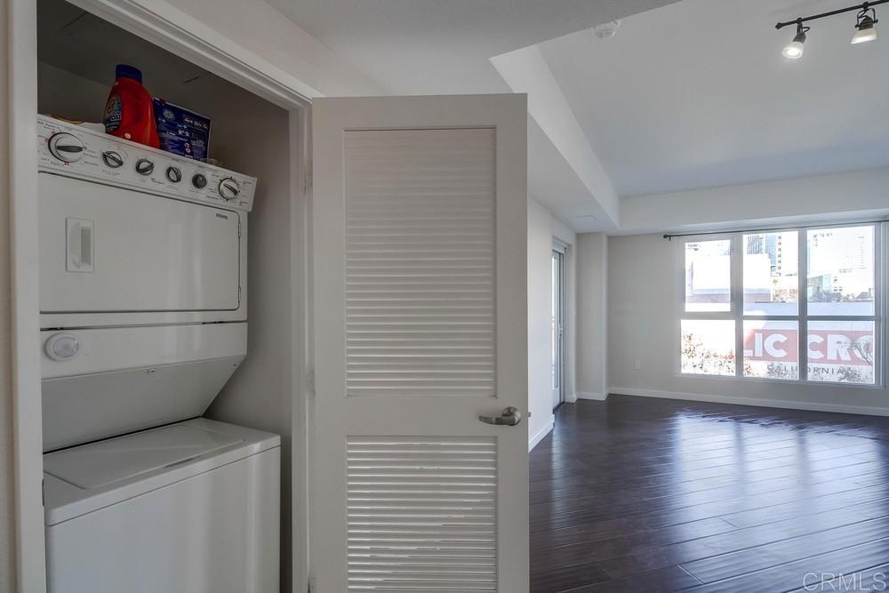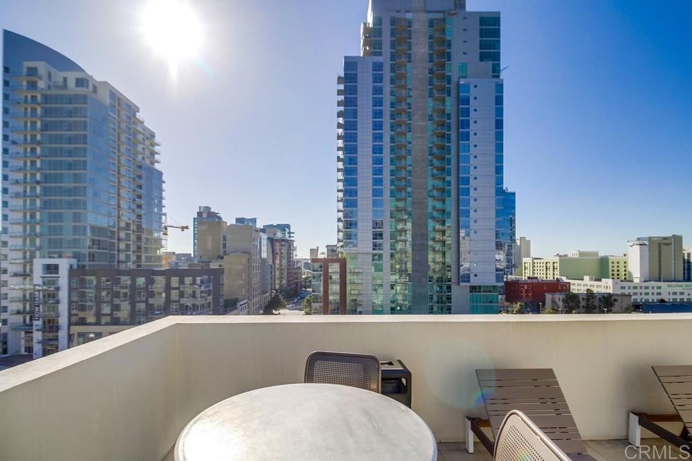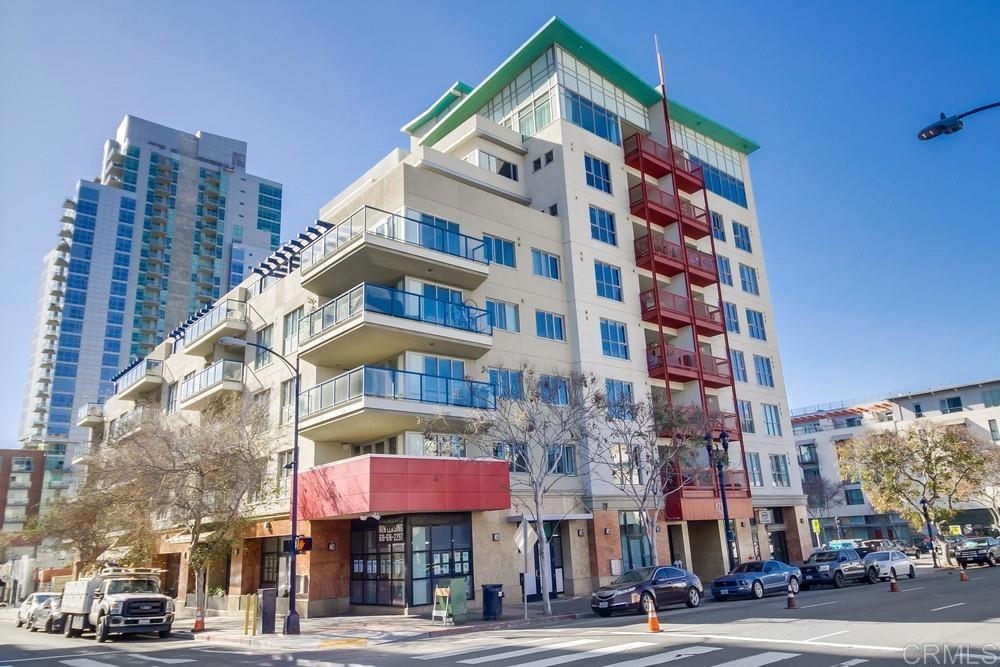 Spacious and move-in ready condo with 2 bedrooms and 2 full bathrooms. This single-level home has a nice floor-plan with the bedrooms on either side of the open living area. Enjoy the natural light and views of the City from the family room or the spacious covered patio. Excellent location close to the Gaslamp, Ballpark and more - but also tucked slightly away from the hustle and bustle. Washer and Dryer in unit! Two dedicated underground parking spots that are side by side. There is also a gym and rooftop hangout space with a BBQ. Relatively low HOA and easy access to the 163, 5 & 94 freeways. Just steps away from restaurants, nightlife, shopping, cross-fit and more!