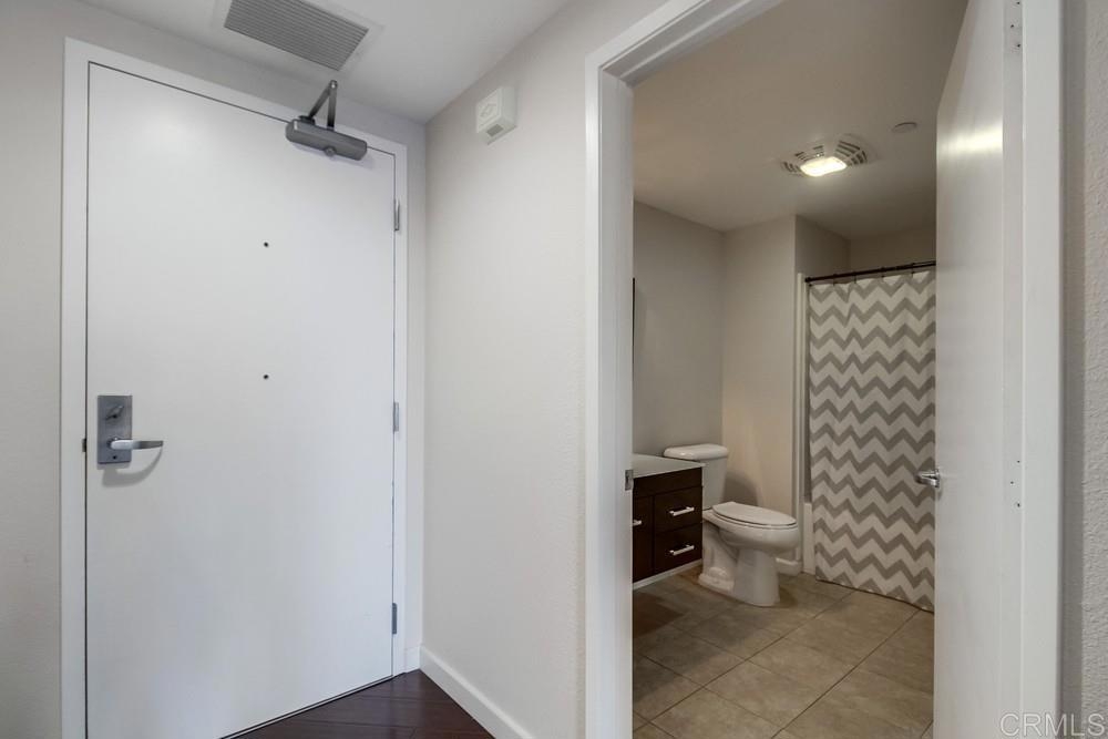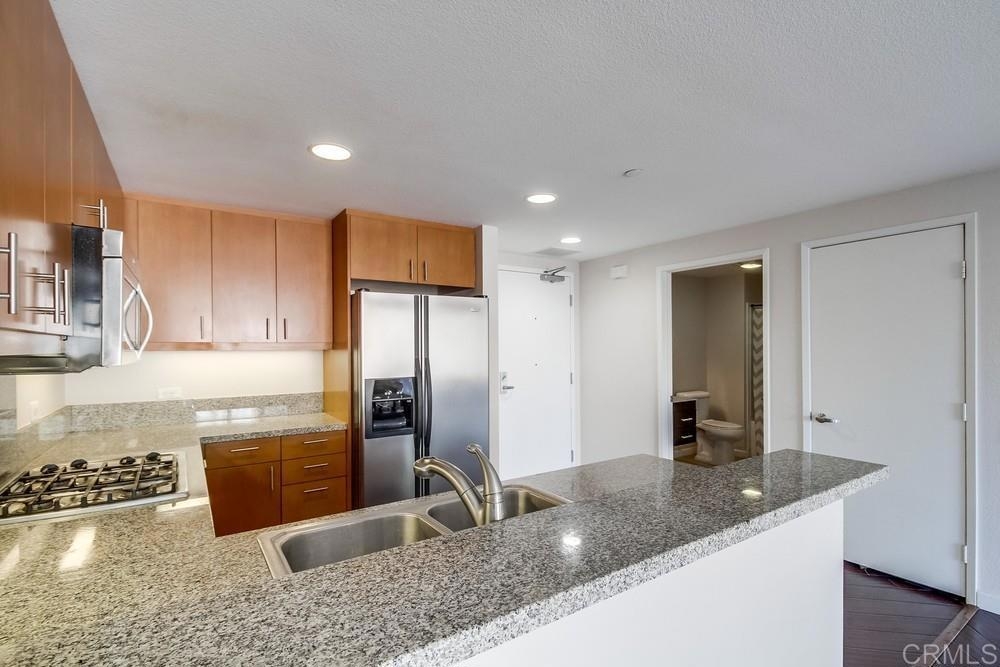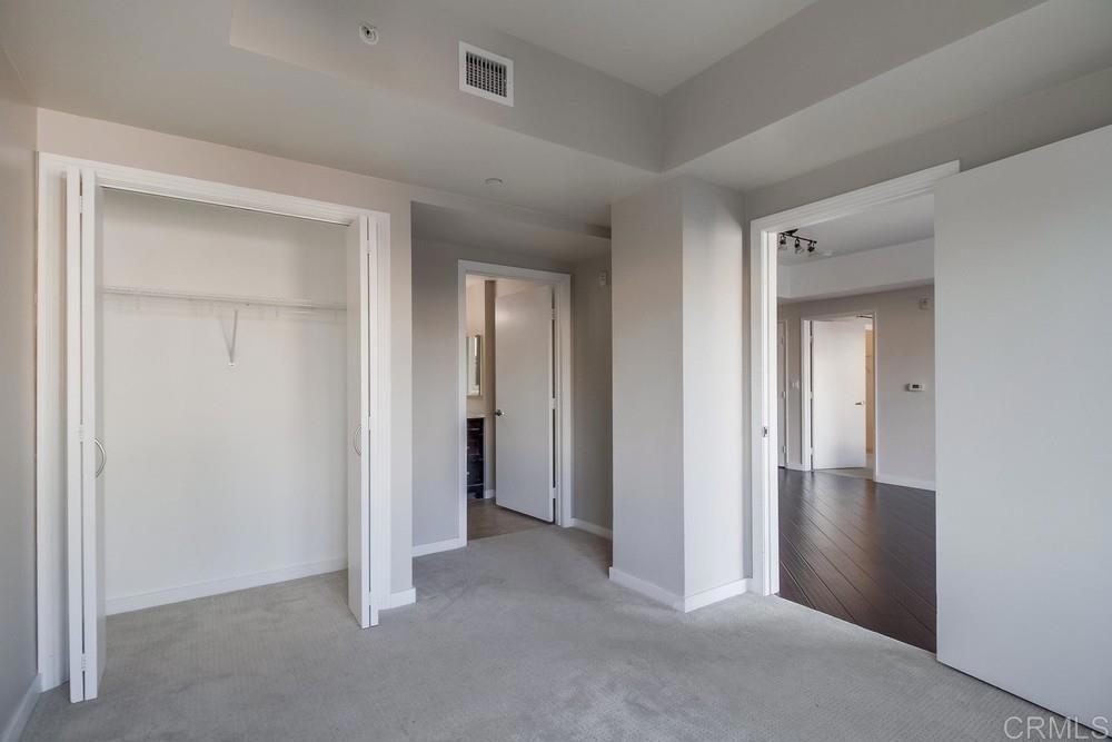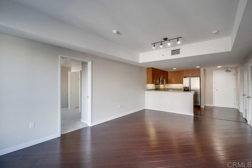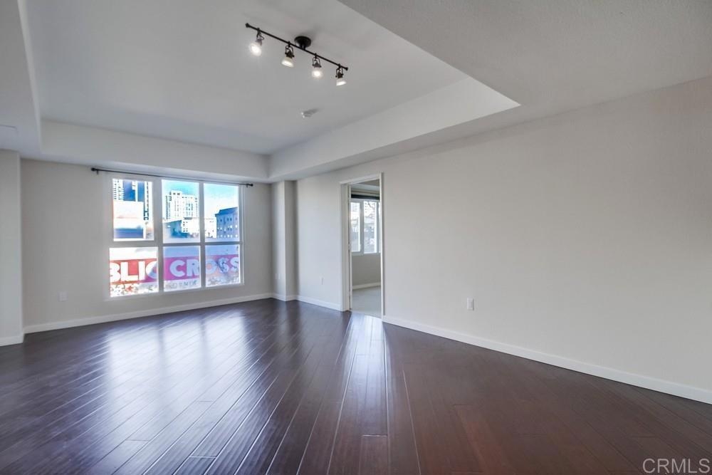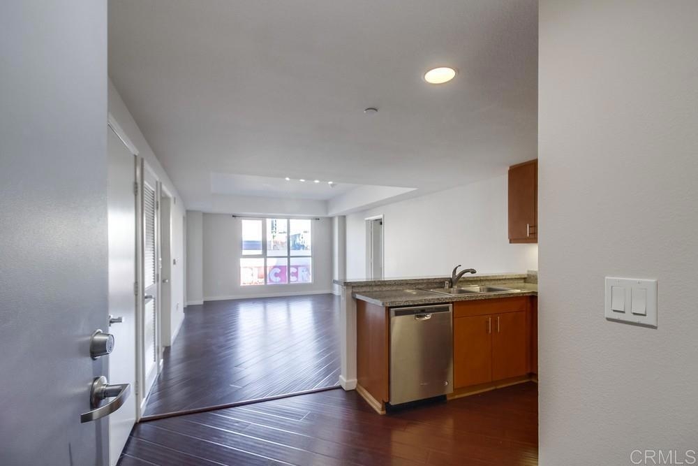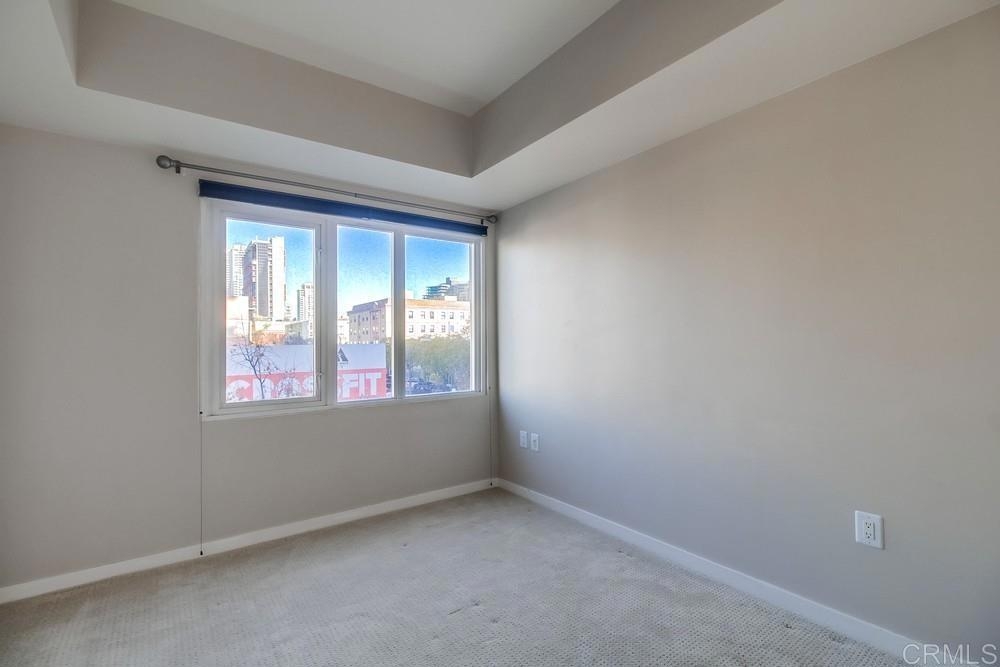 Spacious and move-in ready condo with 2 bedrooms and 2 full bathrooms. This single-level home has a nice floor-plan with the bedrooms on either side of the open living area. Enjoy the natural light and views of the City from the family room or the spacious covered patio. Excellent location close to the Gaslamp, Ballpark and more - but also tucked slightly away from the hustle and bustle. Washer and Dryer in unit! Two dedicated underground parking spots that are side by side. There is also a gym and rooftop hangout space with a BBQ. Relatively low HOA and easy access to the 163, 5 & 94 freeways. Just steps away from restaurants, nightlife, shopping, cross-fit and more!
