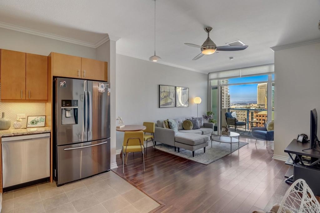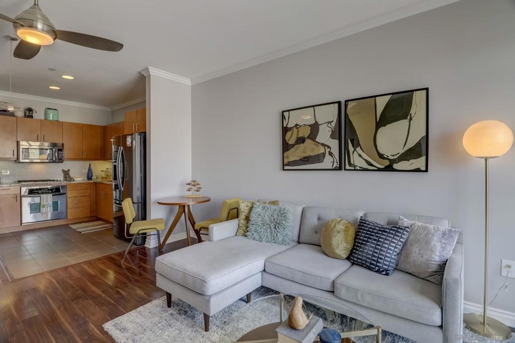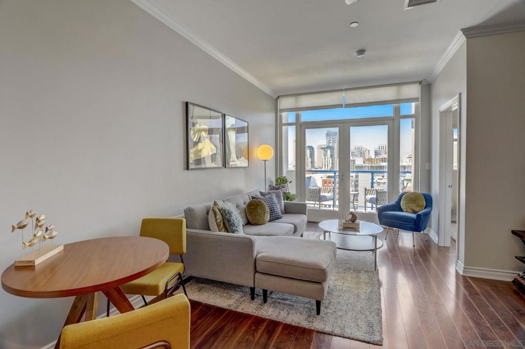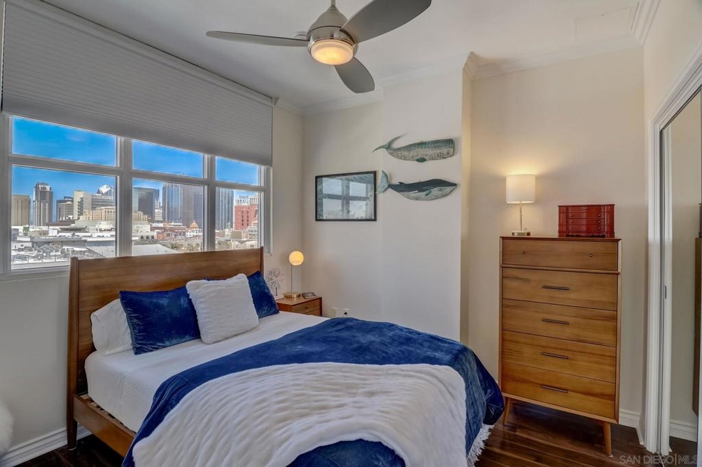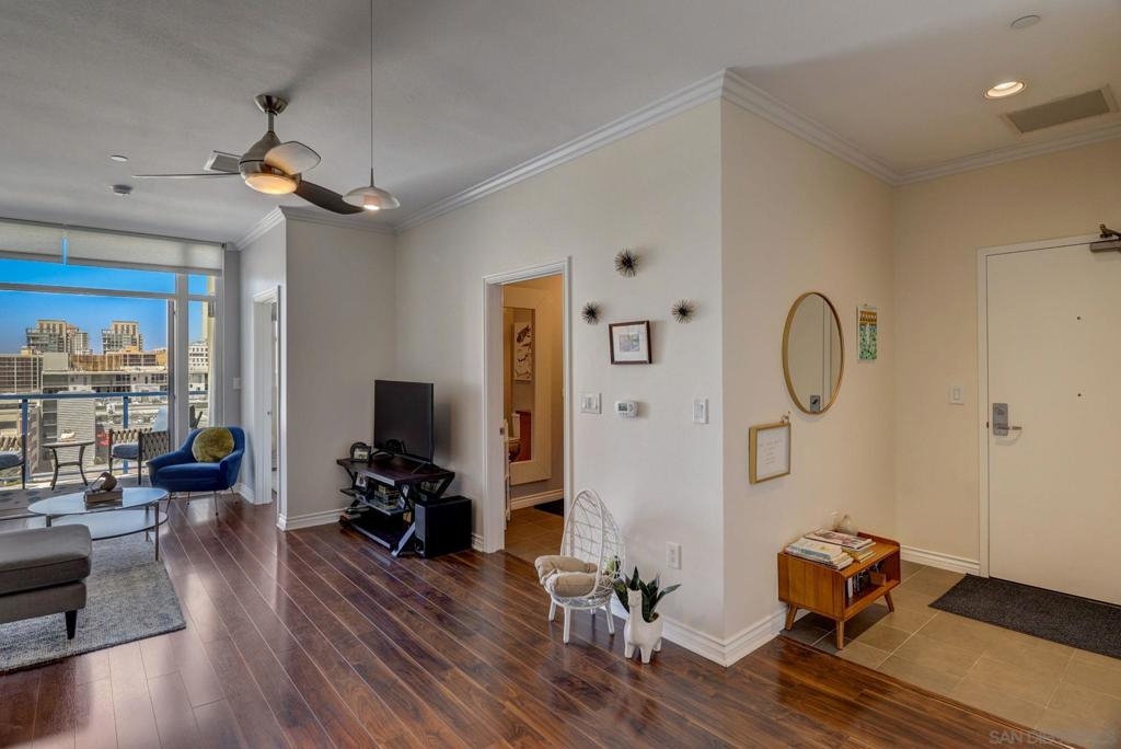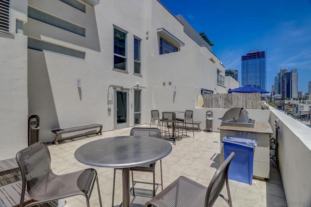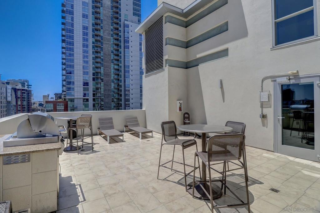 This is the perfect one bedroom, urban gem that you have been waiting for! Situated on the top floor with a corner unit advantage, enjoy privacy with no neighbors above or beside you. This bright & breezy home welcomes you with its turnkey, move-in ready charm, featuring an open floor plan & a spacious living room that effortlessly leads to the adjoining balcony, providing city & peek-a-boo bay views. Formal entry, wood flooring, stainless appliances, & in-unit washer/dryer. Oversized separate storage area conveniently located near the parking space. Nexus offers a fitness center & 7th-floor rooftop deck with BBQ & views! Great East Village location with EZ access to Petco Park, Gaslamp & the Marina District.