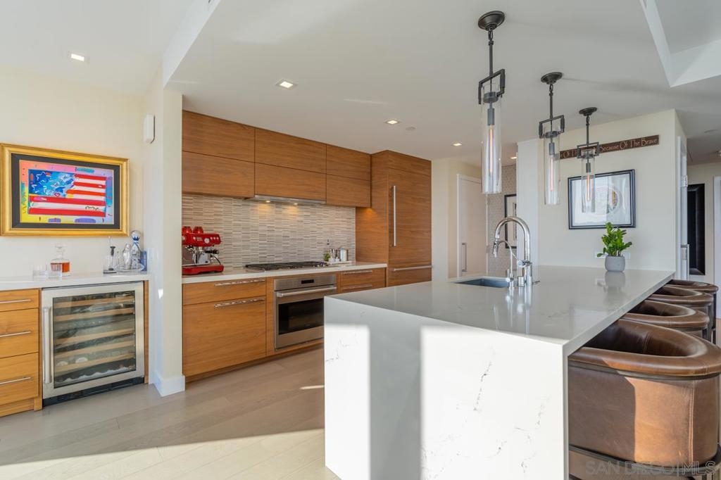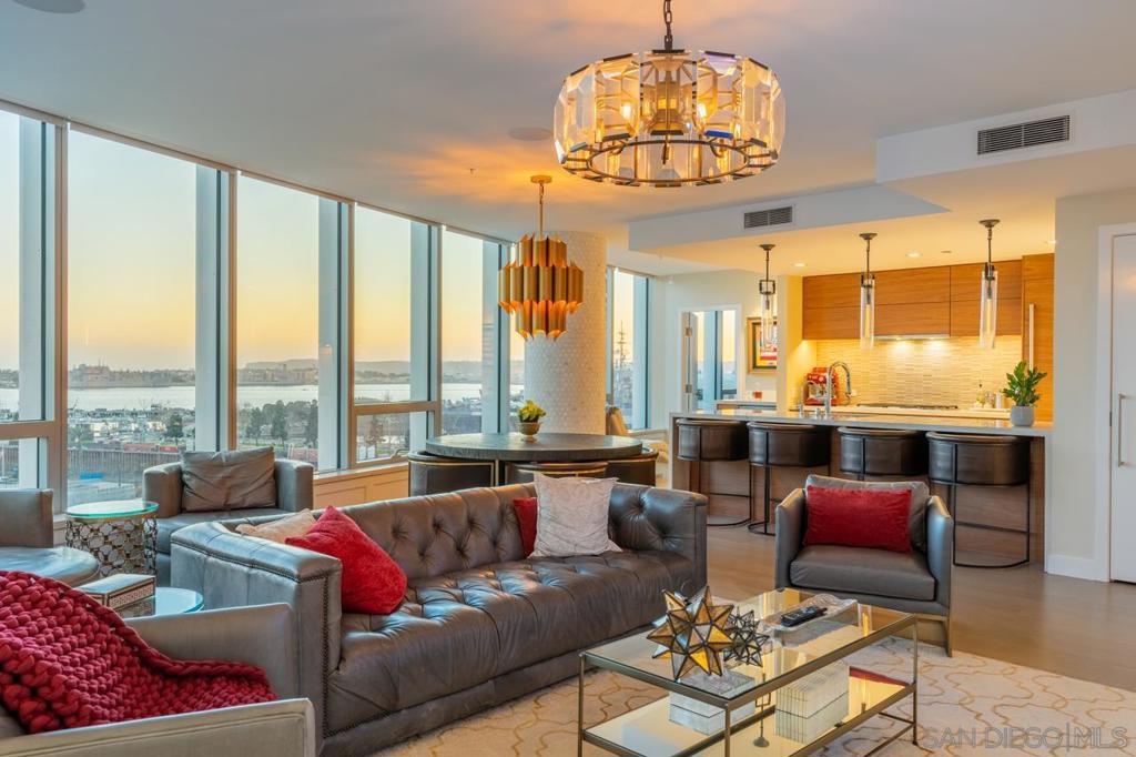 Pacific Gate is the most luxurious super prime building in San Diego. This unit has been meticulously upgraded and remodeled with custom audio, lighting, built-ins, closets, masonry stone work and much. Over 100k in post close upgrades to make this a one of a kind 04 floor plan. Enjoy the South West orientation with abundance of light, breathtaking sunsets and Bay Views. This unit wont disappoint, enjoy a true turn key unit. Pacific Gate has a guest suite unit available to owners with reservations and a Luxurious Yacht to enjoy as part of the amenities. Dont forget the fleet of cars owners can use while in San Diego. Enjoy 24/7 concierge services while living at Pacific Gate and the amenities of a super prime building. Equipment: Dryer Sewer: Sewer Available Topography: LL
