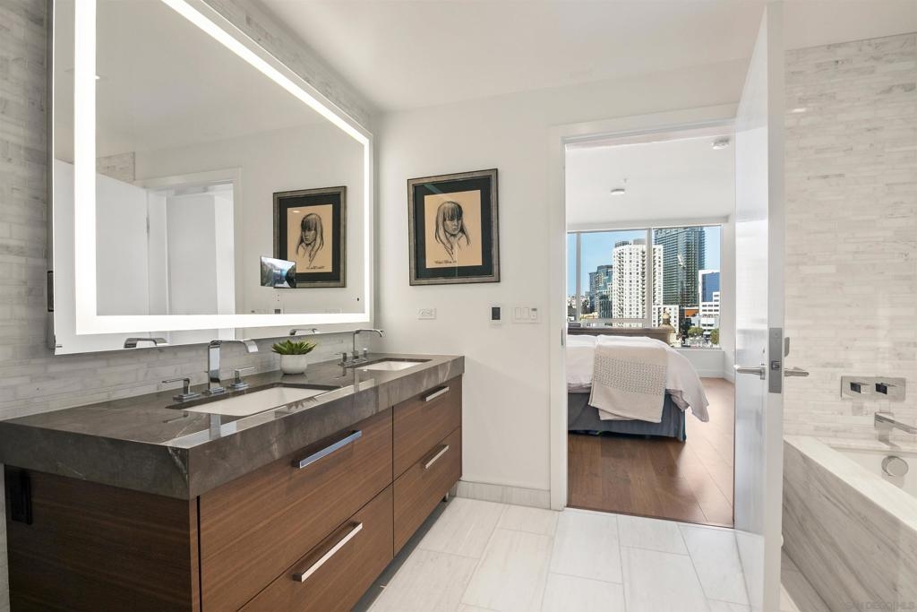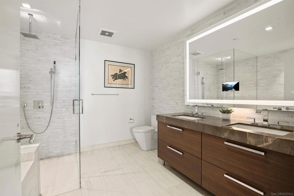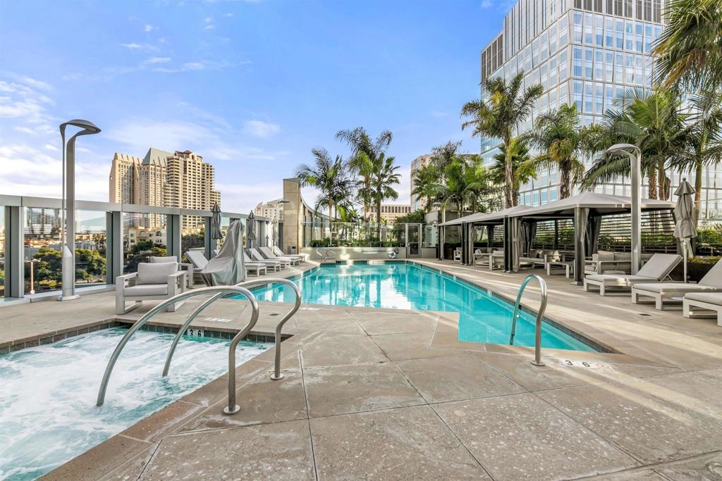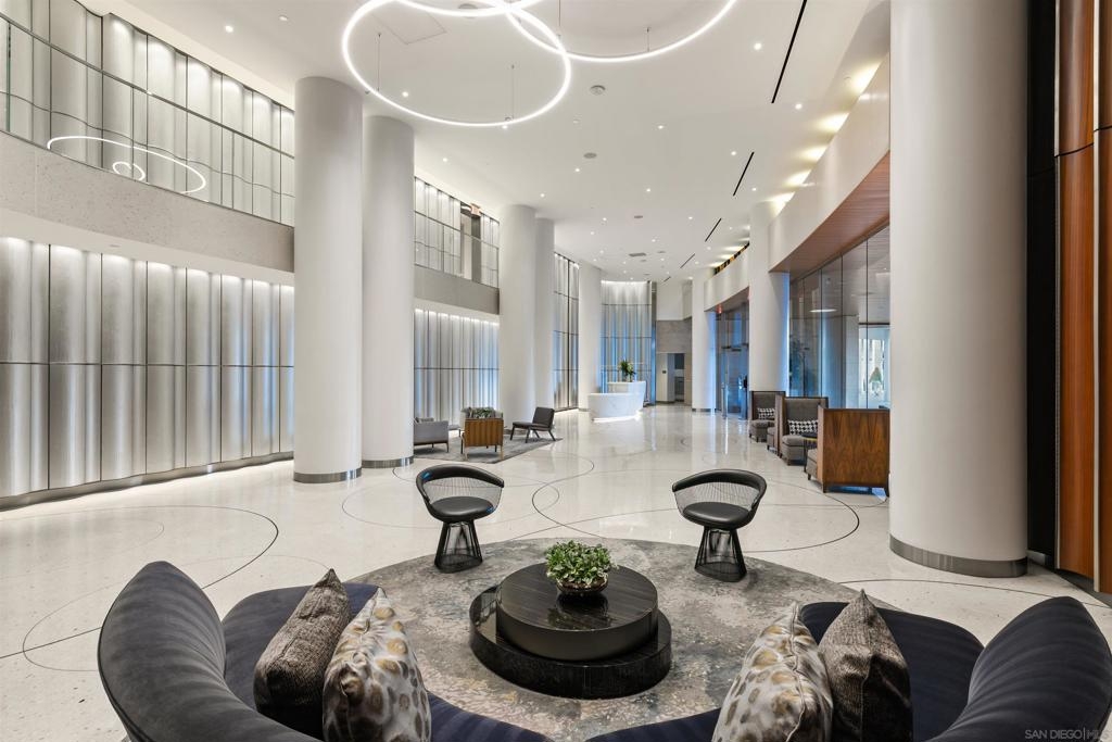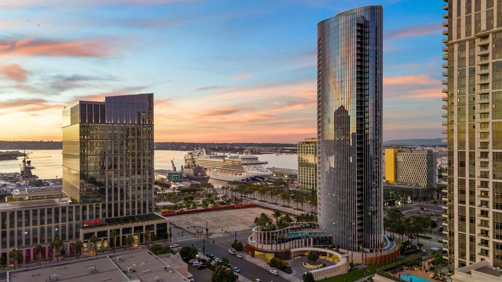 Welcome to Pacific Gate, where luxury living is redefined by modern elegance, contemporary design, and exceptional concierge services. Perched on the 10th floor, this unit features expansive floor-to-ceiling windows and a spacious covered terrace with unobstructed views of the downtown skyline. High-end finishes abound, including hardwood flooring, custom storage closets, fully automated shades, and touch-screen lighting. The gourmet kitchen is a culinary masterpiece, equipped with state-of-the-art appliances, push-button cabinetry, sleek stone countertops, and a Carrara marble backsplash. The primary suite offers stunning views, a customized walk-in closet, and an en-suite bathroom with heated floors, a soaking tub, a separate walk-in shower, and a backlit mirror with a built-in TV. Residents enjoy unparalleled amenities, including a private yacht share, a luxury fleet of cars, chef’s concierge service, community lounge, theater/screening room, resort-style pool, spa with cabanas, BBQ deck, pet retreat, bike storage, and a state-of-the-art fitness center, steam room, sauna, and a private guest suite. This unit uniquely offers two storage units, whereas most units come with just one, making it a highly sought-after feature. Discover urban living in the San Diego Downtown Waterfront District, a vibrant area brimming with coastal charm. Ideally situated above the renowned Animae restaurant at Pacific Gate, this building is just a short stroll from Little Italy. At its heart are the beautifully revitalized Seaport Village and The Rady Symphony Shell at Jacobs Park. Enjoy the convenience of a quick ferry ride to Coronado Island, along with easy access to the Gaslamp Quarter, the airport, and Balboa Park's museums, including the San Diego Zoo. The upcoming RaDD, San Diego's newest office, lab, and retail district, is set on the waterfront across from the USS Midway Museum. This $1.5 billion Life Sciences complex and park will further enhance the area’s appeal. Spanning more than eight acres, the Research and Development District will transform downtown San Diego with an iconic life science district featuring best-in-class retail, outdoor dining, open green spaces, event spaces, and convenient transit access.