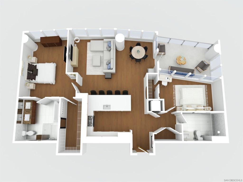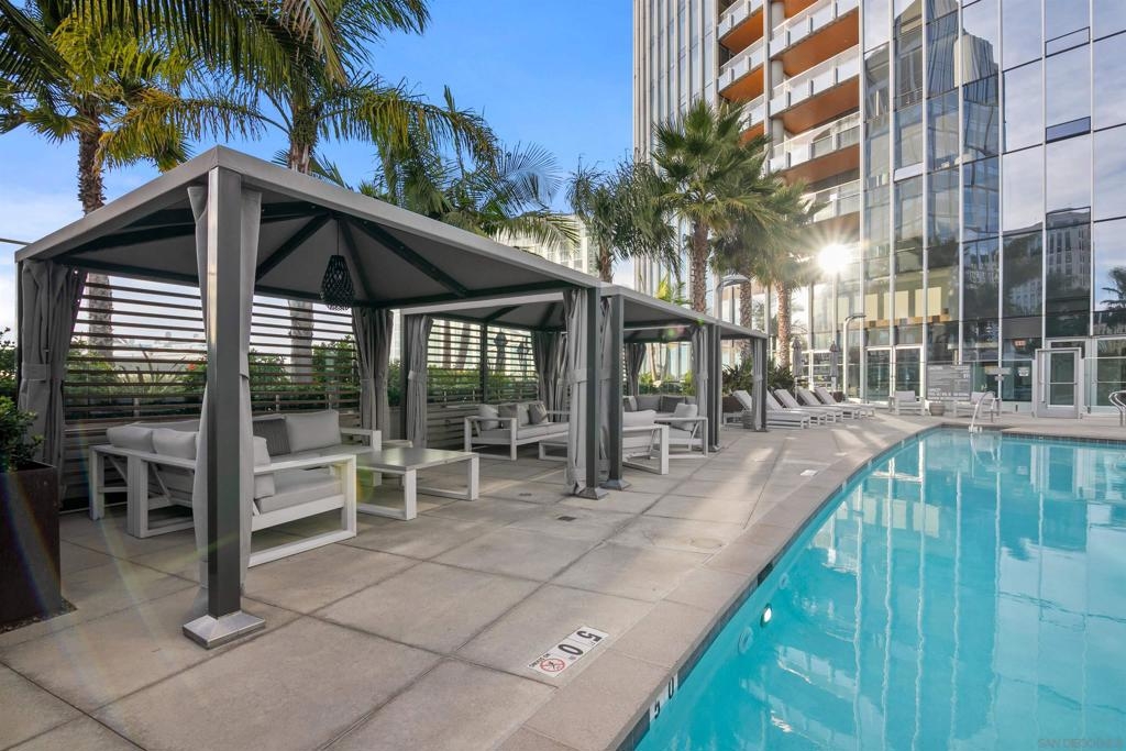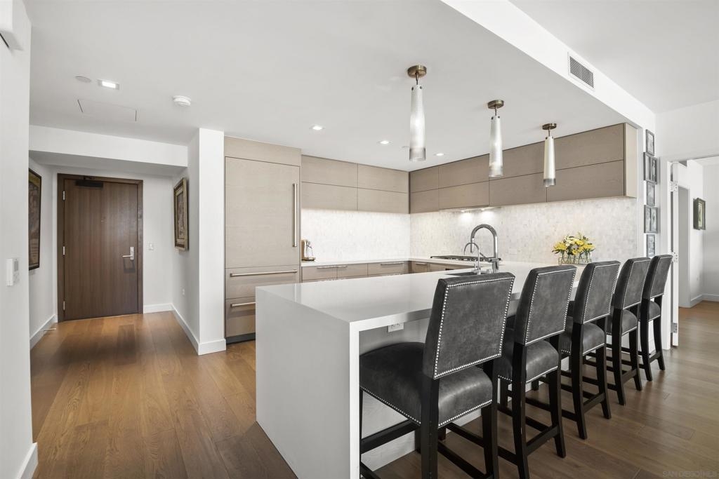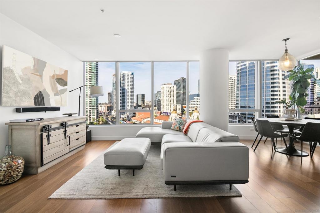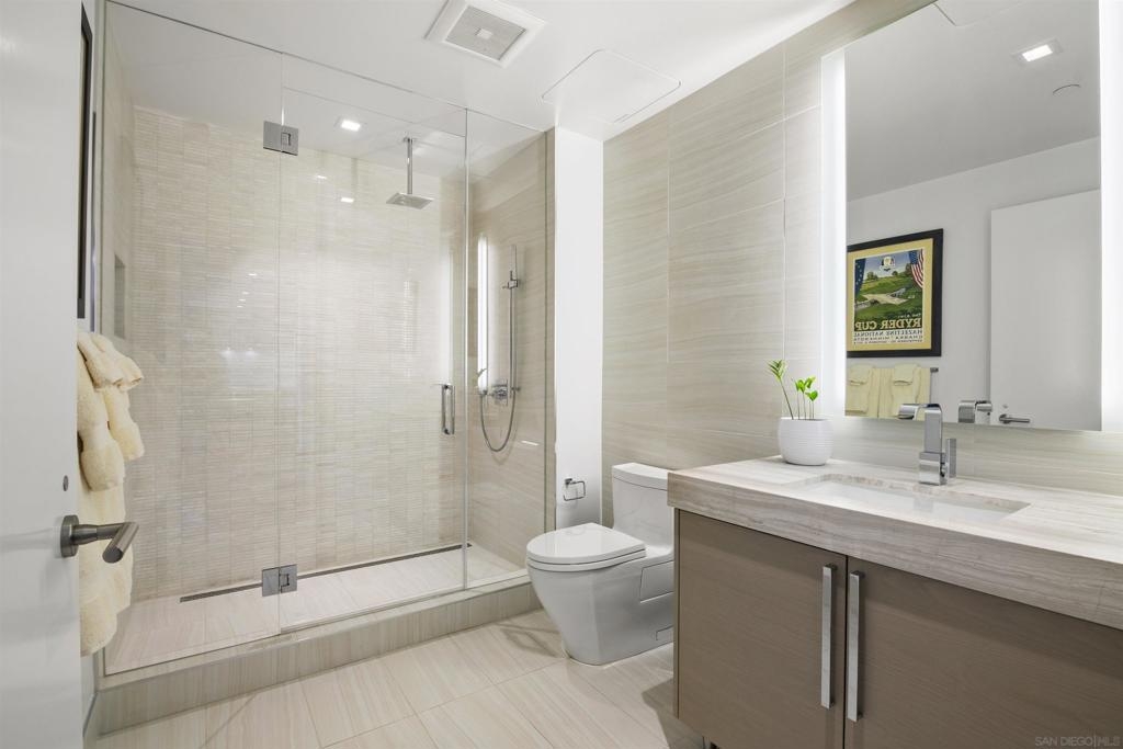 Welcome to Pacific Gate, where luxury living is redefined by modern elegance, contemporary design, and exceptional concierge services. Perched on the 10th floor, this unit features expansive floor-to-ceiling windows and a spacious covered terrace with unobstructed views of the downtown skyline. High-end finishes abound, including hardwood flooring, custom storage closets, fully automated shades, and touch-screen lighting. The gourmet kitchen is a culinary masterpiece, equipped with state-of-the-art appliances, push-button cabinetry, sleek stone countertops, and a Carrara marble backsplash. The primary suite offers stunning views, a customized walk-in closet, and an en-suite bathroom with heated floors, a soaking tub, a separate walk-in shower, and a backlit mirror with a built-in TV. Residents enjoy unparalleled amenities, including a private yacht share, a luxury fleet of cars, chef’s concierge service, community lounge, theater/screening room, resort-style pool, spa with cabanas, BBQ deck, pet retreat, bike storage, and a state-of-the-art fitness center, steam room, sauna, and a private guest suite. This unit uniquely offers two storage units, whereas most units come with just one, making it a highly sought-after feature. Discover urban living in the San Diego Downtown Waterfront District, a vibrant area brimming with coastal charm. Ideally situated above the renowned Animae restaurant at Pacific Gate, this building is just a short stroll from Little Italy. At its heart are the beautifully revitalized Seaport Village and The Rady Symphony Shell at Jacobs Park. Enjoy the convenience of a quick ferry ride to Coronado Island, along with easy access to the Gaslamp Quarter, the airport, and Balboa Park's museums, including the San Diego Zoo. The upcoming RaDD, San Diego's newest office, lab, and retail district, is set on the waterfront across from the USS Midway Museum. This $1.5 billion Life Sciences complex and park will further enhance the area’s appeal. Spanning more than eight acres, the Research and Development District will transform downtown San Diego with an iconic life science district featuring best-in-class retail, outdoor dining, open green spaces, event spaces, and convenient transit access.