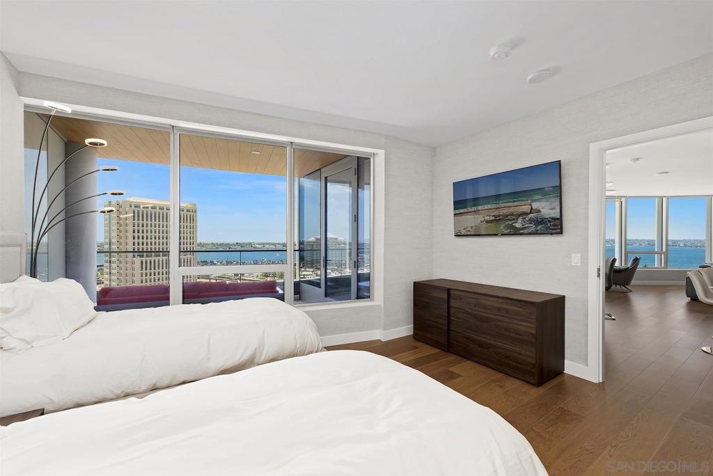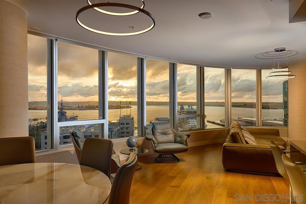 Within each of the finest high-rise communities in any cosmopolitan city, there is just one. The first residence plan to be chosen by savvy collectors early on and the most sought after on the resale market by those who missed out. Where an indulgent interior meets uninterrupted, panoramic views overlooking the water from Mexico to Coronado and Point Loma to the airport. At Pacific Gate it is unarguably the 02 Residence; the only floor plan to offer sunset vistas in all four seasons. 1502 is currently the only available residence under $3M with a usable third bedroom and third half bath for kids or guests. "I have the simplest tastes. I am always satisfied with the best." - Oscar Wilde Please see video tour and Matterport 3D tour included in listing. Property is Southwest orientation with sit-down water views from the interior to the Northwest, West, Southwest, South and Southeast. The 02 floor plan is the only one at Pacific Gate with sunset view exposure all year. A formal entry hall with oversized coat closet and over 15 feet of art walls on either side leads to the foyer, a rare find in this downtown market. A thoughtfully crafted art alcove sits ready for your statement piece to greet you and your guests. An early pre-construction purchase allowed for a now-coveted optional third bedroom, den/office addition completed by the original builder. The current owners chose a custom California Closets Murphy Bed with extra storage and hide-away night stands to round out this space as a haven for guests and extended family for holiday visits, complete with its own powder room, tucked away from the two principal bedroom suites which sit on opposite ends of the residence for privacy. The heart of the largest two bedroom tower residence at Pacific Gate is in the center of the home. An 11 foot Caesarstone waterfall kitchen island flows seamlessly into the dining and expansive living areas. The walnut kitchen cabinetry is grain matched by hand and include touch-sensitive automated opening upper doors. The Wolf cooking suite includes a five-burner gas range, Sub Zero fridge and double drawer freezers. With approximately 97 feet of continuous windows, you are quite literally surrounded by a panorama of views from every vantage point. Views span roughly 270 degrees from North/Northeast to Banker's Hill and wrap continuously around through the West overlooking Broadway Pier and the cruise ships pulling in and out of port, across to Harbor Island, Shelter Island, Point Loma, Coronado, the iconic Hotel Del Coronado and Coronado Bridge, regattas on the bay and out in the Pacific, the historic Midway Museum and South/Southeast to Mexico. Equipment: Dryer,Fire Sprinklers, Water Filtration Sewer: Public Sewer Topography: LL