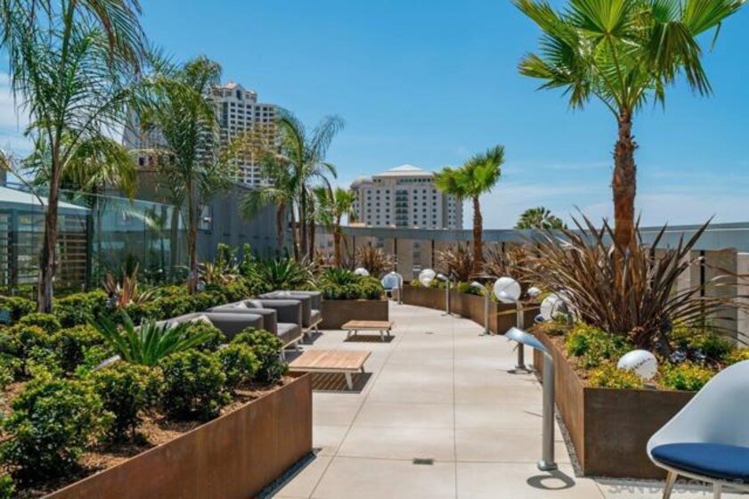 Gorgeous city & San Diego Bay views from this 17th floor Pacific Gate residence! This deluxe northwest corner with 45K in upgrades, boasts a spacious balcony overlooking the iconic waterfront. Remarkable details include top-of-the-line Wolf, Miele & Sub-Zero appliances, Caesarstone surfaces, automated window shades with blackout shades in br's & luminous hardwood flooring throughout. This expansive floorplan features a den, ideal for a home office, upgraded surround sound, custom walk-in closets, and luxurious bathrooms. See supplement for full details. Don’t miss the opportunity to embrace elevated waterfront living at Pacific Gate! Boasting awe-inspiring views, this plush northwest corner unit showcases some of the best views of the San Diego Bay, Pacific Ocean, and iconic skyline. An entertainer’s dream, your guests will love stepping out onto the oversized west-facing terrace for nightly sunset skies over the sparkling bay. The seller spend 45K in upgrades; 30K custom California closets, 6K black-out shades, 6K surround-sound, and 3K in upgraded lighting. The gourmet kitchen includes premium Wolf cooking appliances and gas range, front-paneled Sub-Zero refrigerator, Caesarstone quartz surfaces with waterfall edge, and custom grain matched cabinetry with soft-close hardware. The expansive owner’s suite features a large walk-in closet with custom built-ins for every organizational need imaginable. The spa-inspired ensuite bathroom boasts luxurious heated stone floors, dual vanity, frameless rain shower, soaking tub with stone surround, and high-end Grohe and Graff faucets and finishes. A bright den is tailormade for that coveted “work from home” office space- and this one has an unbeatable view! This commodious split floorplan’s second bedroom enjoys both fantastic blue water views and a sleek ensuite bathroom. With a lovely powder room, stackable laundry, two parking spaces, and a storage unit, this beautiful condo will prove to be as convenient as it is lovely. Life gets better at Pacific Gate with the use of a private boat, 24-hour concierge service, private luxury car fleet, personal chef concierge, and porter services. Even your most discerning guests will love the luxurious guest suite available by reservation to residents only. The resort-style pool terrace offers tented cabanas, Wolf barbecues, a fire pit, and numerous outdoor dining and lounge areas. Take advantage of the steam room or sauna in addition to the well-equipped fitness center. Located across from the upcoming Manchester Pacific Gateway and walking distance to the restaurants, entertainment, and more, this location is bound to become one of the most coveted waterfront residential locations in the world. Welcome home! Complex Features: ,,,,,,,,, Equipment: Dryer, Range/Oven, Washer Sewer: Sewer Connected, Public Sewer Topography: LL