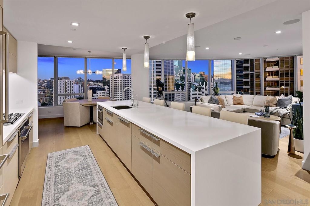 Polished modern comfort with Southern California ease and luxury. This 24th floor residence showcases dramatic curved walls of glass that expertly highlight magnificent city and water views. Indulge in meticulously crafted interiors that showcase luxurious custom built-ins, an expansive chef's kitchen and living area, luxurious stone baths, home office with a view, and a large private terrace to take in the dazzling nightly vistas. Downtown waterfront living is all about the walkability to the best restaurants, shopping and entertainment venues in downtown, as well as close proximity to freeway access. World-class amenities include a fully equipped guest suite, fitness center, screening room, pool terrace with cabanas, pet retreat, and a private boat share to fully indulge in waterfront living... Welcome home! The first all-glass Super Prime residential tower in San Diego, offers an unprecedented waterfront lifestyle with sky-high amenities and picture-postcard views. Directly overlooking the waterfront, the 41-story tower contains an exclusive offering of homes designed by Hirsch Bedner Associates. Renowned New York-based architectural firm Kohn Pedersen Fox (KPF) created a landmark that reimaged the San Diego skyline. The custom engineered glass walls dynamically reflect the hues of the sky and the Pacific Ocean. Pacific Gate has evolved the San Diego skyline and represents the future of the city. The building is comprised of two-nested curved glass towers that rise as a single column from a three-story ground floor retail podium on the north and west sides of the tower. Because of the building’s curves and exterior glass, Pacific Gate offers a striking viewing experience from every vantage point. Residents arrive home to a beautifully landscaped motor court with private luxury car fleet, which leads to a double-height lobby with a 24-hour concierge and porter services. Two levels of amenities boasts a residents lounge ideal for events and everyday use, the fitness center contains an extensive range of state-of-the-art equipment. Adjacent to the fitness center are the steam and sauna retreats that open up to the fourth floor pool terrace fitted with poolside cabanas and glass surround. Residents at Pacific Gate have access to the most extensive resort-like services and amenities in the area, from a residents only guest suite, Chef Concierge, porter services, private luxury car fleet and Pacific Dream, Pacific Gate’s private boat share. Interior finishes include: push button upper cabinetry for ease of access and to maximize storage (lift cabinets only); Sub-Zero cabinet-front refrigerator, water dispenser, and ice maker; Wolf stainless steel five-burner gas cooktop; Wolf stainless steel convection oven; Miele stainless steel built-in range hood; Miele energy-efficient dishwasher with custom cabinet door panel and hidden controls; Wolf microwave; Caesarstone countertops and Caesarstone backsplash; ceiling can lights, integrated Everpure water filtration system. Complex Features: ,,,,,,,,, Equipment: Dryer,Fire Sprinklers, Washer, Water Filtration Other Fees Type: , Sewer: Sewer Connected Topography: LL Frontage: Bay
