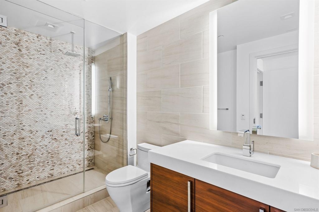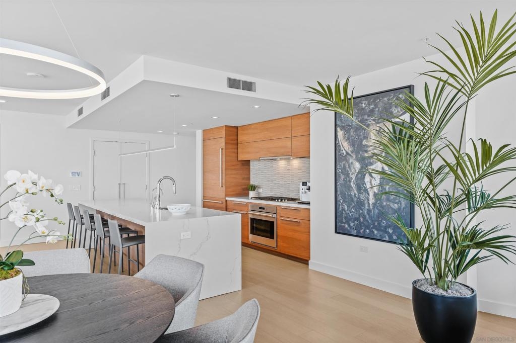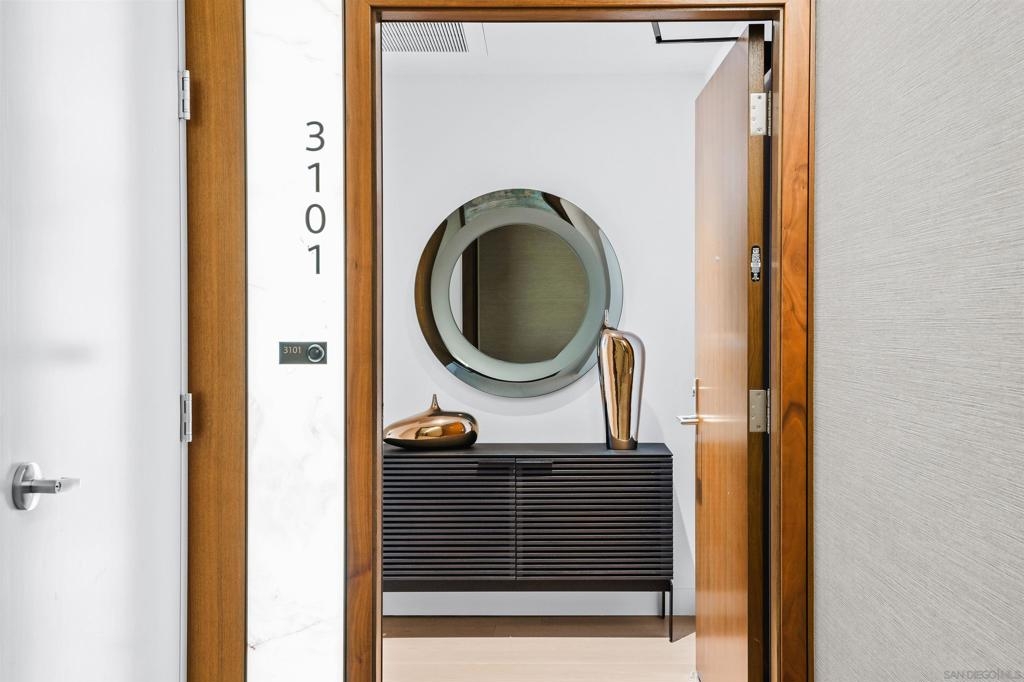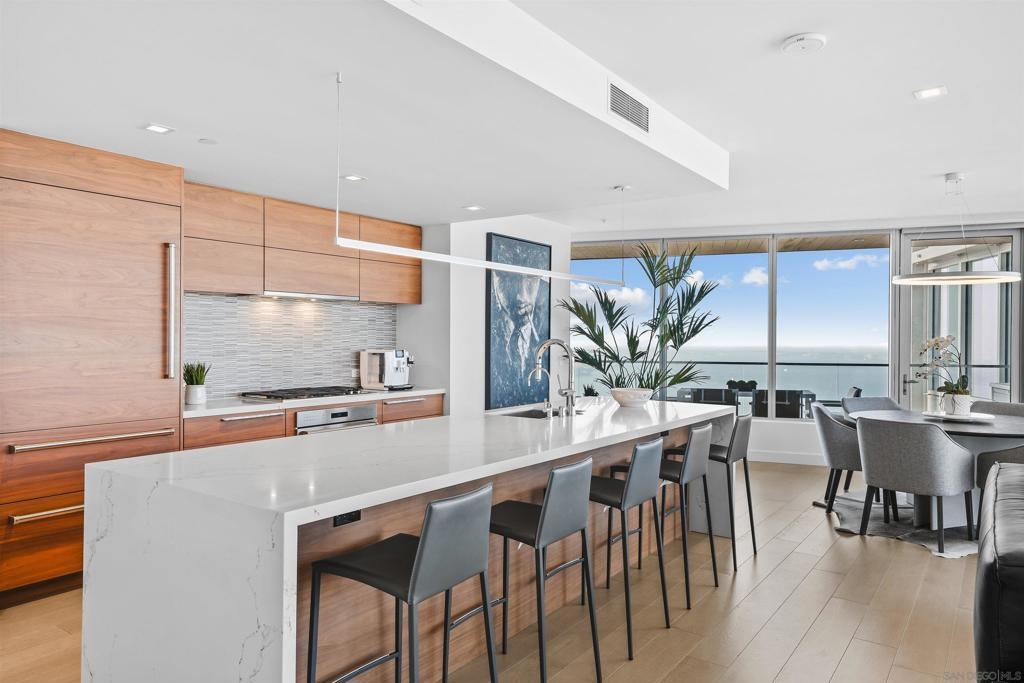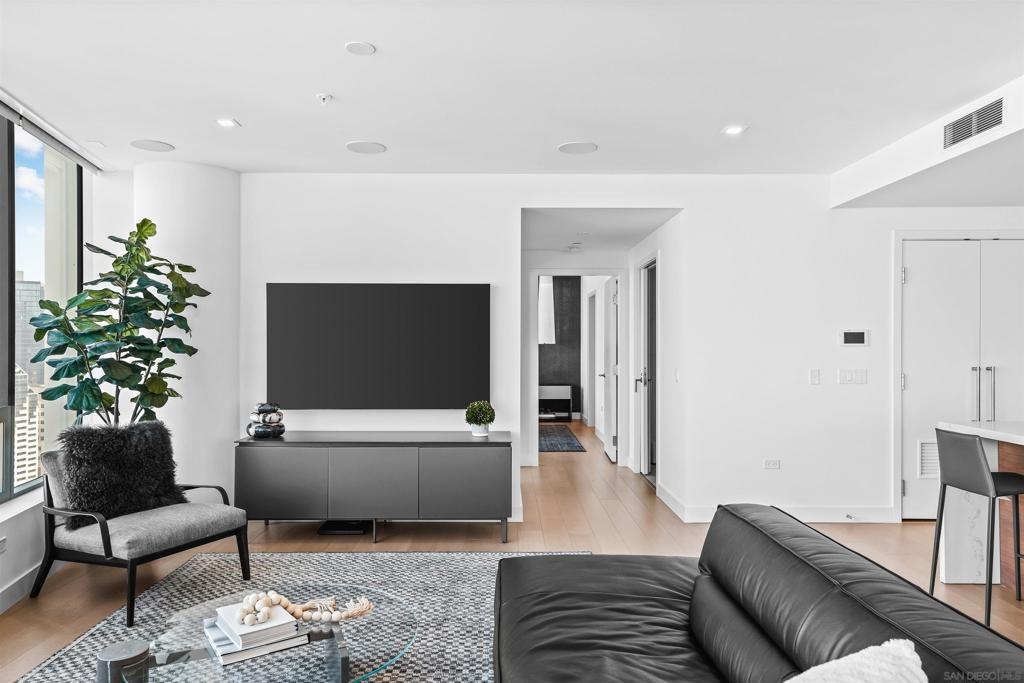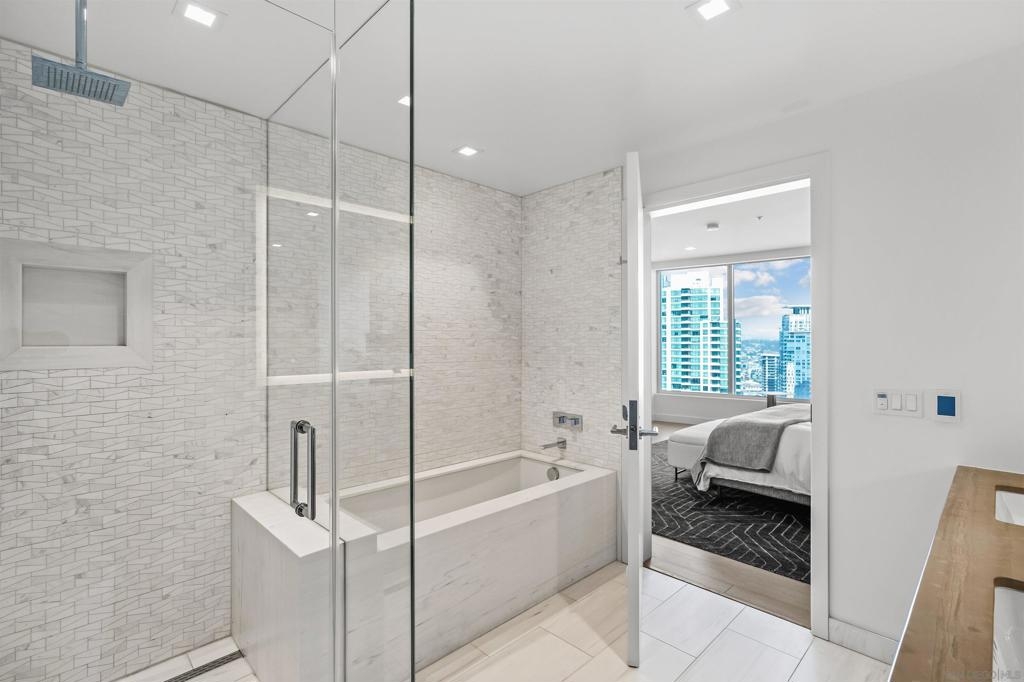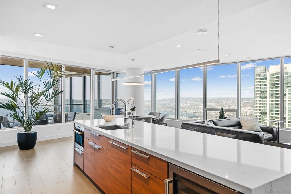 Experience elevated luxury living in one of Pacific Gate’s most coveted floor plans. This sought-after 01 northwest corner residence offers expansive interiors, a highly desirable split-bedroom layout, and breathtaking panoramic views spanning the San Diego Bay, Pacific Ocean, city skyline, and distant mountains visible from every room. Designed for both comfort and sophistication, the home features a generous primary suite with a spa-inspired bath, complete with soaking tub, glass-enclosed shower, and walk-in closet. A versatile den provides the flexibility for a home office or optional third bedroom, while the second en-suite bedroom enjoys stunning bay views and exceptional privacy. The oversized west-facing private terrace is an ideal setting to unwind with a glass of wine as the sun sets over San Diego’s iconic waterfront. Residents of Pacific Gate enjoy an unparalleled collection of world-class amenities, including a 45’ yacht share, concierge service, guest suite, resort-style pool terrace with cabanas, residents’ lounge with catering kitchen, luxury car fleet, and a state-of-the-art fitness center featuring sauna and steam rooms. Perfectly positioned just steps from the bay and across from the RaDD development, Seaport Village, The Rady Shell, and cafes, restaurants, and shops, this exceptional residence offers coastal downtown living at its finest. The first all-glass Super Prime residential tower in San Diego offers an unprecedented waterfront lifestyle with sky-high amenities and picture-postcard views. Directly overlooking the waterfront, the 41-story tower contains an exclusive offering of homes designed by Hirsch Bedner Associates. Renowned New York-based architectural firm Kohn Pedersen Fox (KPF) created a landmark that reimaged the San Diego skyline. The custom-engineered glass walls dynamically reflect the hues of the sky and the Pacific Ocean. Pacific Gate has evolved the San Diego skyline and represents the future of the city. The building is comprised of two-nested curved glass towers that rise as a single column from a three-story ground-floor retail podium on the north and west sides of the tower. Because of the building’s curves and exterior glass, Pacific Gate offers a striking viewing experience from every vantage point.