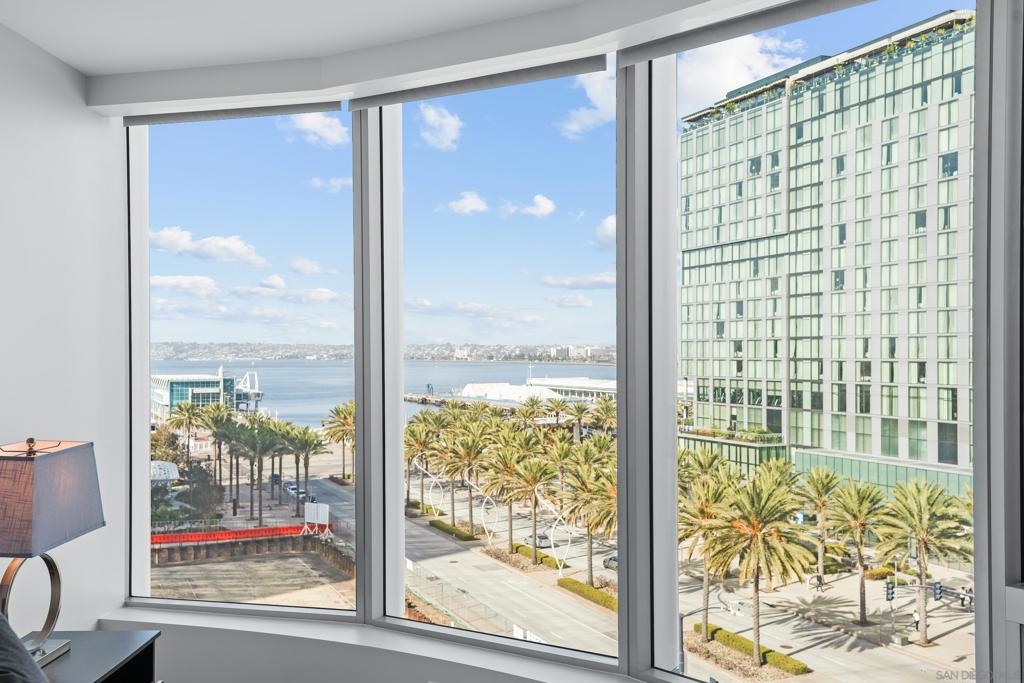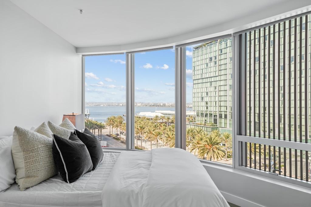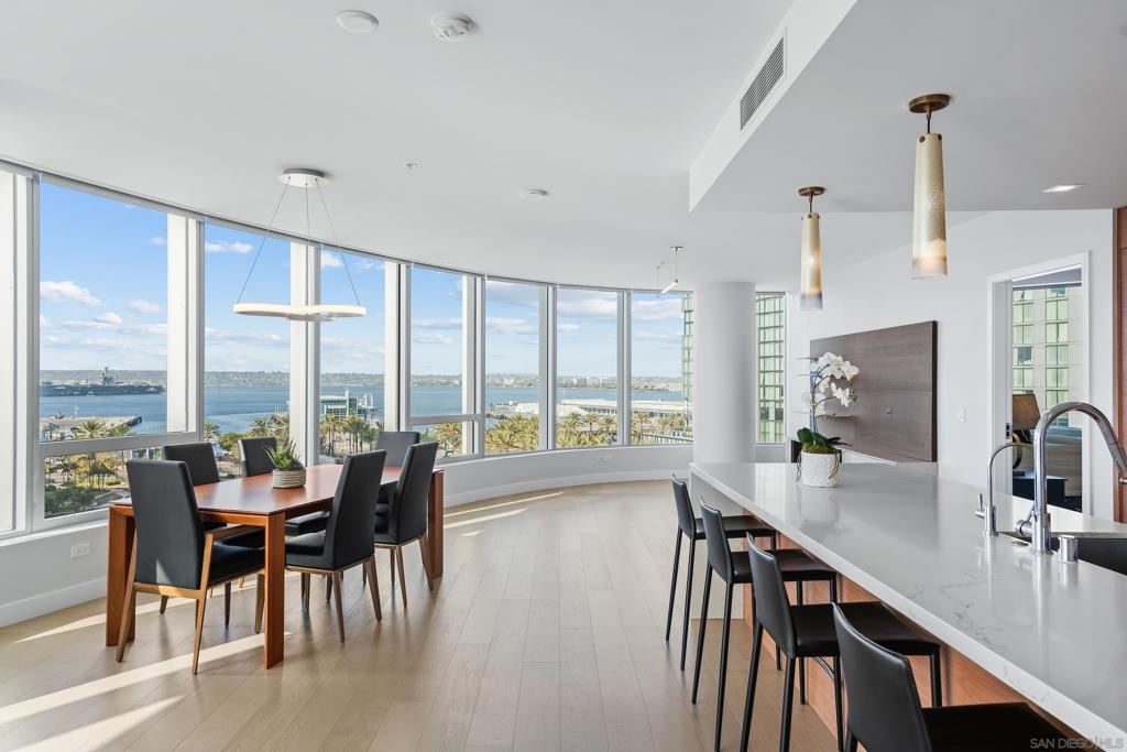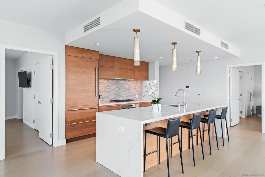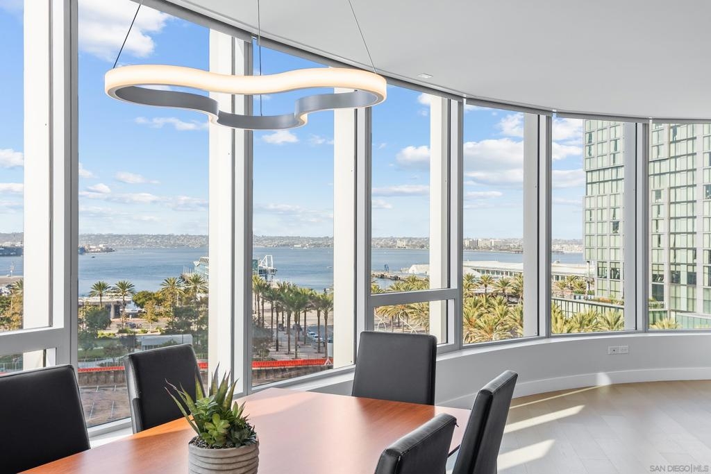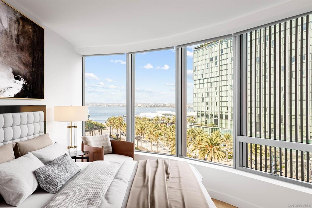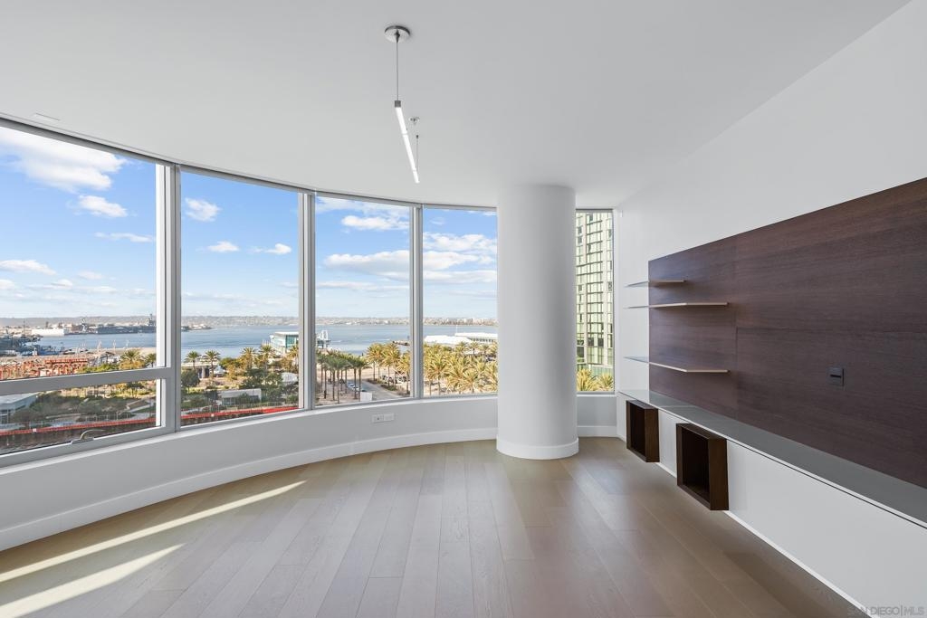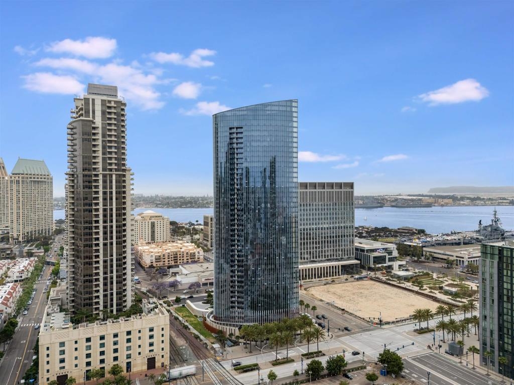Welcome to San Diego's most distinguished residential tower, Pacific Gate. Spanning just over 1,800 sq. ft., this turn-key luxury condo features 2 bedrooms, 2.5 bathrooms, ample storage space, beautiful upgrades, and exquisite bay views. A curved form living area wall of oversized windows offers panoramic southwest, northwest, bay, and city views. Elegantly upgraded, the home boasts tasteful modern lighting and custom high-end built-ins. The chef's kitchen features a large Caesarstone waterfall-edge island, top-of-the-line Wolf, Sub-Zero, and Miele appliances, push-button cabinetry, and illuminated drawers. The primary bedroom showcases a captivating architectural curved design and includes a custom walk-in closet. Its spa-inspired bathroom offers heated floors, a glass-enclosed shower, and a luxurious soaking tub. The coveted 02 floorplan at Pacific Gate was among the most popular during BOSA’s pre-sale phase. Pacific Gate offers exclusive resort-style services and amenities, including a private yacht share, luxury car fleet, 24-hour concierge, porter services, a pool terrace with private cabanas, spa, fire pit, cooking and dining alfresco, a resident lounge with a catering kitchen, a state-of-the-art fitness center, steam and sauna rooms, a guest suite, a screening room, a business center, and an on-site restaurant. Experience the best of America’s Finest City at your doorstep! The first all-glass Super Prime residential tower in San Diego, offers an unprecedented waterfront lifestyle with sky-high amenities and picture-postcard views. Directly overlooking the waterfront, the 41-story tower contains an exclusive offering of homes designed by Hirsch Bedner Associates. Renowned New York-based architectural firm Kohn Pedersen Fox (KPF) created a landmark that reimaged the San Diego skyline. The custom engineered glass walls dynamically reflect the hues of the sky and the Pacific Ocean. Pacific Gate has evolved the San Diego skyline and represents the future of the city. The building is comprised of two-nested curved glass towers that rise as a single column from a three-story ground floor retail podium on the north and west sides of the tower. Because of the building’s curves and exterior glass, Pacific Gate offers a striking viewing experience from every vantage point. Residents arrive home to a beautifully landscaped motor court with private luxury car fleet, which leads to a double-height lobby with a 24-hour concierge and porter services. Two levels of amenities boasts a residents lounge ideal for events and everyday use, the fitness center contains an extensive range of state-of-the-art equipment. Adjacent to the fitness center are the steam and sauna retreats that open up to the fourth floor pool terrace fitted with poolside cabanas and glass surround. Residents at Pacific Gate have access to the most extensive resort-like services and amenities in the area, from a residents only guest suite, Chef Concierge, porter services, private luxury car fleet and Pacific Dream, Pacific Gate’s private boat share. Interior finishes include: push button upper cabinetry for ease of access and to maximize storage (lift cabinets only); Sub-Zero cabinet-front refrigerator, water dispenser, and ice maker; Wolf stainless steel five-burner gas cooktop; Wolf stainless steel convection oven; Miele stainless steel built-in range hood; Miele energy-efficient dishwasher with custom cabinet door panel and hidden controls; Wolf microwave; Caesarstone countertops and Caesarstone backsplash; ceiling can lights, integrated Everpure water filtration system.