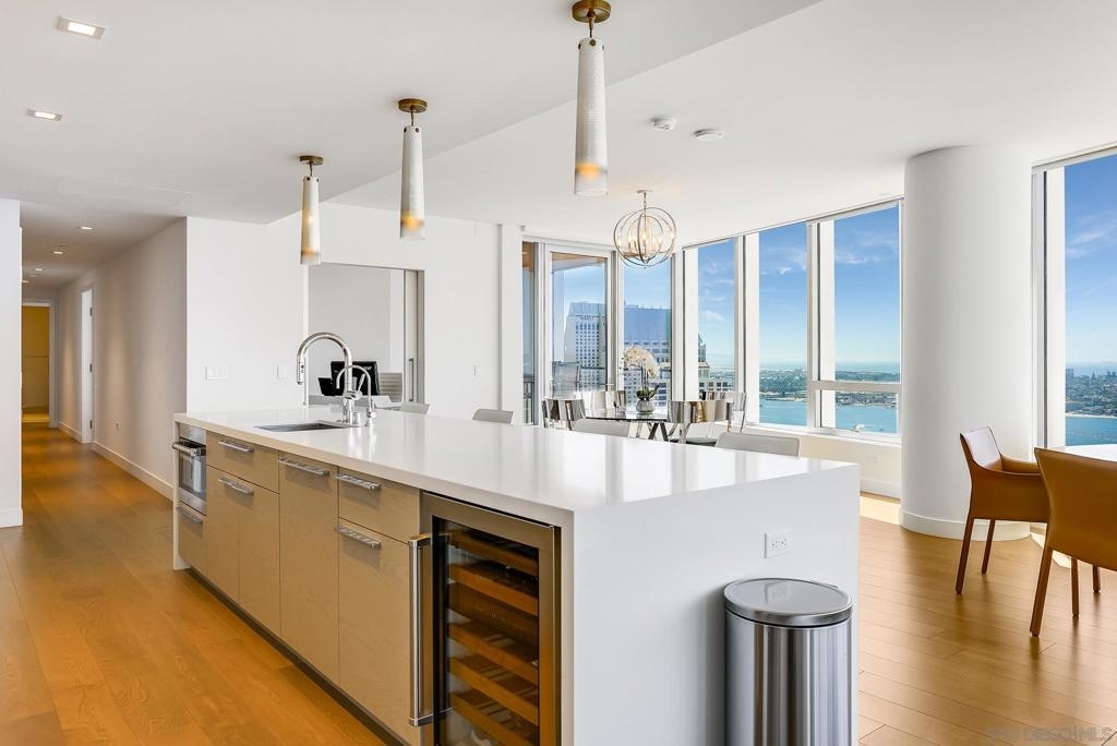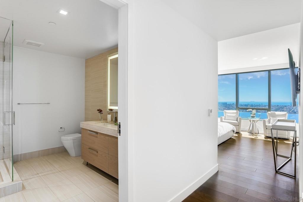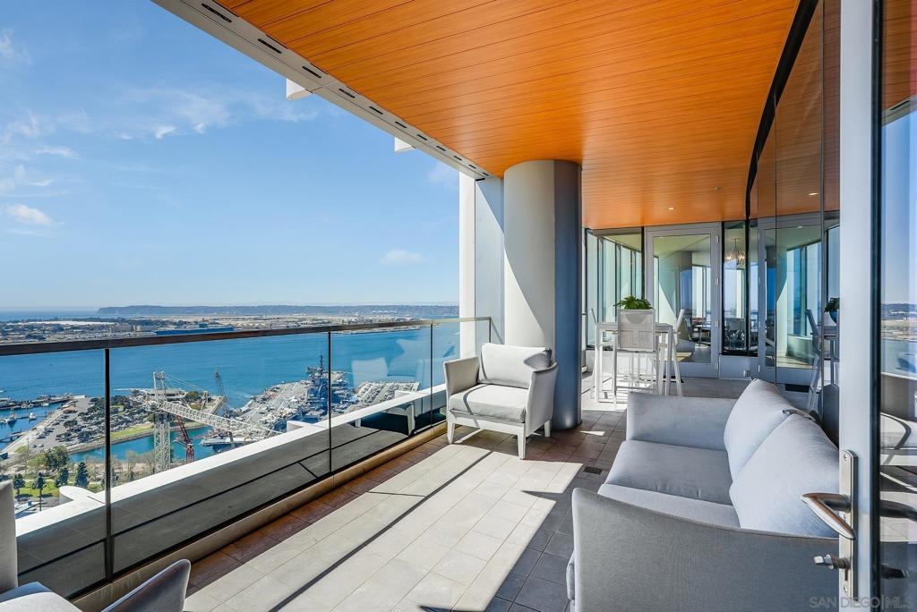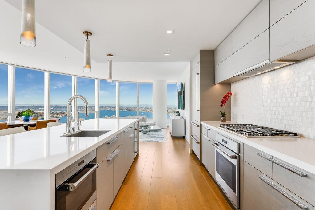 INCREDIBLE VIEWS!! The only available '02 Estate Collection Unit. Like New-SW facing residence receives lots of natural light & has captivating bay and ocean views. Pacific Gate offers the ultimate in luxury high rise living with amenities including concierge, business center,community lounge, luxury car fleet, 50 feet yacht share program, pool, spa, cabanas, fitness center, steam room & sauna, theatre, pet retreat &guest suite. Asking Price to include furniture. Pacific Gate by Bosa is a collection of new, luxury condo residences in Downtown San Diego and its iconic design is a fitting addition to the area’s continually transforming and vibrant scene. With stunning city and waterfront views, residents will enjoy the best of Downtown San Diego and be positioned at the center of it all. As the new premier luxury residences in San Diego, Pacific Gate by Bosa is redefining the city’s skyline with its dynamic architecture. A landmark designed to reflect the fluid forms of the shoreline, Pacific Gate offers more than just a place to call home. Its innovative architecture defines each residence as one of the most stunning and revolutionary developments in San Diego real estate. Pacific Gate offers flawless finishes and unparalleled services and amenities – not before seen in San Diego – all designed to bring the extraordinary to day-to-day living. Residents enjoy luxurious, custom-designed amenity spaces and residences that seamlessly marry contemporary design using a blend of craftsmanship, natural materials and technologically forward techniques -- evoking the coastal vibe, all enveloped in the form and flow of the building. Each residence features expansive windows, bright open layouts and breathtaking views ranging from city to the waterfront. The residences feature HBA custom-designed kitchens cabinets with grain matched cathedral veneer hewn from single lengths of wood, custom kitchen hardware, quartz counter tops and state-of-the-art appliances from Wolf, Sub-Zero and Miele. Spacious master bathrooms are complete with polished stone floors and stone mosaic walls, and an invigorating chrome Graff immersion shower system with rain and handheld showers. Additionally theSmart Home technology allows residents to automate climate, lighting and window treatments through their phone or tablet to produce an unparalleled experience in one of the world’s most sought after coastlines. In addition to iconic architecture, stunning and luxurious interiors, residents of Pacific Gate will have access to the most extensive resort-like services and amenities in the area, from a Residents Only Guest Suite, Chef Concierge, Porter Services, PrivateLuxury Car Fleet and Pacific Dream, Pacific Gate’s Private Boat Share. Equipment: Dryer,Fire Sprinklers,Garage Door Opener, Range/Oven, Washer, Water Filtration Sewer: Sewer Connected Topography: LL