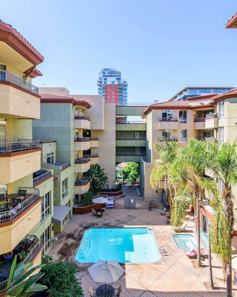 Little Italy Lifestyle!! Come home to your spacious 1-bedroom condo at the Piazza Palermo, where you get incredible amenities and an enviable location with some of the lowest HOA dues around. This move-in ready home provides a large and tranquil balcony overlooking a lush, green courtyard, in-unit laundry, wood flooring, recessed & pendant lighting. Open and bright kitchen is an entertainers dream! Beautiful granite counters, newer cabinetry, a wine cooler & stainless steel appliances. One Assigned parking space in the gated community garage. You can not beat this ideal Little Italy gem!