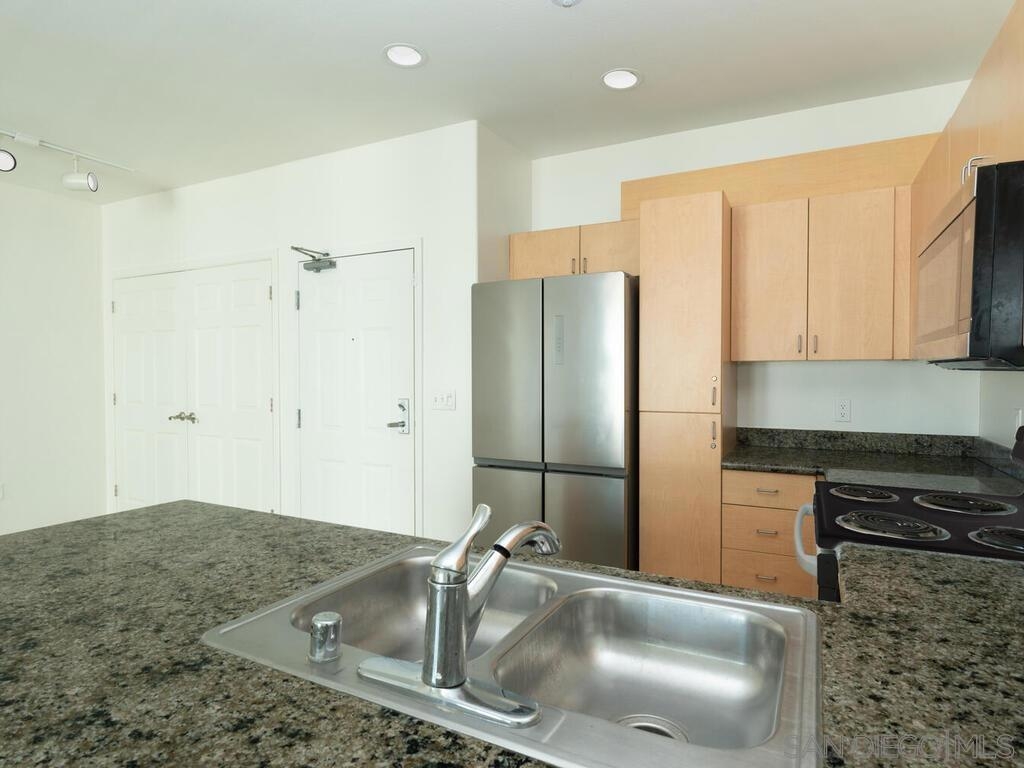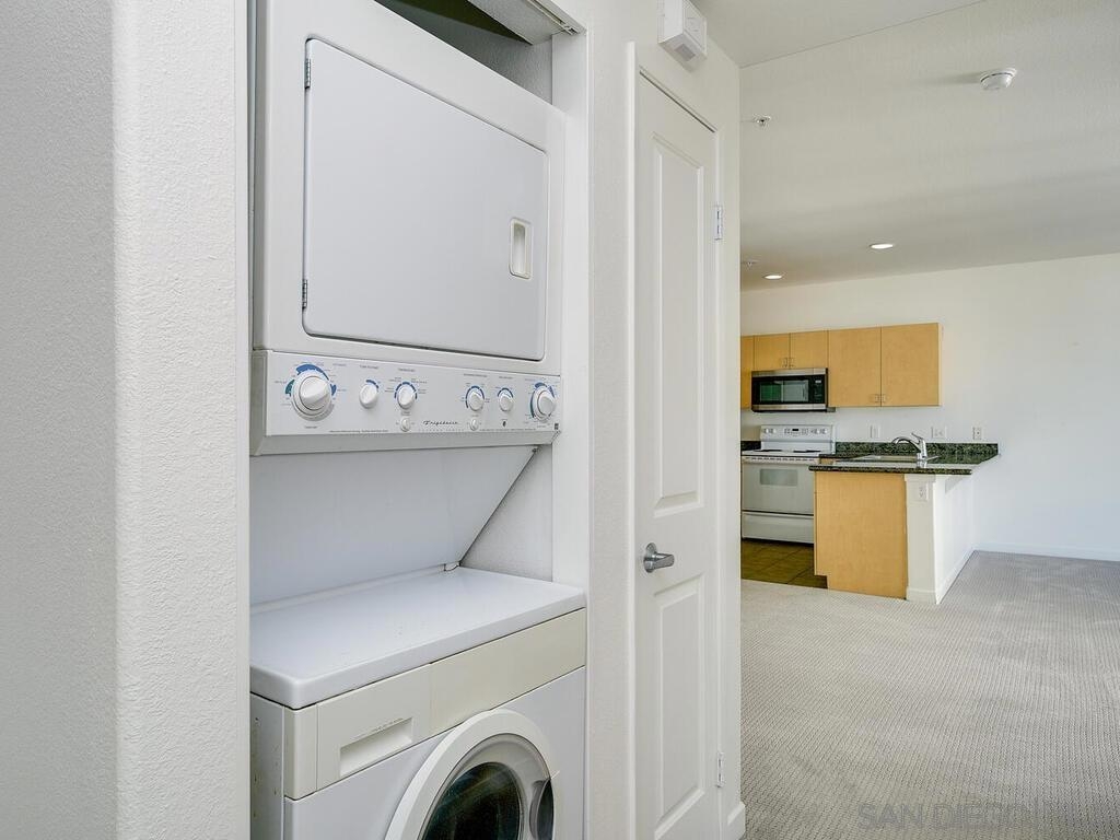 Super clean and move in ready 2BR/2BA condo in Little Italy's Piazza Palermo - contains granite counters, stainless appliances, in-unit laundry and two parking spaces. Floor to ceiling windows in the main living area make this west facing unit very light and bright. Palermo is conveniently located with easy access into and out of the downtown area, and is walking distance to all Little Italy has to offer including the farmer's market,shopping, dining and only 8 blocks from the downtown Waterfront Park. The HOA has just completed major renovations on the pool/spa deck to include a new kitchen area and BBQ's, creating a new outdoor experience for their residents. HOA also includes a fitness center, billiards room and rec room accessible via the pool area.