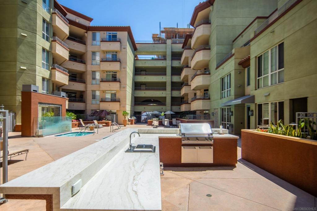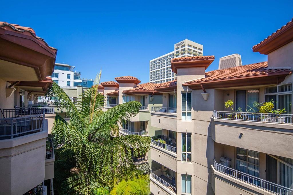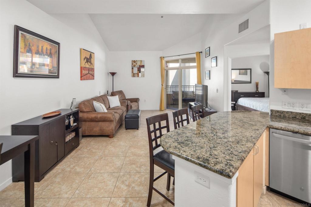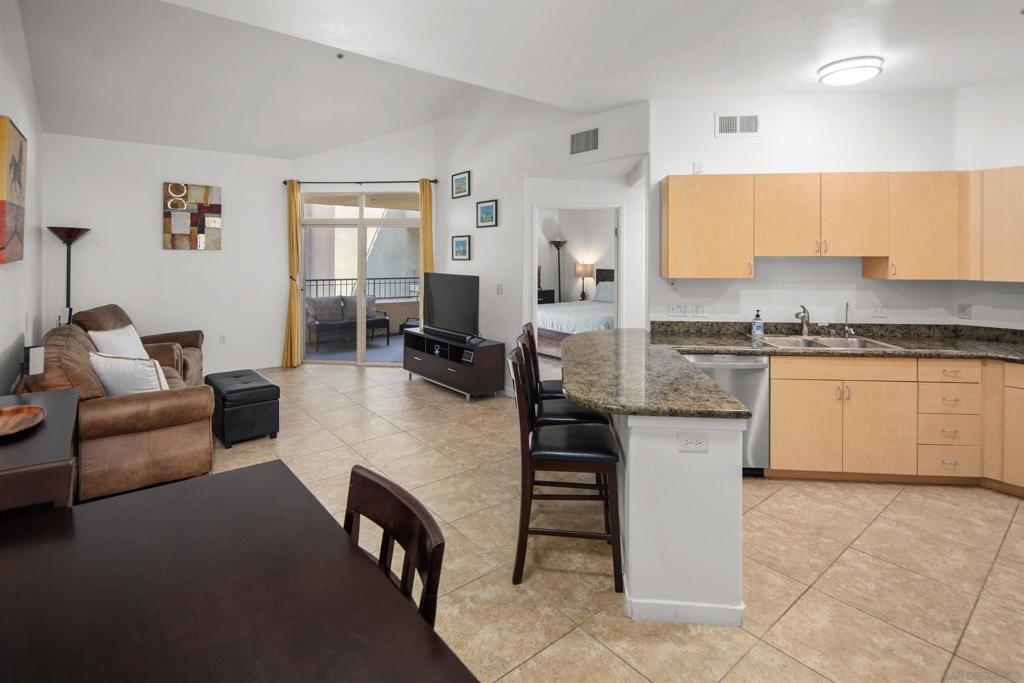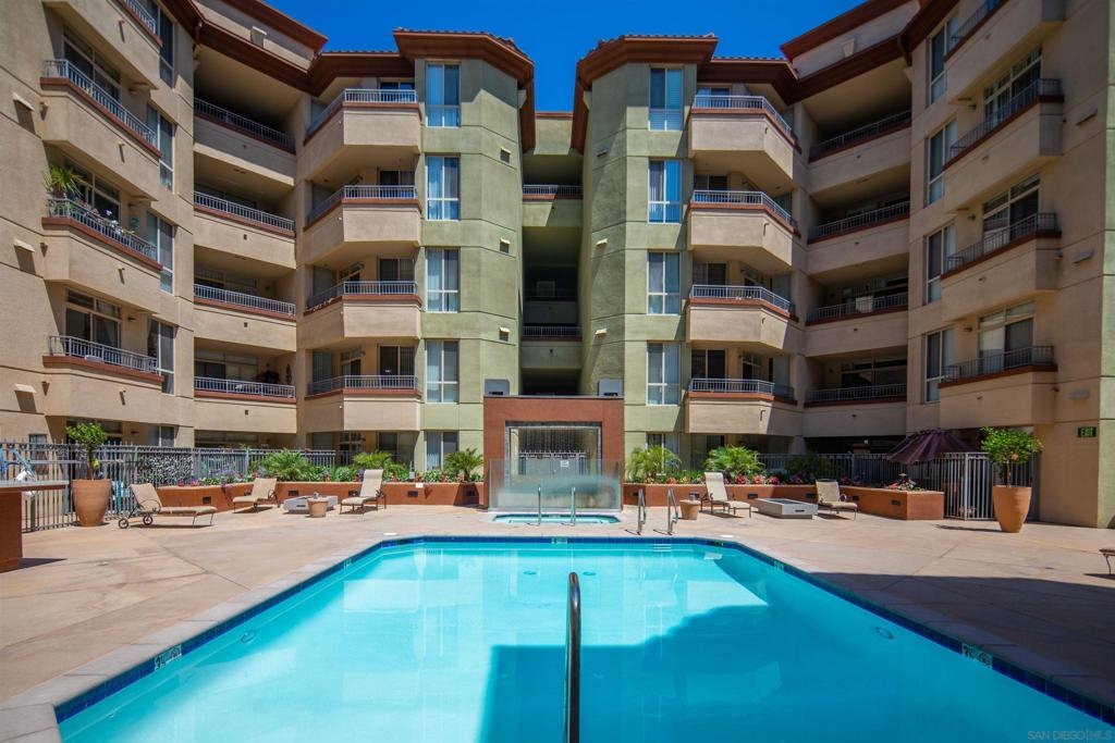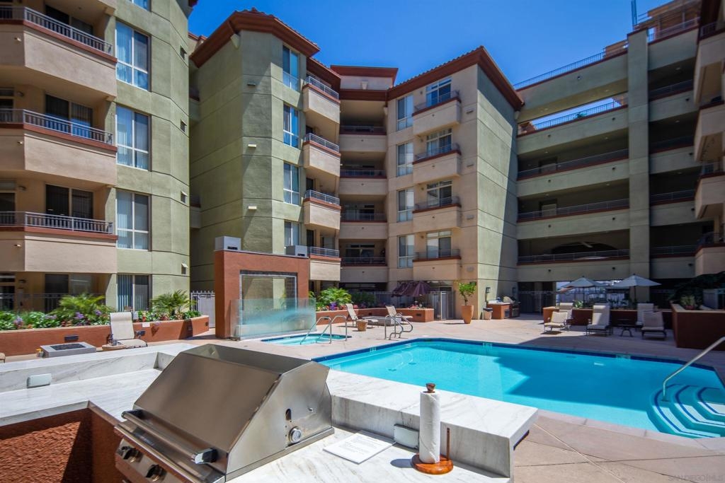 **Top Floor with Vaulted Ceilings!** Located at 1501 Front Street, Palermo is just steps from San Diego’s vibrant Little Italy and offers an unbeatable urban lifestyle. This top-floor, one-bedroom residence features vaulted ceilings, stylish tile flooring throughout, and a spacious, open layout that’s perfect for modern living. With low HOA dues, secure underground parking, and access to amenities like a swimming pool, spa, fitness center, and updated BBQ area, Palermo combines comfort and convenience. Plus, you'll be just a stone's throw away from Little Italy's trendy cafes, gourmet restaurants, and lively nightlife, making it the ideal spot for city living. Located at the edge of Downtown San Diego's lively Little Italy, Palermo blends urban charm with peaceful retreats. Imagine waking up to the buzz of Little Italy, where the aroma of fresh espresso and homemade pasta fills the air. Just steps away, you can relax at Waterfront Park or explore the vast Balboa Park. Palermo is more than just a place to live—it's a vibrant lifestyle. Built in 2004, this six-story building offers 230 residences designed for city living with comfort. Enjoy the swimming pool, unwind in the spa, or stay active in the fitness center. The conference and entertainment rooms are perfect for work or social gatherings. This top-floor, one-bedroom, one-bathroom residence features vaulted ceilings up to 14 feet and has been remodeled with stylish tile flooring throughout. The spacious kitchen and open floor plan are ideal for entertaining or enjoying your space.