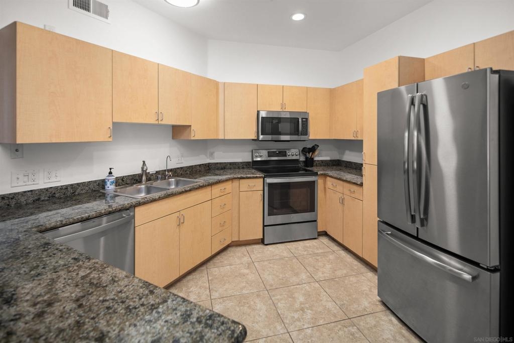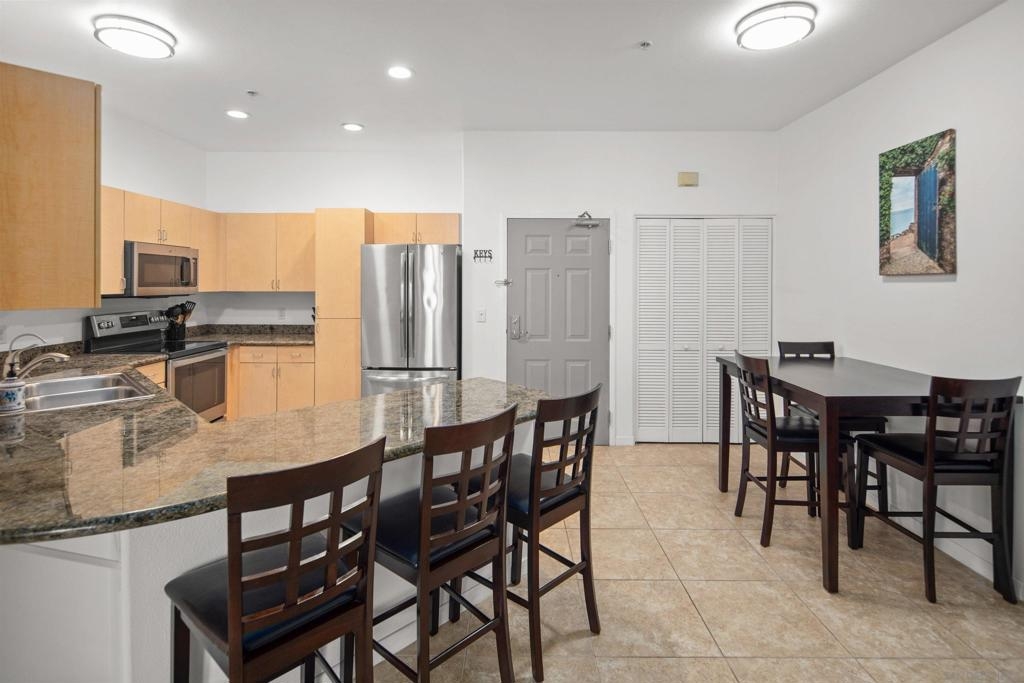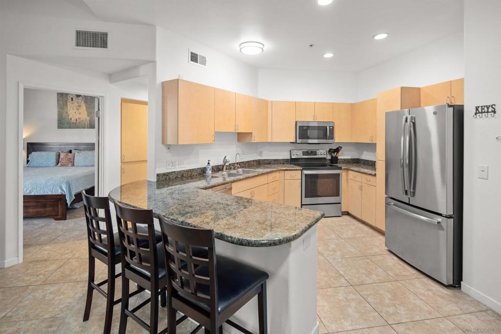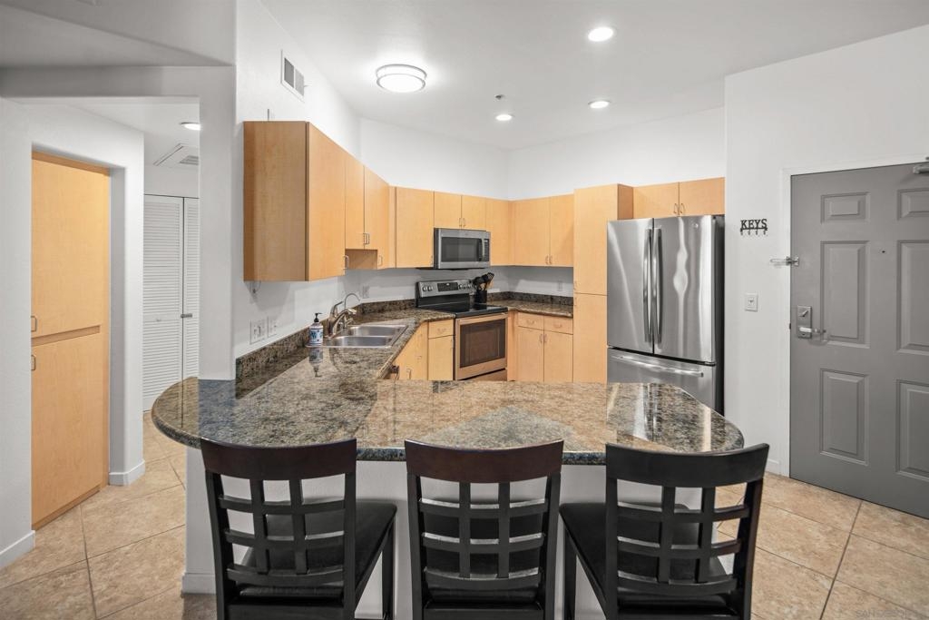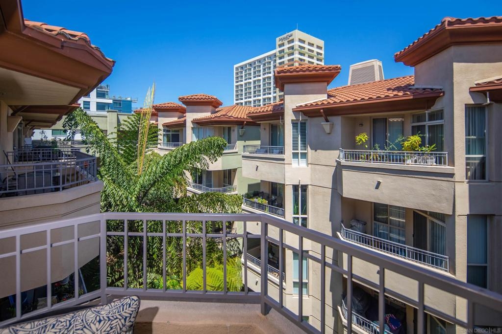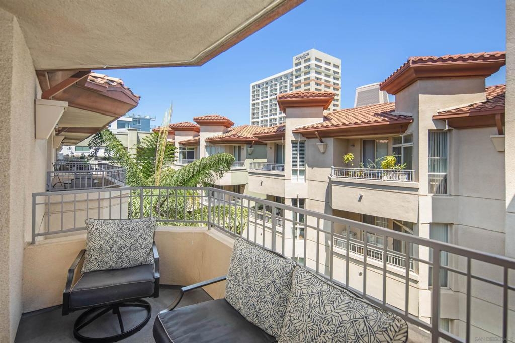 **Top Floor with Vaulted Ceilings!** Located at 1501 Front Street, Palermo is just steps from San Diego’s vibrant Little Italy and offers an unbeatable urban lifestyle. This top-floor, one-bedroom residence features vaulted ceilings, stylish tile flooring throughout, and a spacious, open layout that’s perfect for modern living. With low HOA dues, secure underground parking, and access to amenities like a swimming pool, spa, fitness center, and updated BBQ area, Palermo combines comfort and convenience. Plus, you'll be just a stone's throw away from Little Italy's trendy cafes, gourmet restaurants, and lively nightlife, making it the ideal spot for city living. Located at the edge of Downtown San Diego's lively Little Italy, Palermo blends urban charm with peaceful retreats. Imagine waking up to the buzz of Little Italy, where the aroma of fresh espresso and homemade pasta fills the air. Just steps away, you can relax at Waterfront Park or explore the vast Balboa Park. Palermo is more than just a place to live—it's a vibrant lifestyle. Built in 2004, this six-story building offers 230 residences designed for city living with comfort. Enjoy the swimming pool, unwind in the spa, or stay active in the fitness center. The conference and entertainment rooms are perfect for work or social gatherings. This top-floor, one-bedroom, one-bathroom residence features vaulted ceilings up to 14 feet and has been remodeled with stylish tile flooring throughout. The spacious kitchen and open floor plan are ideal for entertaining or enjoying your space.