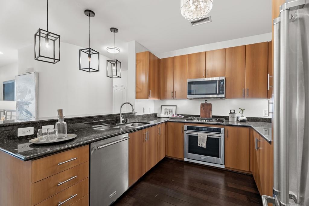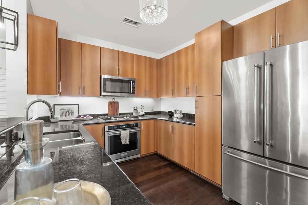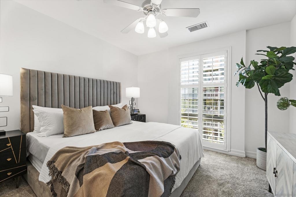 Huge price improvement and interest rates dropping! Snap this one up RIGHT NOW! The perfect East Village retreat! This fantastic 4th floor condo at Park Boulevard faces West and has a spacious layout with the bedrooms located on either side of the living room. It's just perfect for any living arrangement! Granite counters, stainless Kitchen Aid appliances, and bountiful cabinet space finish off the Kitchen. The generous living space provides for a dedicated dining area and a delightful balcony extends your living room to the outdoors. Plantation shutters dress up the double paned bedroom windows and custom window coverings accent the living room slider. Gorgeous enginereed hardwood gives a rich feel to the great room while the modern pendant lighting ties it all together. Full sized laundry, and walk in closets make living here even more enticing. TWO car parking in the garage (tandem) is included. Walking distance to so many downtown attractions and just steps to the trolley line to zip you just about anywhere in SD county with ease. Truly an urban residence with tons of convenience!