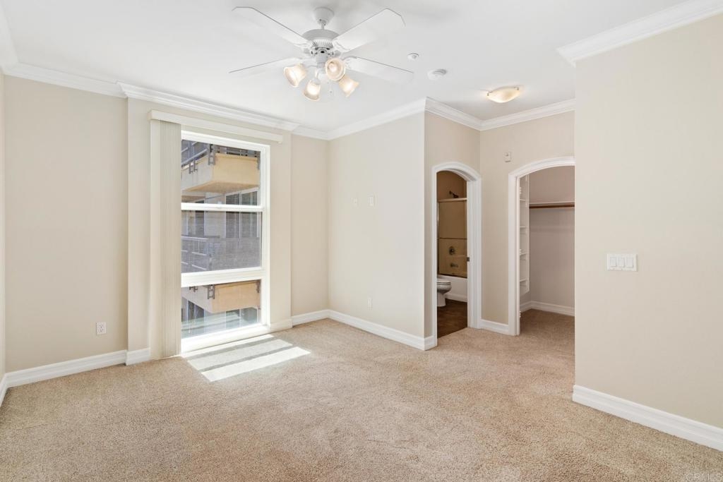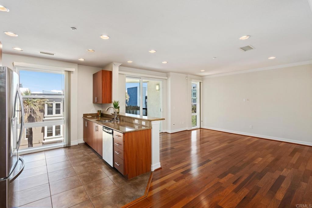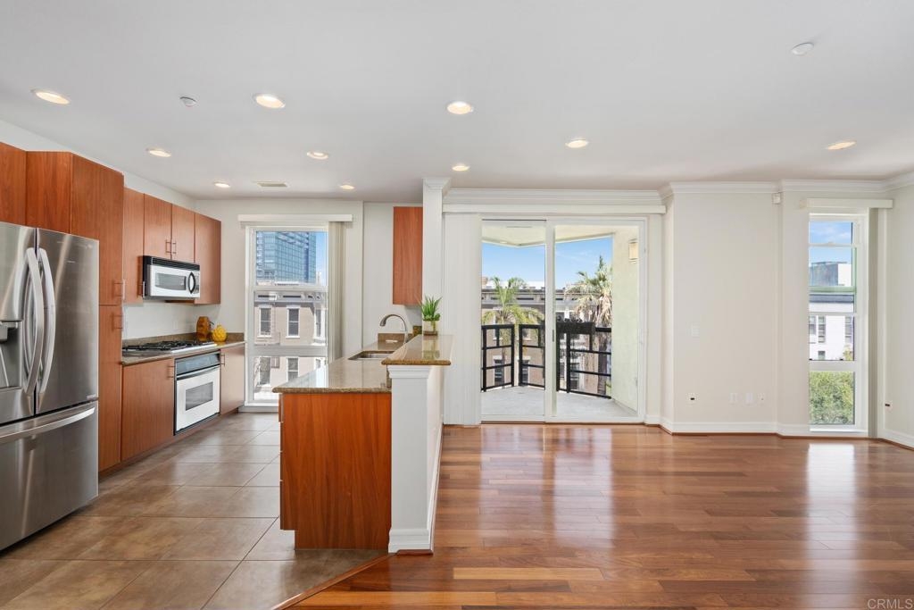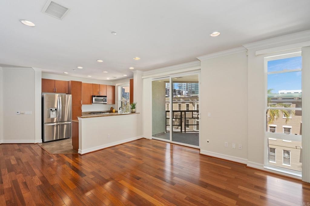 Welcome to urban living at its finest! This spacious 2 bedroom, 2 bathroom unit in Park Boulevard East offers all the conveniences of city living with plenty of space and comfortable features at home. The open concept living/dining area is flooded with natural light, has beautiful hardwood floors, custom canned lighting installed at new construction, and opens directly to a private balcony with city views. The fully equipped kitchen is a great space for entertaining, offering a gas stove, breakfast bar, and plenty of counter space and storage. The spacious primary suite includes a walk-in closet and private full bath. The second bedroom is separate from the primary suite area adding to the comfort and versatility of this unit. With in-unit laundry and a rare extra large private storage room, you don't want to miss this opportunity! A fresh coat of paint and a deep cleaning have just been completed and this unit is ready for a new owner. Endless dining and entertainment opportunities are just outside including one of the most sought after new restaurants in San Diego, Callie, just across the street. You'll find that the association fees at Park Boulevard East are lower than other comparable downtown properties.
