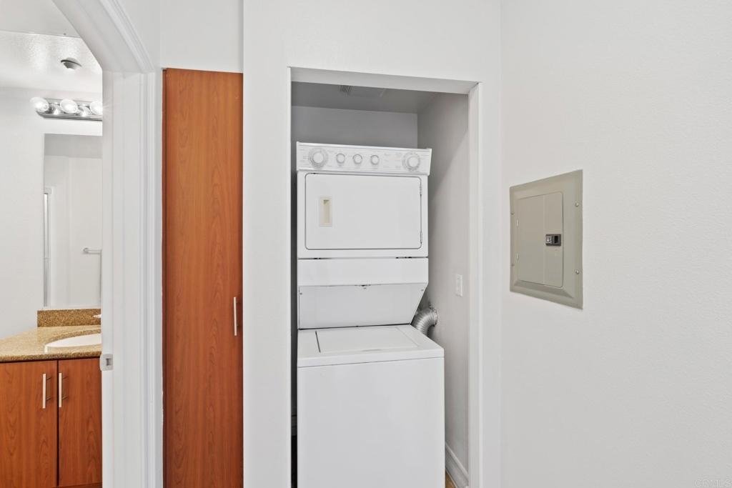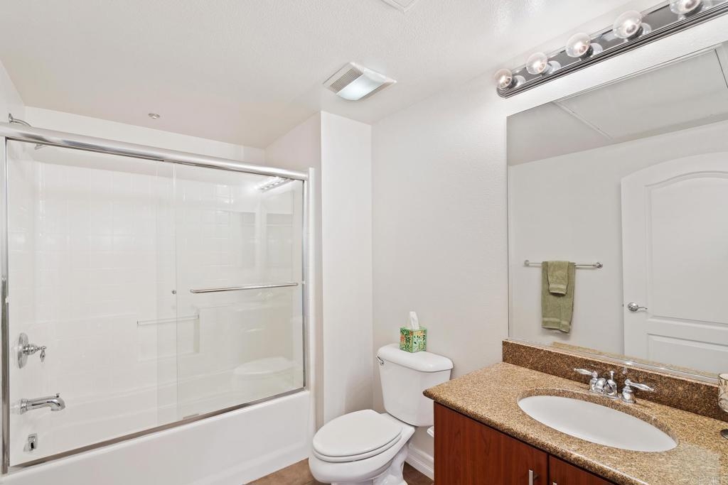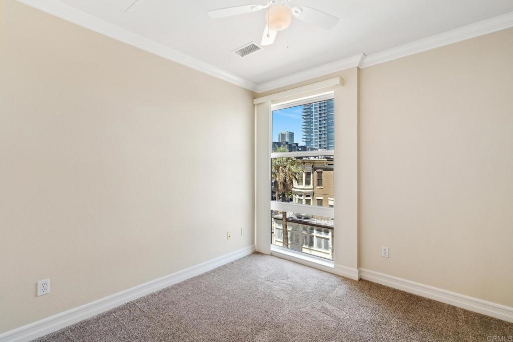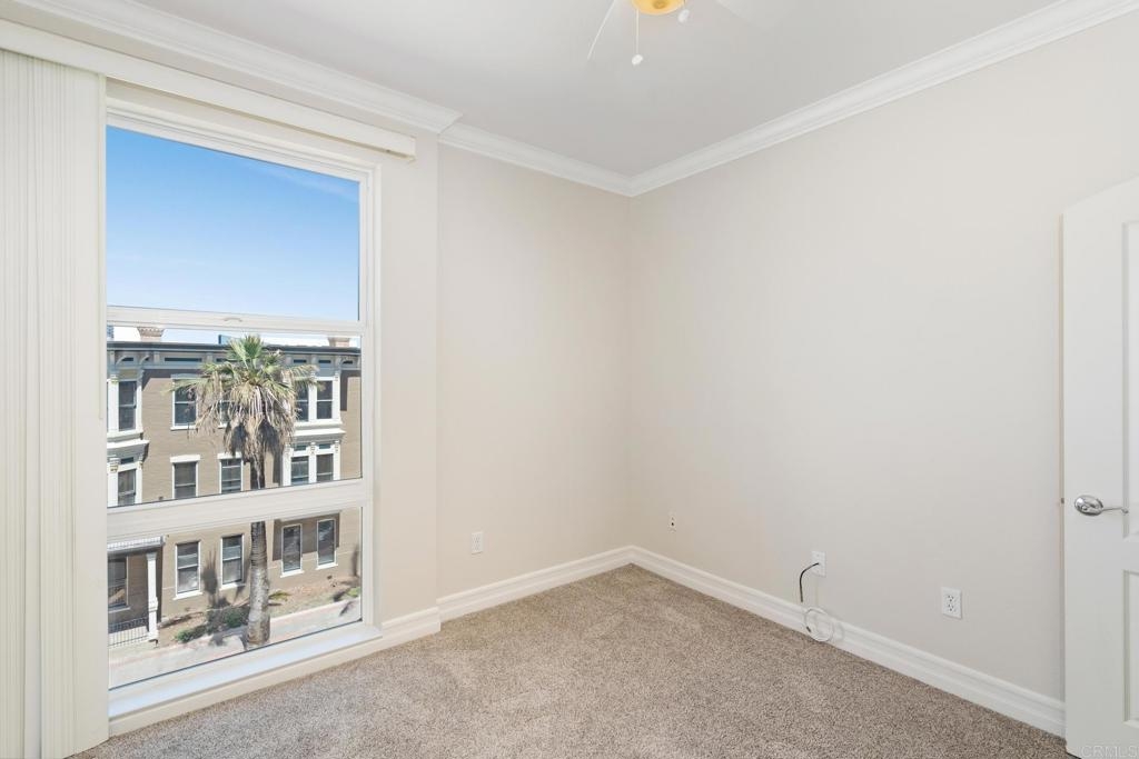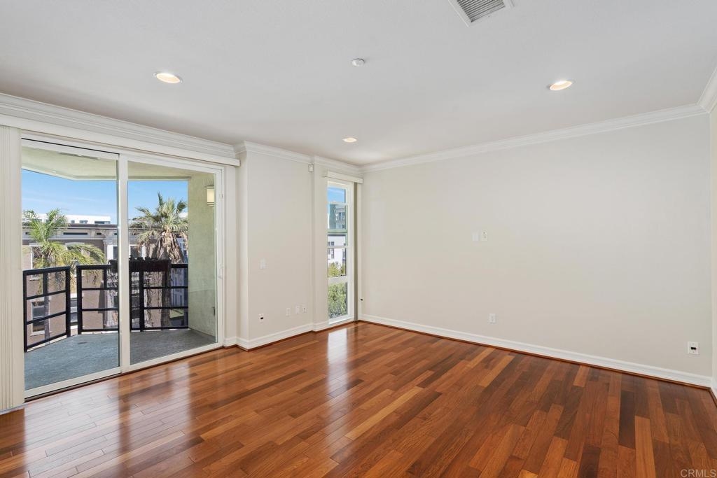 Welcome to urban living at its finest! This spacious 2 bedroom, 2 bathroom unit in Park Boulevard East offers all the conveniences of city living with plenty of space and comfortable features at home. The open concept living/dining area is flooded with natural light, has beautiful hardwood floors, custom canned lighting installed at new construction, and opens directly to a private balcony with city views. The fully equipped kitchen is a great space for entertaining, offering a gas stove, breakfast bar, and plenty of counter space and storage. The spacious primary suite includes a walk-in closet and private full bath. The second bedroom is separate from the primary suite area adding to the comfort and versatility of this unit. With in-unit laundry and a rare extra large private storage room, you don't want to miss this opportunity! A fresh coat of paint and a deep cleaning have just been completed and this unit is ready for a new owner. Endless dining and entertainment opportunities are just outside including one of the most sought after new restaurants in San Diego, Callie, just across the street. You'll find that the association fees at Park Boulevard East are lower than other comparable downtown properties.