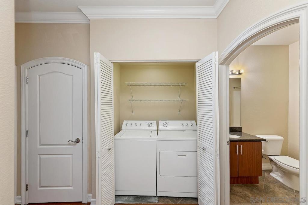 First time on the market since new development! This split bedroom, 2bd/2ba layout in the Park Blvd East building is HIGHLY sought after, both for it's central East Village location AND it's low HOA's, leading to great investment numbers. Park Blvd East is just 2 blocks from PetCo Park, and a short walk to the Gaslamp Quarter and San Diego Bayfront. Inside, this home has hardwood flooring in the living area, and new carpets in the bedrooms. The modern kitchen has stainless steel appliances and granite counters. In unit, full sized washer & dryer convey. 2 assigned parking spaces (tandem) and a storage cage down in the gated, underground parking garage. Complex Features: , Equipment: Dryer, Washer Sewer: Sewer Connected Topography: LL