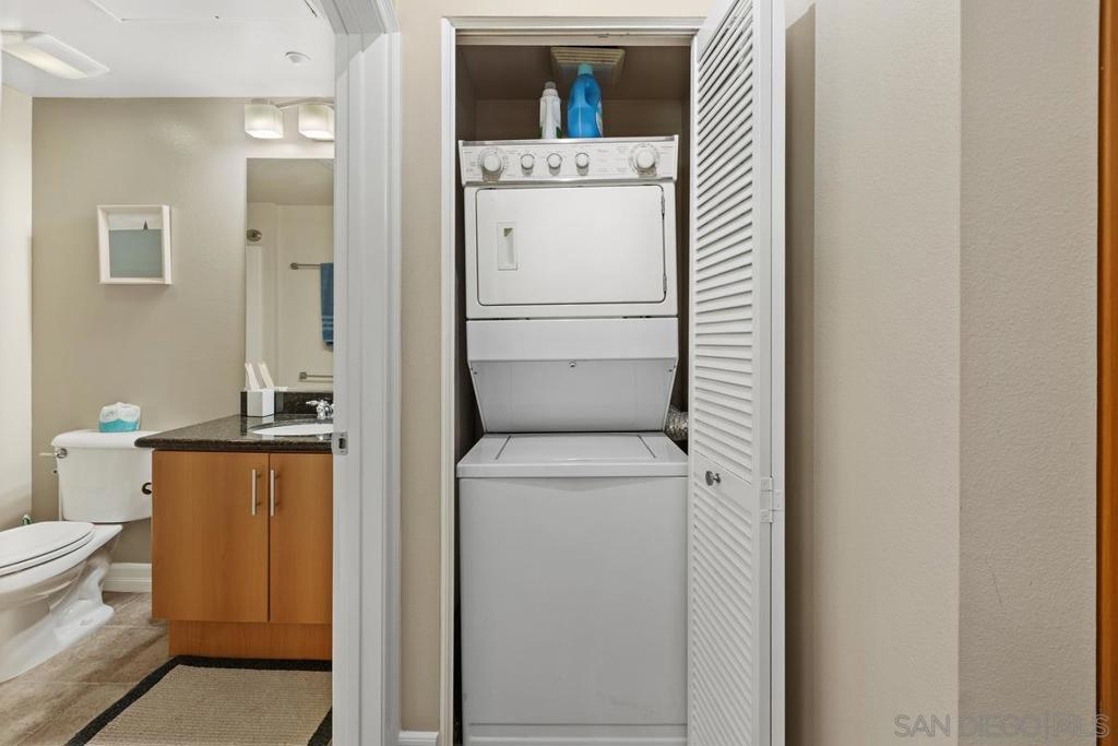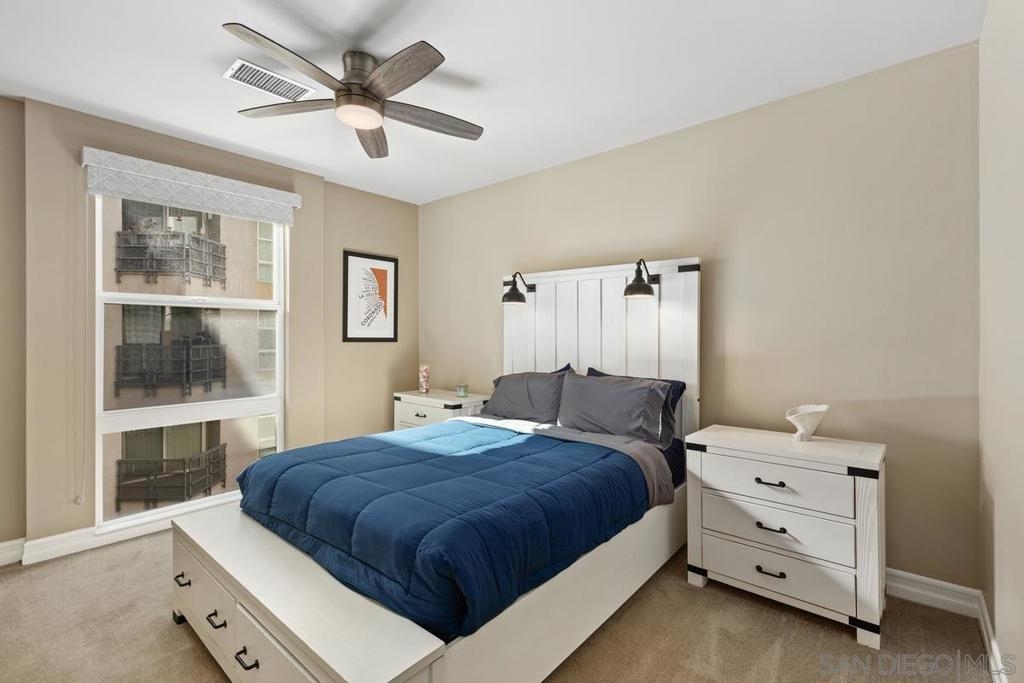 Unlock Downtown San Diego living with an unbeatable advantage...The option for an assumable loan with a 2.75% interest rate! That's right, a 2.75% interest rate! Buyer does not need to be VA. This isn't just a place to live; it's your personal launchpad into the heart of East Village and the dynamic Downtown scene. Imagine the roar of a Padres home run echoing through warm summer nights, the Gaslamp’s vibrant pulse just a stroll away, and the city's rhythmic thrum as your backing track. This 2-bedroom, 2-bath condo at Park Blvd East features a granite-counter kitchen with ample cabinets, durable and stylish LVP flooring throughout the main living areas, a cozy balcony perfect for morning coffee or evening relaxation, and a spacious master suite with a walk-in closet. Enjoy the perks of low HOA fees, freeing you to join places like Fit Athletic, just one block away, where a rooftop saltwater pool, rejuvenating saunas, steam rooms, and accessible group classes await – a perfect way to connect with your new neighbors. And the two assigned parking spots? Pure, unadulterated gold in the heart of downtown. Great in and out access with the Trolley on Park and Freeway entrances nearby!