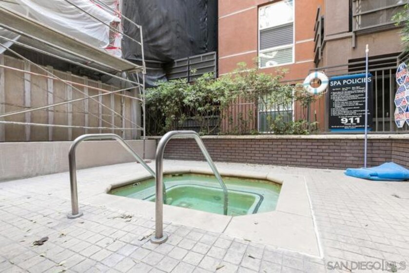 Back On the Market!! Spacious Unit has a private balcony, granite countertops with ample vanity/cabinet storage, stainless steel refrigerator, range, dishwasher, floor to ceiling pantry and a full sized washer and dryer in the unit. Bedrooms have floor to ceiling windows overlooking the spa, walk-in closets. Newly painted, new carpet in the bedrooms and new plank flooring throughout. Secure building with fob key entry, two parking spaces, additional storage space in the private underground garage. Across the street from the Jefferson Law School, Public Library, is steps away from the Park and Market trolley station, walking distance to Petco Park, great restaurants, Albertsons grocery store and the Gaslamp. Equipment: Dryer,Fire Sprinklers,Garage Door Opener, Washer Sewer: Sewer Connected Topography: LL
