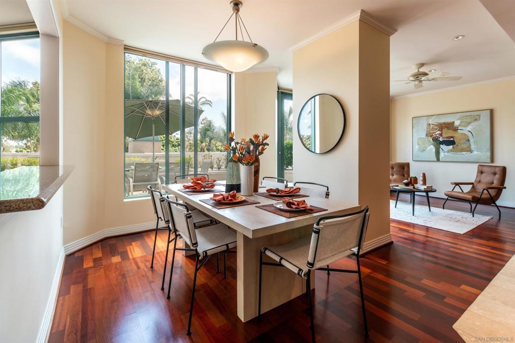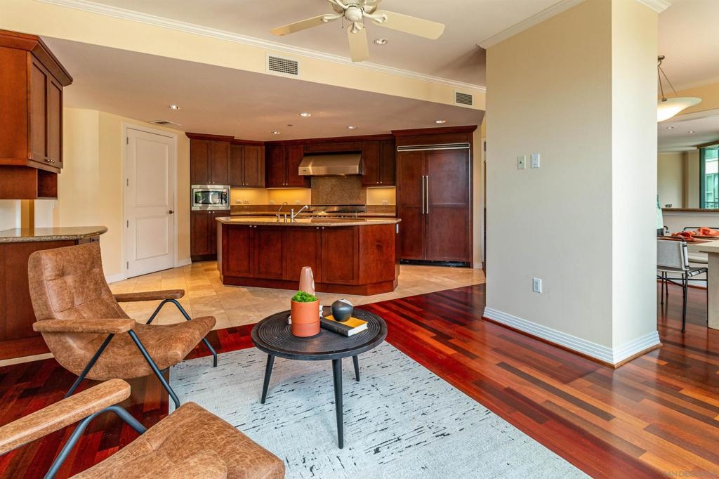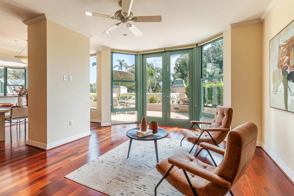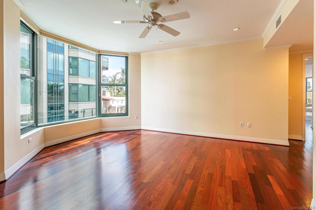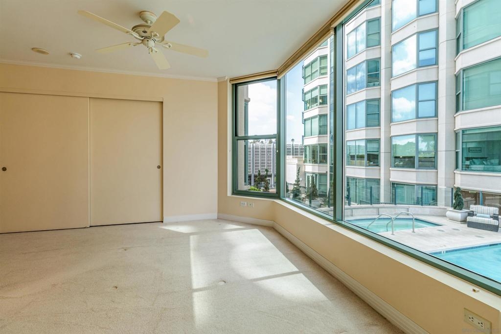 Welcome to exquisite Park Laurel. This wonderful unit is positioned in one of the most sought after banks in the building. Facing world renown Balboa Park it boast 3228 square feet of park front living and is one of a handful of units to boast an oversized patio/deck that extends your living space and ideal for large gatherings and entertaining. Unit also includes, side by side parking, a private storage room and is being sold by the original owners. Wood flooring has been discolored by the sun and is reflected in the asking price.