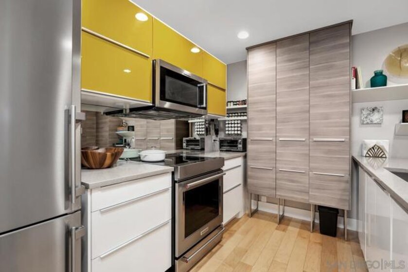 Located in the desirable Marina District, Park Row is a unique, low-rise complex with lush landscaping, resort-style heated pool/spa, clubhouse and guest parking! This recently upgraded, modern, west facing unit comes complete with high-end appliances including a Danby 160 bottle wine fridge, Bosch washer/dryer, Liebherr fridge, induction cook top, and Fisher-Paykel built-in dishwasher. Tons of built in modern cabinetry, fireplace in living room, plantation shutters throughout, hard surface flooring, custom closets, lighting, and paint. Huge patio for outdoor entertaining. Park Row is a Spanish style low rise complex featuring lush landscaping and soothing water fountains throughout the complex. Amenities include underground parking, a clubhouse, resort style heated pool and spa, and guest parking! With direct access to Pantoja Park, and walking distance to the Embarcadero, Seaport Village, Little Italy, and the Gaslamp, you are steps away from all that Downtown San Diego has to offer! Park Row is a perfect opportunity for those who do not seek "high rise" living, but want to enjoy the many benefits of an urban environment. Equipment: Dryer,Pool/Spa/Equipment, Washer Sewer: Sewer Connected