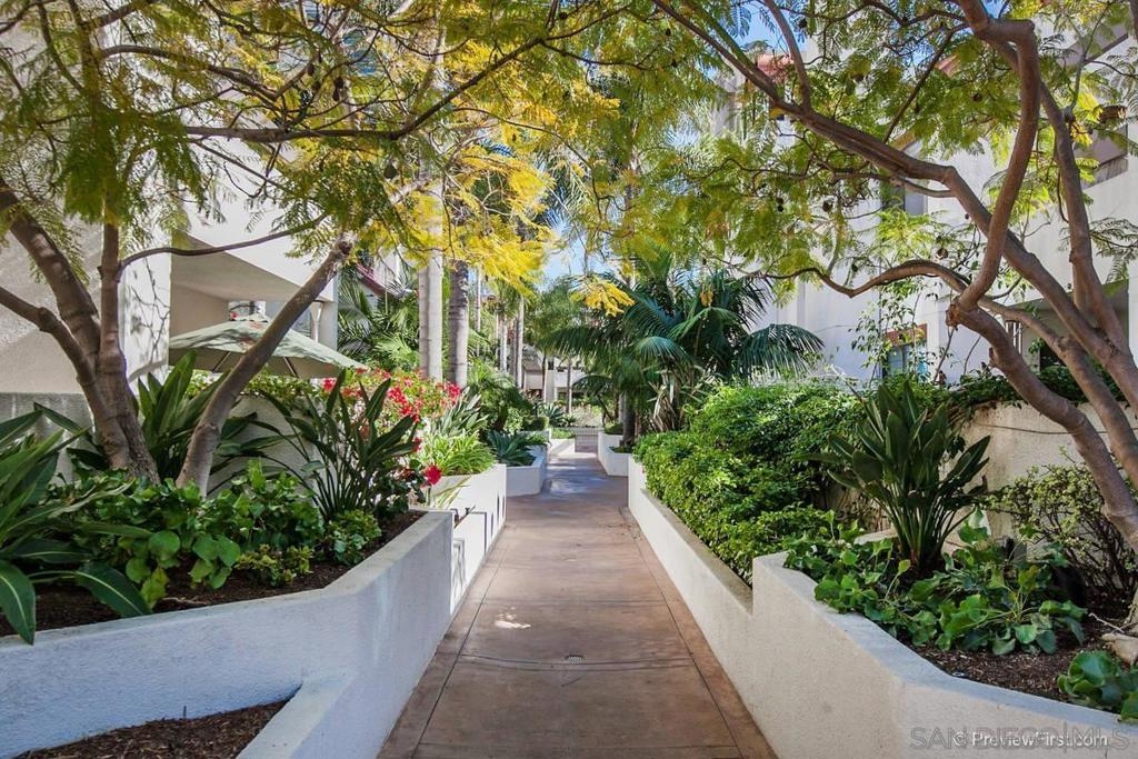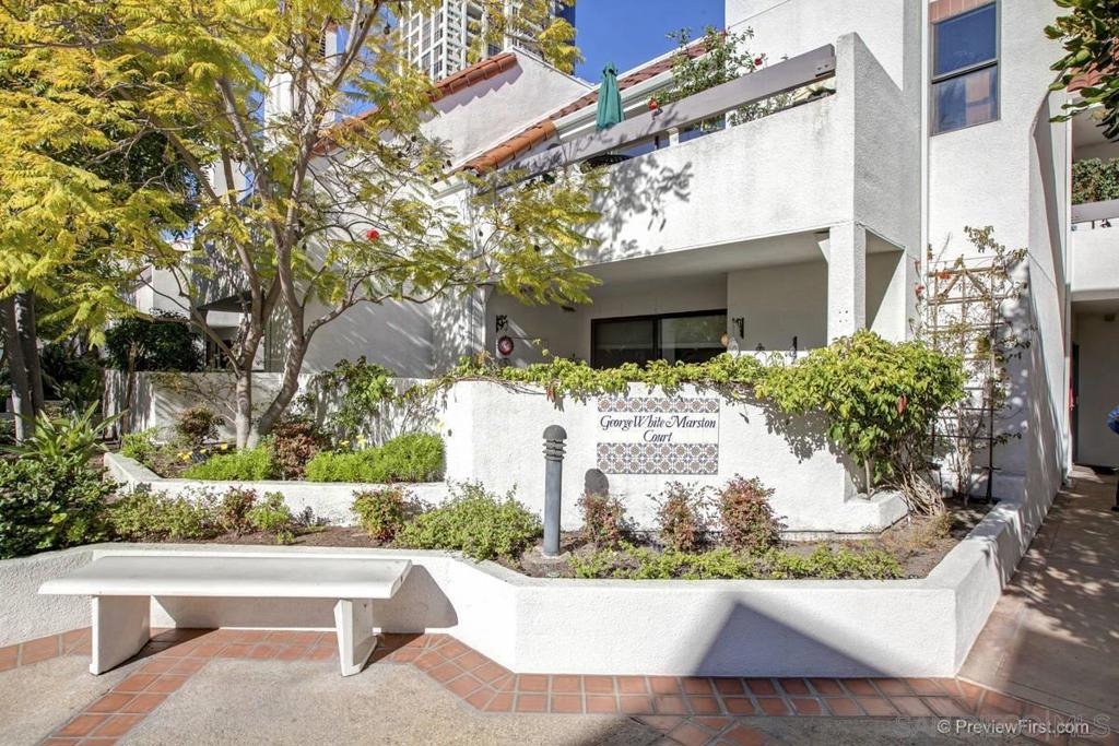 Cool breezes from nearby San Diego Bay await you in this wonderful west-facing two bedroom two bath ground floor unit in Downtown's garden oasis PARK ROW! Two exclusive use private patios. Updated and expanded kitchen with stainless appliances & generous storage. New master bathroom & recently remodeled guest bathroom. New HVAC system in 2019. New water heater & fresh paint in 2021. Front patio has ample room for patio furniture and potted plants, has a storage closet, and has sunset views & architectural views of the iconic Pacific Gate & Elektra buildings. Rear patio is the perfect al fresco coffee spot! Large stacking front load laundry included! PARKING BONUS: Unit 119 is one of only 4 units in Park Row that has free tandem parking for 2 cars! Ask agent for details. This property is reachable with ZERO STEPS from the parking lot gate to the unit's front door.++++++++++++ Located in the quiet and upscale Marina District where it's a short hop in every direction to the Bay, Convention Center, Little Italy, Seaport Village, trolley & AMTRAK. Only ten minutes to San Diego Airport. +++++++++++++Park Row is a community of 222 units built on 3 city blocks totaling over 6 acres....this is stunningly low density when compared to nearly all other Downtown developments. The result is not only a generous apportionment of the grounds to gardens but unheard of space for the resort like pool, spa, clubhouse facility and guest parking. Stroll through the walkways of Park Row and enjoy the variety of trees and flowering plants...each courtyard has it's own unique garden & fountain style. +++++++++++++Park Row is adjacent to Pantoja Park on G Street. Residents enjoy direct security gate access to the complex from this beautiful park. Pantoja Park is also the perfect place to take your dog for a walk and meet the neighbors! All units in Park Row come with one assigned parking space in the underground lot. Residents can rent an additional parking space for $60/month from the HOA. Ask agent about parking rules. Generous guest parking in the outside lot adjacent to clubhouse. Each unit has a small storage cabinet in the garage. Bike cage and bike "vaults" are available for rent from the HOA at a nominal cost. Ten SDG&E car chargers can be found in the gated community garages. Equipment: Dryer, Washer Sewer: Sewer Connected Topography: LL