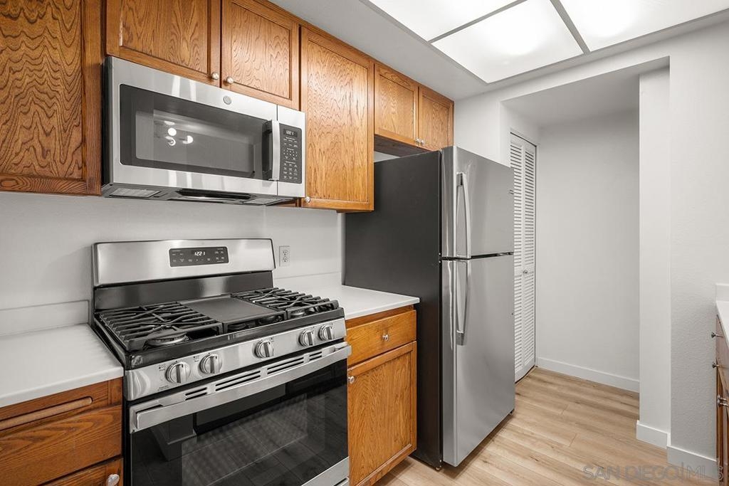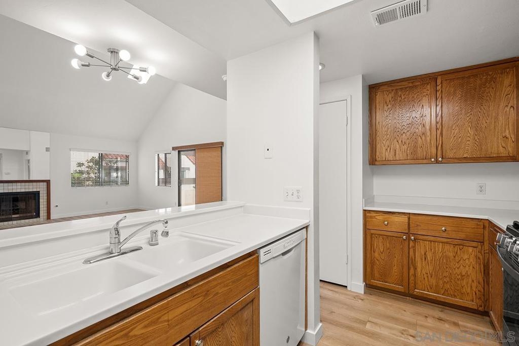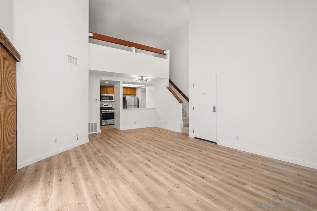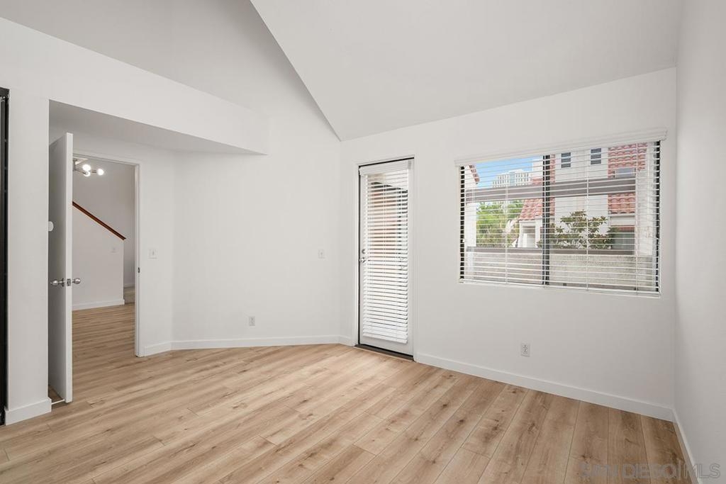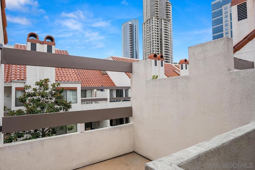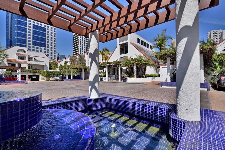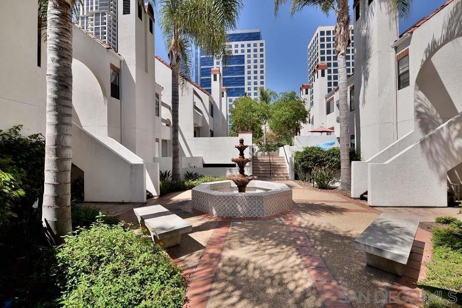 Marina District sanctuary! This recently upgraded upper-level townhome at the always popular Park Row community has it all for the discerning metropolitan dweller: vaulted ceilings, NEW luxury vinyl plank flooring, fireplace with tile surround, and a coveted loft perfect for a den or optional 2nd bedroom (plus the possibility to add a 2nd bathroom). Light and bright with plenty of windows and a spacious private patio. The kitchen will delight any home chef with new stainless range/oven and refrigerator, Corian countertops, ample cabinetry, and in-unit washer/dryer. Bedroom enjoys a large closet with mirrored doors, high ceilings, additional access to the balcony, and ensuite bathroom. Central air conditioning and heating, updated lighting fixtures, storage unit, and a secured parking space too! Enjoy tranquil urban living in a resort style atmosphere in the heart of Downtown San Diego - all for LOW HOA fees! Owner may carry with a large down payment. ALSO AVAILABLE FOR LEASE MLS#230021269 Park Row is perfect for those who do not seek high-rise living but wish to enjoy the urban lifestyle! Adjacent to Pantoja Park, you will delight in easy walkability to extensive shopping (The Headquarters, Seaport Village & the Gaslamp Quarter among others), the waterfront, and the many cultural attractions Downtown San Diego offers. This charming community features carefully landscaped grounds, a clubhouse, pool and spa. Plentiful visitor parking is wonderful benefit too! The HOA may also rents additional parking spaces, motorcycle parking spaces, storage, and bike storage (if available). Yes, the HOA also has an EV charging station. Welcome home!