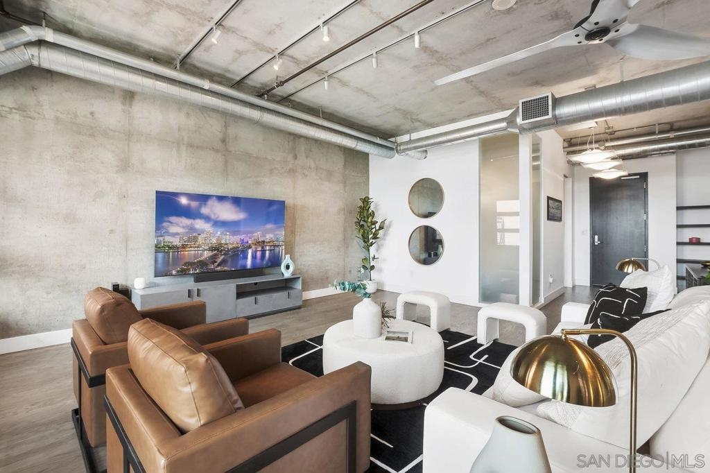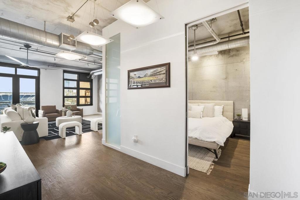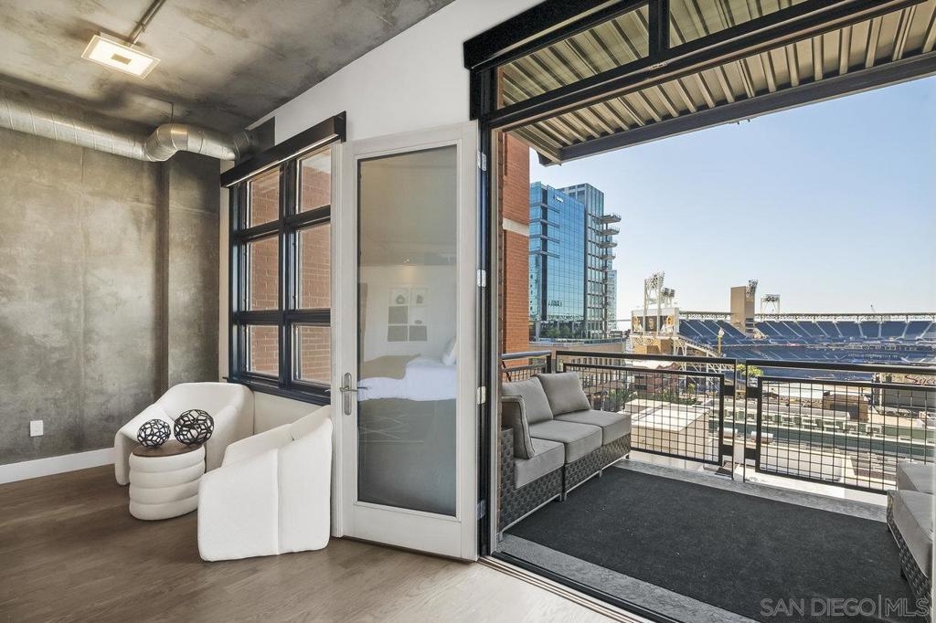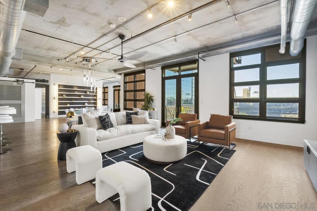 Just one block from Petco Park in the heart of East Village, this stunning 2-bedroom, 2.5-bath loft-style residence with unparalleled ballpark views offers 2,325 square feet of open-concept living with a rare blend of industrial style and modern luxury. With direct views into the ballpark from two private balconies, you can catch the action and feel the energy of the game right from your home. This unique loft features soaring ceilings, floor-to-ceiling windows, and one enclosed bedroom for added privacy. Two oversized walk-in closets provide ample storage, while two side-by-side parking spots and a separate storage locker add unmatched convenience. Parkloft offers premier amenities including 24-hour front desk service, on-site property manager, dedicated security, a modern fitness center, stylish communal gathering space, and impeccably maintained common areas. Live where the city pulses with excitement—steps from dining, nightlife, culture, and everything the downtown San Diego lifestyle has to offer. Don't miss this opportunity to own one of the most dynamic lofts in East Village.