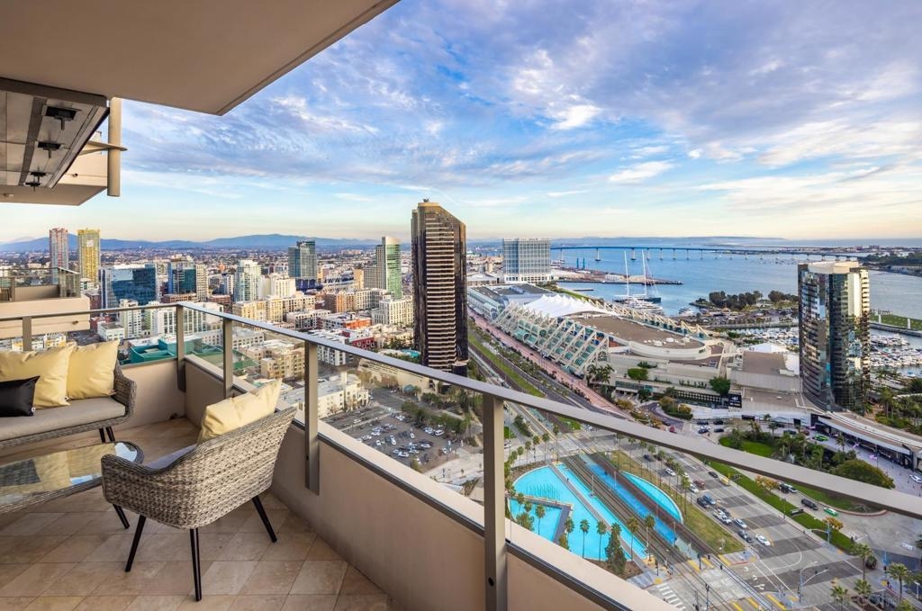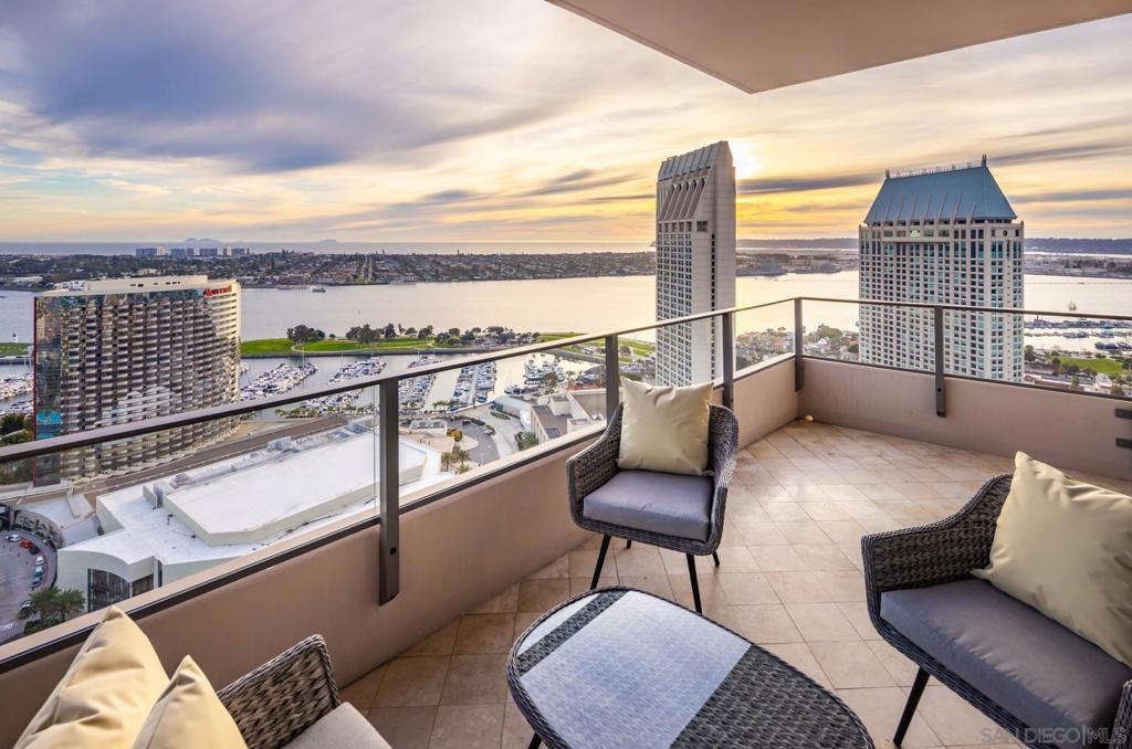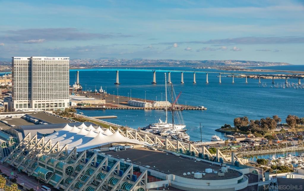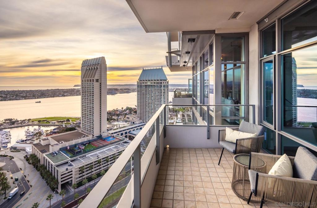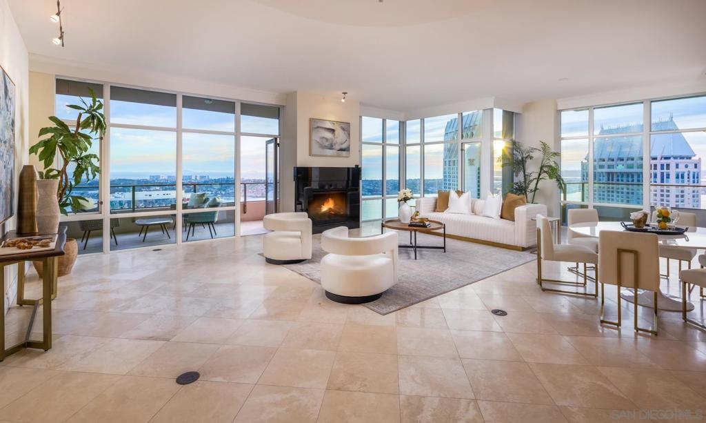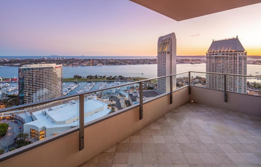 Significant Price Adjustment. Luxury Living at Its Finest at the Pinnacle in Downtown San Diego's Marina District. Welcome to this stunning 30th-floor unit nestled in the heart of the vibrant Marina District, offering an exceptional lifestyle and breathtaking panoramic views. This full-service concierge building ensures that every aspect of your living experience is nothing short of extraordinary. As you step inside this expansive residence spanning 4,335 square feet, you'll be immediately captivated by the floor-to-ceiling windows, which bathe every room in natural light and showcase the awe-inspiring 270-degree vistas. Prepare to be mesmerized by the picturesque Coronado Bridge, the glistening Pacific Ocean, the tranquil San Diego bay, stunning sunsets, and even glimpses of the airport in the distance. With 3 bedrooms, a library, and an office, this home offers a thoughtful floor plan designed to cater to your every need. The generously proportioned bedrooms provide ample space for relaxation, while the library and office present the perfect setting for work or quiet contemplation. There are 4.5 bathrooms to help you indulge in the ultimate luxury. The primary bathroom offers separate his and her bathrooms and closets allowing you to unwind and rejuvenate after a long day. Entertain and embrace the San Diego lifestyle on the 6 terraces, where you can bask in the coastal breeze and enjoy unparalleled views of the cityscape. From hosting unforgettable gatherings to savoring quiet moments of solitude, these outdoor spaces provide the perfect backdrop for every occasion. The unit's 10-foot ceilings create an open and airy ambiance, accentuating the sense of grandeur and sophistication. The sleek, contemporary design is complemented by premium finishes and high-end appliances, ensuring a seamless blend of style and functionality. For the car collectors, this unit comes with 4 parking spaces, all side by side in a premium location in the garage. In addition to the unit's luxurious features, residents of this esteemed building have exclusive access to an array of amenities, including a full-service concierge, providing convenience and peace of mind. Whether you desire a relaxing day by the pool, a rigorous workout in the state-of-the-art fitness center, or a social gathering in the elegant common areas, this building caters to your every whim. Located in the highly coveted Marina District, you'll find yourself in the midst of a thriving urban neighborhood, brimming with top-notch dining, entertainment, and cultural attractions. Enjoy easy access to the iconic Gaslamp Quarter, Seaport Village, Little Italy and the waterfront, where endless adventures await. Don't miss this extraordinary opportunity to own a piece of paradise in one of San Diego's most sought-after locations. Embrace a lifestyle of luxury, convenience, and unforgettable views.