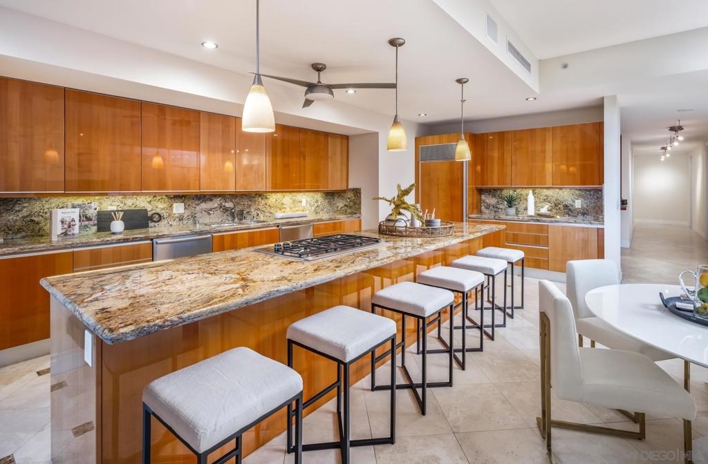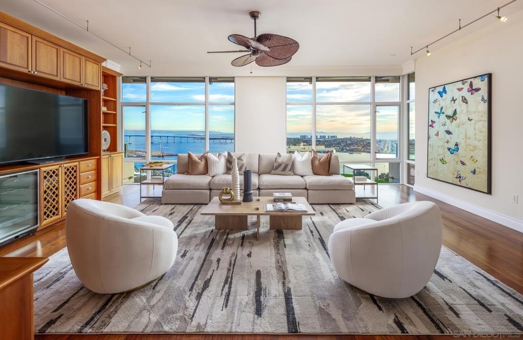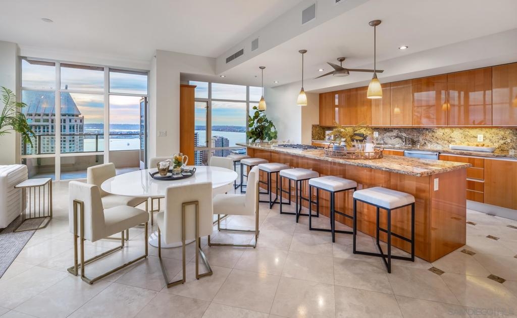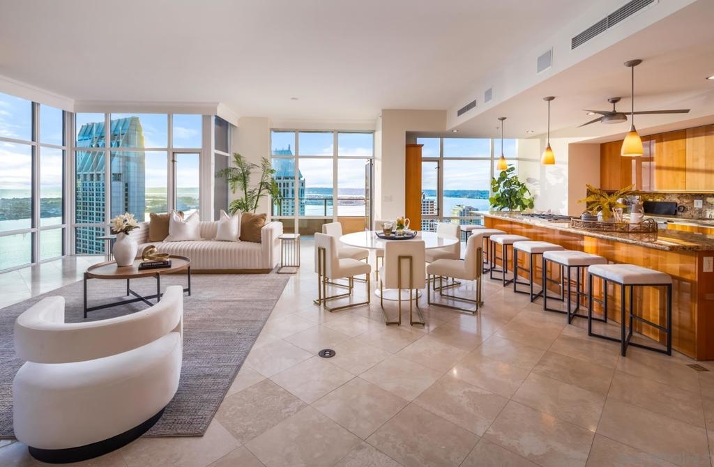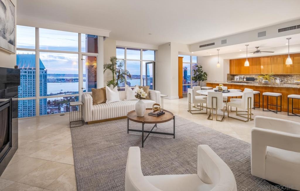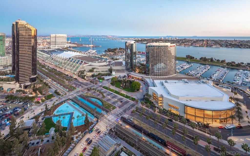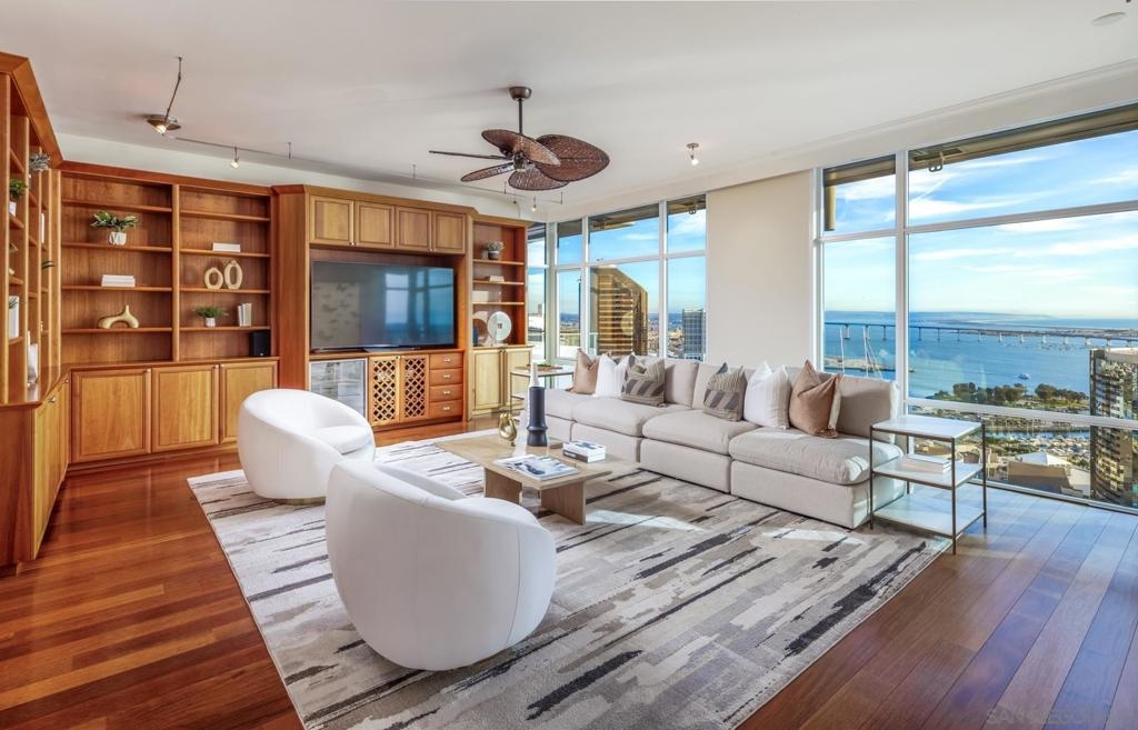Significant Price Adjustment. Luxury Living at Its Finest at the Pinnacle in Downtown San Diego's Marina District. Welcome to this stunning 30th-floor unit nestled in the heart of the vibrant Marina District, offering an exceptional lifestyle and breathtaking panoramic views. This full-service concierge building ensures that every aspect of your living experience is nothing short of extraordinary. As you step inside this expansive residence spanning 4,335 square feet, you'll be immediately captivated by the floor-to-ceiling windows, which bathe every room in natural light and showcase the awe-inspiring 270-degree vistas. Prepare to be mesmerized by the picturesque Coronado Bridge, the glistening Pacific Ocean, the tranquil San Diego bay, stunning sunsets, and even glimpses of the airport in the distance. With 3 bedrooms, a library, and an office, this home offers a thoughtful floor plan designed to cater to your every need. The generously proportioned bedrooms provide ample space for relaxation, while the library and office present the perfect setting for work or quiet contemplation. There are 4.5 bathrooms to help you indulge in the ultimate luxury. The primary bathroom offers separate his and her bathrooms and closets allowing you to unwind and rejuvenate after a long day. Entertain and embrace the San Diego lifestyle on the 6 terraces, where you can bask in the coastal breeze and enjoy unparalleled views of the cityscape. From hosting unforgettable gatherings to savoring quiet moments of solitude, these outdoor spaces provide the perfect backdrop for every occasion. The unit's 10-foot ceilings create an open and airy ambiance, accentuating the sense of grandeur and sophistication. The sleek, contemporary design is complemented by premium finishes and high-end appliances, ensuring a seamless blend of style and functionality. For the car collectors, this unit comes with 4 parking spaces, all side by side in a premium location in the garage. In addition to the unit's luxurious features, residents of this esteemed building have exclusive access to an array of amenities, including a full-service concierge, providing convenience and peace of mind. Whether you desire a relaxing day by the pool, a rigorous workout in the state-of-the-art fitness center, or a social gathering in the elegant common areas, this building caters to your every whim. Located in the highly coveted Marina District, you'll find yourself in the midst of a thriving urban neighborhood, brimming with top-notch dining, entertainment, and cultural attractions. Enjoy easy access to the iconic Gaslamp Quarter, Seaport Village, Little Italy and the waterfront, where endless adventures await. Don't miss this extraordinary opportunity to own a piece of paradise in one of San Diego's most sought-after locations. Embrace a lifestyle of luxury, convenience, and unforgettable views.