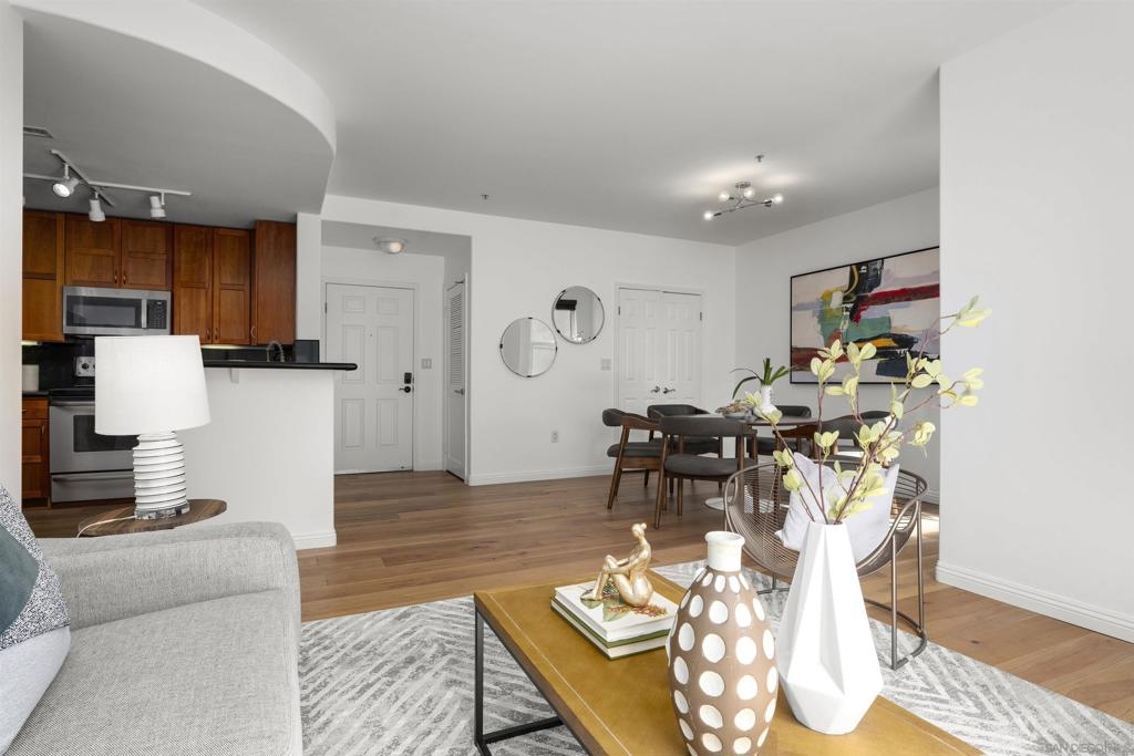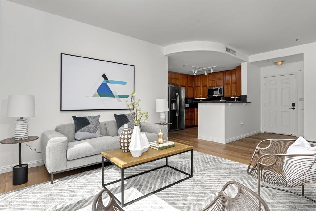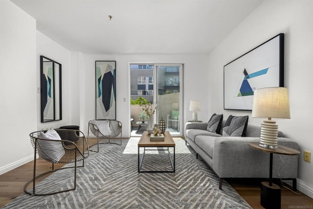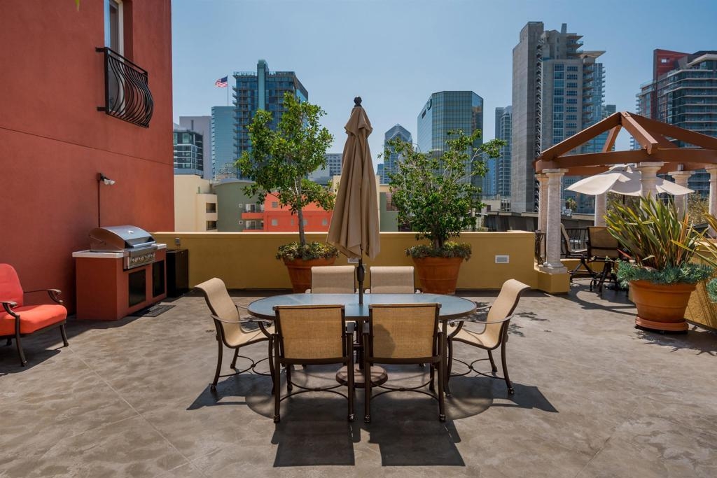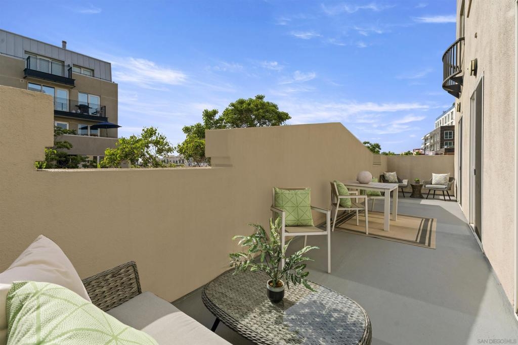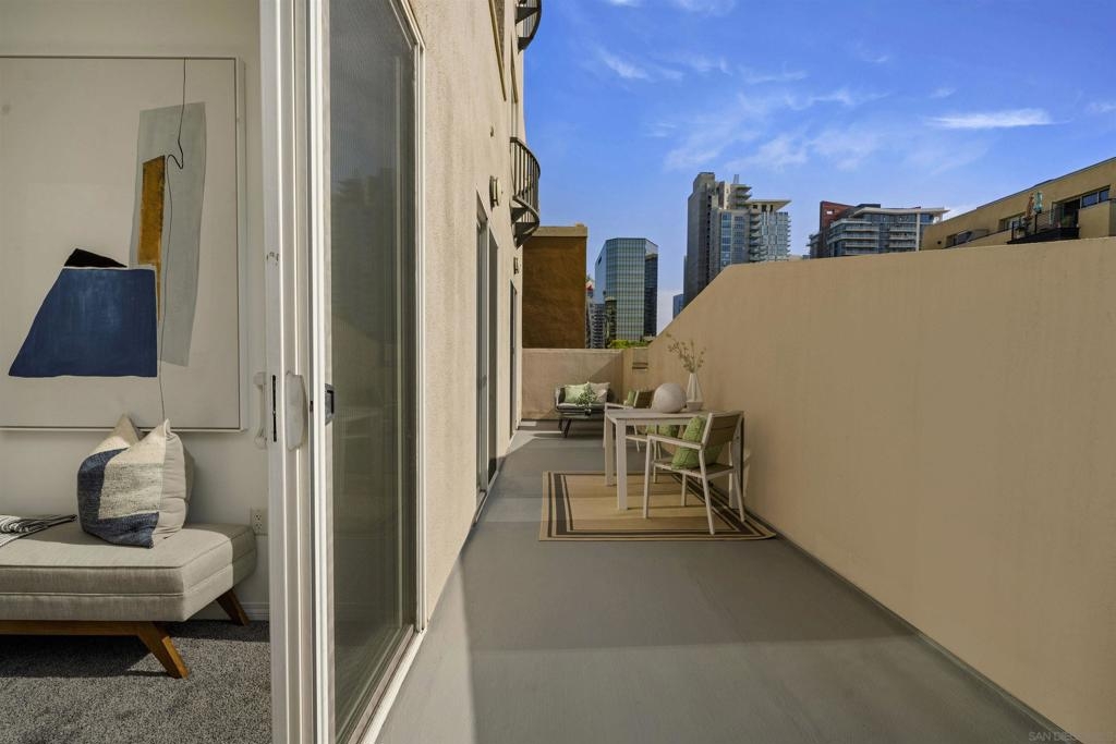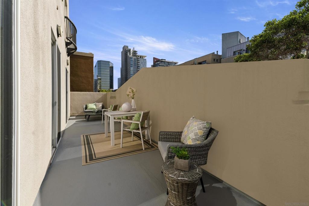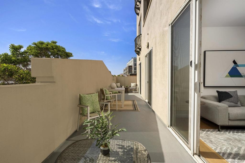 Exceptional Little Italy Condo with extraordinary, private outdoor terrace. Welcome to Porto Siena, a premier residential address in the heart of San Diego’s most vibrant neighborhood—Little Italy. This spacious 2-bedroom, 2-bath condo offers a rare and highly coveted feature: a large private terrace that spans the length of the unit, creating seamless indoor-outdoor living. Accessible from the living room and both bedrooms, this oversized terrace offers sweeping views of the iconic tree-lined streets below, where the neighborhood’s renowned dining scene comes to life with café tables, umbrellas, and lively energy. Inside, this home is pristine and well maintained, with a layout that maximizes light, space, and flow. Whether you’re hosting guests or enjoying a quiet moment high above the bustling street, the terrace serves as an elegant extension of the living space—ideal for morning coffee, evening wine, or al fresco dining. Additional highlights include 2 single-stall parking spaces for your convenience. From your front door, enjoy immediate walkability to Little Italy’s acclaimed restaurants, cafés, shops, Seaport Village, the scenic downtown waterfront and the Rady Symphony Shell at Jacob's Park, a premier open-air concert venue known for its state-of-the-art design and stunning views. Exceptional Little Italy Condo with extraordinary, private outdoor terrace. Welcome to Porto Siena, a premier residential address in the heart of San Diego’s most vibrant neighborhood—Little Italy. This spacious 2-bedroom, 2-bath condo offers a rare and highly coveted feature: a large private terrace that spans the length of the unit, creating seamless indoor-outdoor living. Accessible from the living room and both bedrooms, this oversized terrace offers sweeping views of the iconic tree-lined streets below, where the neighborhood’s renowned dining scene comes to life with café tables, umbrellas, and lively energy. Inside, this home is pristine and well maintained, with a layout that maximizes light, space, and flow. Whether you’re hosting guests or enjoying a quiet moment high above the bustling street, the terrace serves as an elegant extension of the living space—ideal for morning coffee, evening wine, or al fresco dining. Additional highlights include 2 single-stall parking spaces for your convenience. From your front door, enjoy immediate walkability to Little Italy’s acclaimed restaurants, cafés, shops, Seaport Village, the scenic downtown waterfront and the Rady Symphony Shell at Jacob's Park, a premier open-air concert venue known for its state-of-the-art design and stunning views.