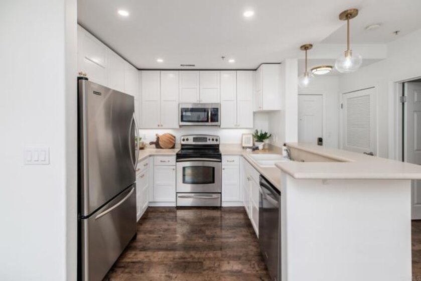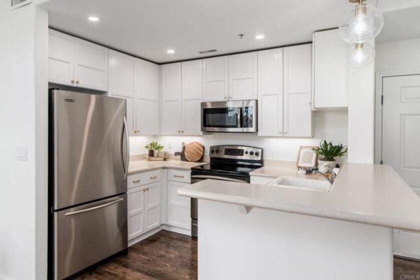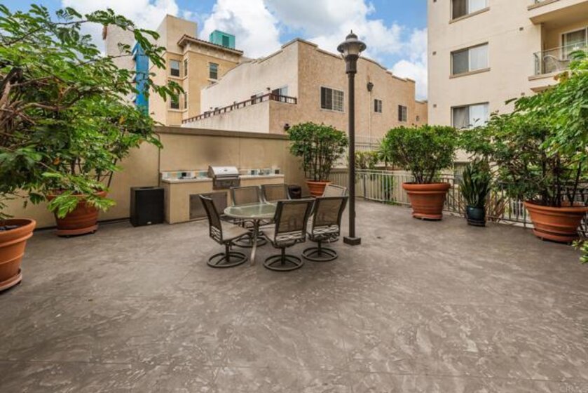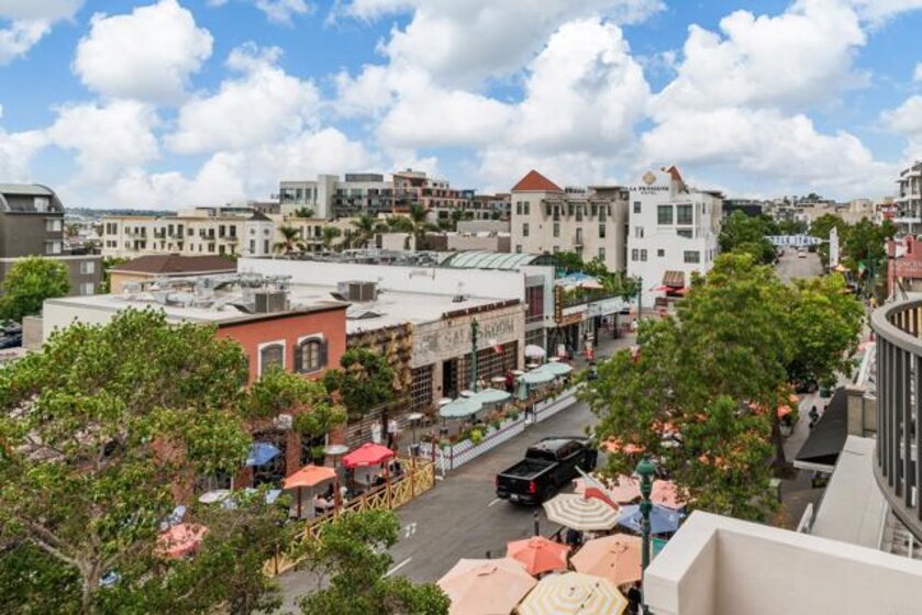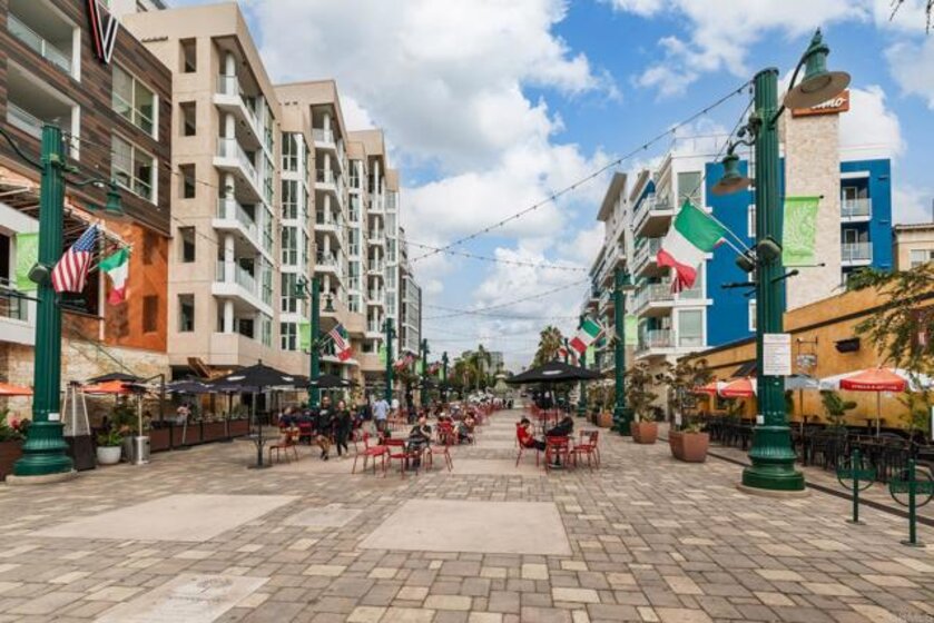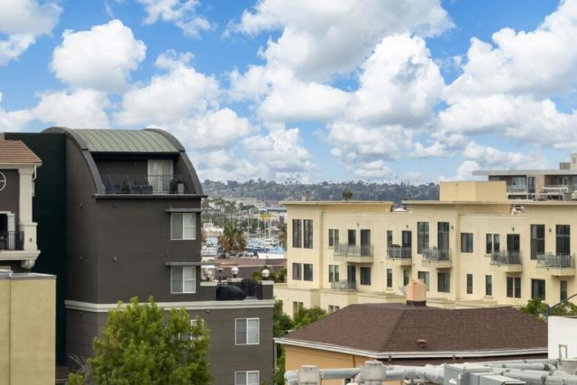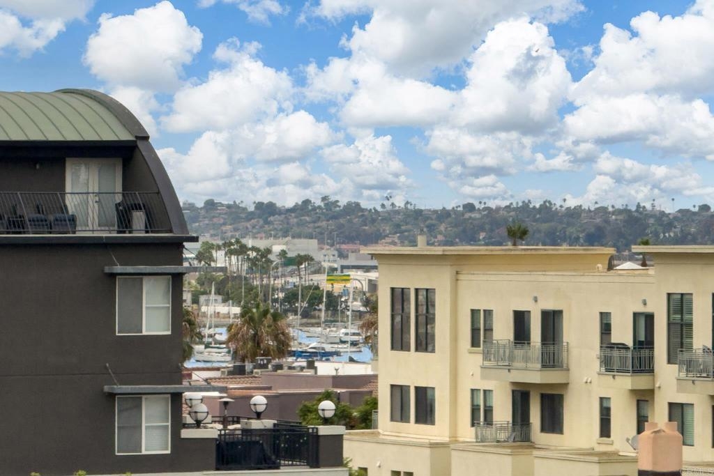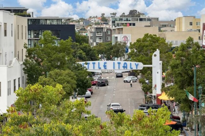 Welcome to this stylish 2 bed/2 bath condo in the heart of Little Italy, offering peekaboo water views and a rare private location within the community. The bright, open floor plan is filled with natural light and enhanced by charming plantation shutters. The kitchen flows seamlessly into the living and dining areas, leading to a private balcony perfect for morning coffee or evening relaxation. The primary suite features a walk-in closet with California Closet upgrades, while the secondary bedroom also offers custom storage. Recent improvements include a new heat pump/AC and condenser, newly lined cast iron pipes, fresh paint, upgraded bathroom vanities, and more (see upgrade list in MLS documents). Community amenities include secure gated entry and BBQ areas. With unbeatable walkability to award-winning restaurants, cafes, the Little Italy Farmers Market, San Diego Bay, and Balboa Park—plus quick access to the airport and freeways—this home blends modern comfort with an enviable urban lifestyle.