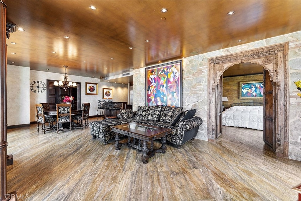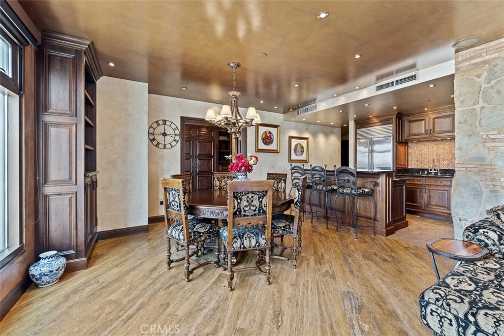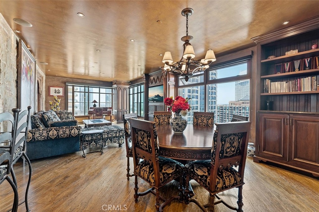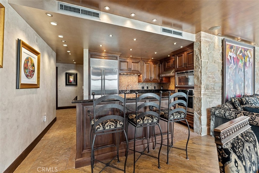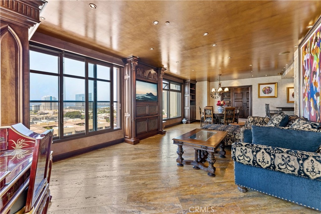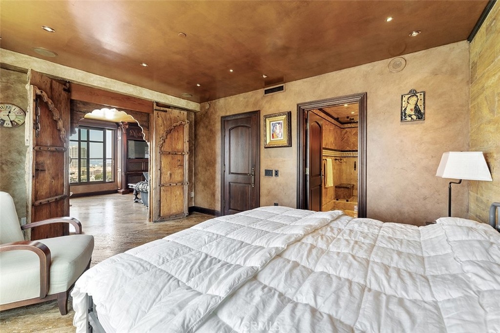 Experience the elegance of old-world craftsmanship in this handcrafted, Italian-inspired, single-level residence. Designed with Accordion-style windows that fully open to showcase sweeping southern and western views of San Diego Bay, the Coronado Bridge, distant ocean horizons, and breathtaking sunsets. Exquisite details abound throughout the home, including Italian marble and granite, solid walnut cabinetry, Venetian plaster walls, and hand-laid gold and silver leaf ceilings. The 200-year-old Moroccan double doors serve as a striking focal point, blending global artistry with European sophistication. The open floor plan evokes the grandeur of a 17th-century European estate, where every element has been meticulously crafted to reflect a time when artisanship was paramount. The ambiance is one of timeless opulence, elevating this home to the pinnacle of luxury high-rise living in San Diego. (Gourmet Kitchen & Entertaining Features) The chef's kitchen includes a Sub-Zero refrigerator/freezer, Viking range hood and gas top, built-in Monogram microwave and oven and a newly installed Bosch dishwasher. Along with a custom 220-bottle refrigerated wine cellar/cabinet is a floor to ceiling pantry with built-in drawers and shelves. (Recent Building Updates) The building has recently experienced thoughtful renovations, including two resident lounges, new outdoor/indoor furniture, an upgraded, heated pool and a reimagined lobby/reception space, (still in finishing phase), paid for by the HOA's dues. Renaissance also carries a relatively high reserve of 5-6 Mil. (Additional Notable Features) - Updated bathrooms featuring new toilets, bidet, and showerheads, Walnut-crafted Murphy bed, Two secured parking spaces, Two private storage cages in the garage (one oversized), One additional airconditioned storage room located on the *1 level. This one-of-a-kind masterpiece is a rare opportunity to own a residence where historic inspiration meets modern luxury.