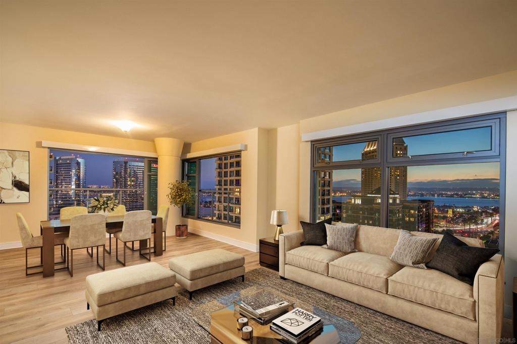 This southwest corner home at Renaissance delivers stunning views of San Diego Bay, Point Loma, and the ocean from the moment you walk in. The floor plan includes two separate bedroom suites, each with its own full bath, plus a powder room for guests. Designed for everyday functionality, the open living space connects directly to sliding lanai windows that bring the outdoors in, perfect for enjoying San Diego's amazing weather. Located in the ultra-convenient Marina District, you’re steps from grocery stores, dining, and both Gaslamp and Little Italy. Renaissance offers premium amenities like a pool, spa, fitness center, outdoor fireplace, and 24-hour lobby attendants. Renaissance is ideally located in Downtown San Diego’s Marina District—arguably one of the most convenient spots in the city. Ralph’s is right across the street, and a Sprouts is opening just half a block away, making grocery runs quick and easy. A wide variety of restaurants are within walking distance, and you’re only a short stroll from both the Gaslamp Quarter and Little Italy. Whether you’re grabbing a quick bite or heading out for the evening, you’re never far from where you want to be. The community itself offers a long list of amenities, including a pool, spa, fitness center, two commercial-grade BBQs, an outdoor fireplace, and 24-hour lobby attendants for added convenience and peace of mind. Positioned on the premier southwest corner of Renaissance, this residence immediately impresses with panoramic views of San Diego Bay, Point Loma, the Pacific Ocean, and the downtown skyline. From sunrise to sunset, the scenery transforms into a living piece of art. The smart layout features two well-separated bedroom suites, each with its own full bathroom—ideal for privacy and flexibility. A powder room near the entry adds convenience for guests. The open-concept living and dining areas flow naturally into the kitchen and out toward lanai-style windows that slide open, creating a seamless connection between indoor and outdoor space. It’s a layout that supports both everyday living and entertaining, all while making the most of San Diego’s mild climate and spectacular views.