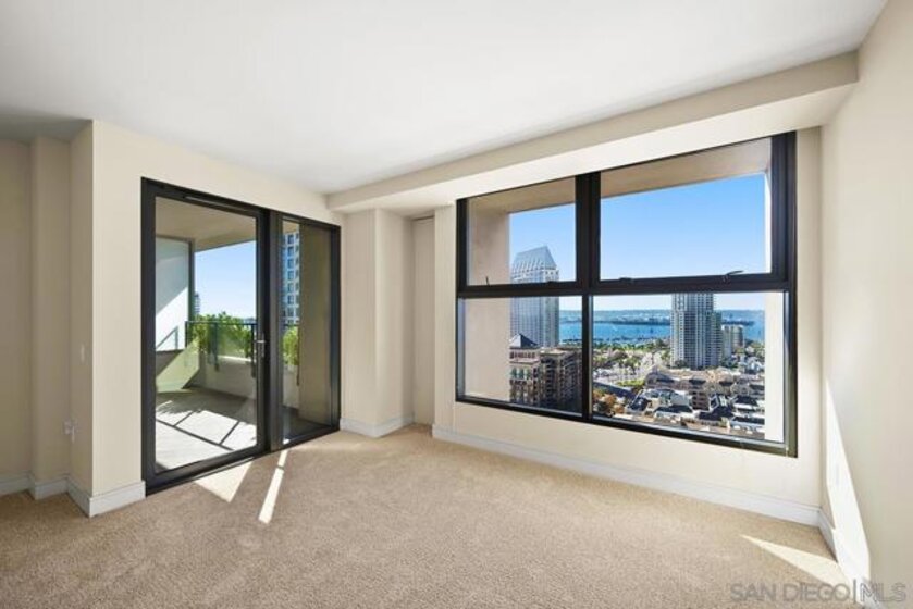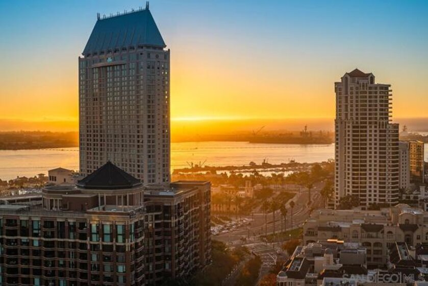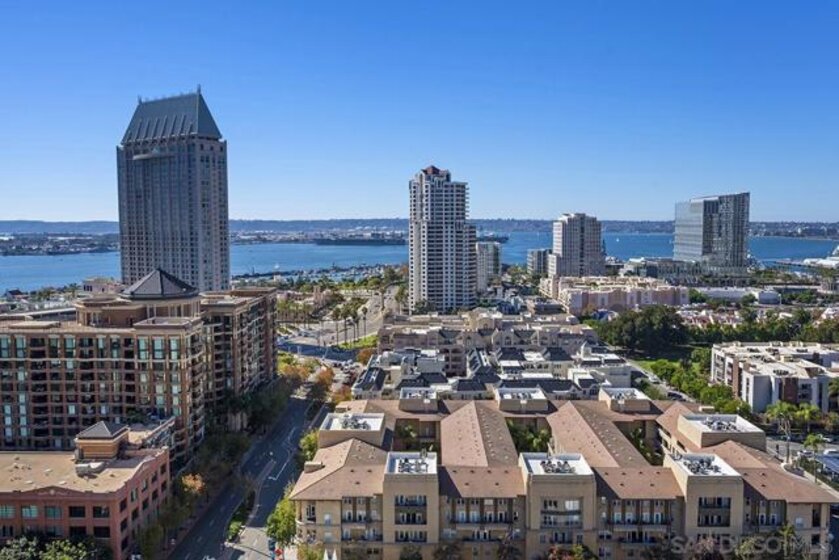 Don’t miss this one-of-a-kind, northwest corner floor plan in the south tower of Renaissance! Views are yours in every room; from sparkling city lights to the blue waters of the bay spanning beyond Point Loma! Beautifully upgraded, featuring a dual primary layout, fireplace in the living area, wood floors, and a generous amount of storage provided by the built-ins in nearly every room. The kitchen boasts granite counters, a large center island, high-end appliances by Sub-Zero and GE Monogram, plus an office space and breakfast area. The large primary suite offers its own private patio, a huge walk-in closet with a customizable system by Elfa and a fold down ironing board to boot. The en-suite bath features beautiful marble surrounds, a jetted spa tub, dual vanity, and separate walk-in shower. Guests will love the second bedroom which feels like its own private wing with en-suite bath and a spacious walk-in closet. This residence also includes a storage unit (level 1) and two separate parking spaces (level 2). The “refreshed” Renaissance common areas are sure to impress highlighting a new state of the art main lobby near completion! With staffed lobbies, 24/7 security, pool and spa, barbecues, seating areas, an outdoor fireplace and firepit, a well-equipped fitness center, and meeting room, the development has it all. Located in the highly desirable Marina District, street level at the Renaissance features, a myriad of retailers just an elevator ride away, including Wells Fargo, tanning salon, dry cleaners, Postal Annex, Vitality Tap for all your fresh juices & vitamins, and a soon to be coffee/sandwich shop. Enjoy easy walking access to train and trolley lines, excellent restaurants, shopping, and a Ralphs Signature Market across the street.