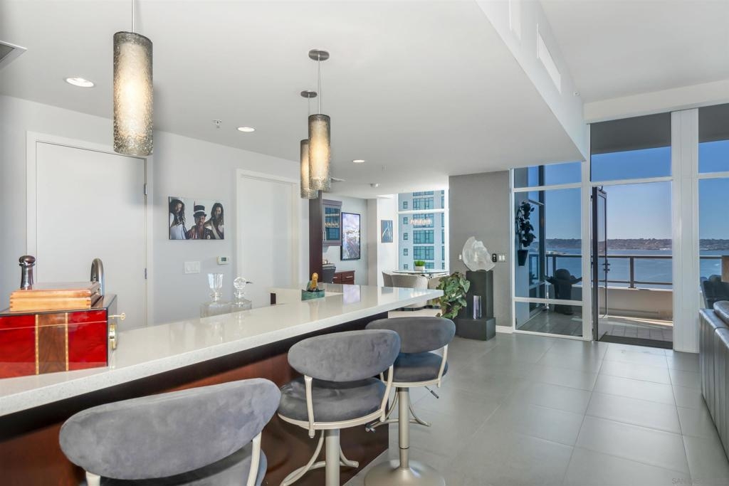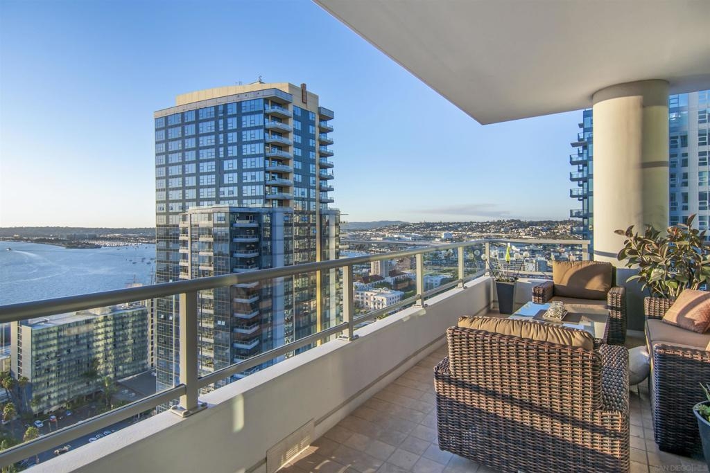Downtown San Diego is back & more vibrant than ever! Steps from bustling Little Italy & the Gaslamp Quarter, this Sapphire Tower penthouse has a loft-inspire design, spacious open plan & 10½ ft. ceilings. Floor-to-ceiling wrap around windows offer 180-degree bay, marina & ocean views. Exclusive private foyer with direct elevator access. Contemporary architectural finishes in remodeled gourmet kitchen & bathrooms. Master retreat enveloped in windows w/ covered balcony. Amenities include optional 3rd bedroom, dining area, wet bar w/ 100-bottle wine fridge & half bath. 24-hr security & concierge, gated underground parking, private storage room. Remodeled lobby, pool, spa, cabanas, bbq area, gym and board/media room. Pet friendly! Downtown San Diego is back and more vibrant than ever! Just steps from bustling Little Italy and the Gaslamp Quarter, this Sapphire Tower penthouse has a loft-inspire design with state-of-the-art amenities and world class marina, bay, and ocean views! Intended for discerning buyers, the upscale residence offers 10½ ft. ceilings and floor-to-ceiling windows. A private foyer with direct access to the elevator is reserved for penthouse units. Contemporary architectural details, gorgeous, stone-like flooring and designer wall coverings enhance the single-level floor plan. The impressive great room has soaring windows offering 180-degree views of the cruise ships, sail boats, and hills beyond. The fully remodeled gourmet kitchen has stainless steel Wolf appliances and quartz countertops. The luxurious master retreat is enveloped in windows with a covered balcony overlooking the city skyline. The remodeled master bath has quartz countertops, his/hers vanities, and oversized shower. Other highlights include New Designer carpet in bedrooms & closet, optional 3rd bedroom, dining room, wet bar with 100-bottle wine fridge, and half bath. The unit comes with underground parking spaces, storage unit, and bike storage. Remodeled amenities include 24-hour security, lobby and concierge service, bbq and outdoor dining areas, state-of-the-art fitness room, resort-style pool, spa/hot tub, cabanas, sun deck, and exclusive board room/media center. Pet friendly! Complex Features: ,,,,, Equipment: Dryer,Fire Sprinklers,Garage Door Opener, Washer, Water Filtration Topography: LL Frontage: Bay